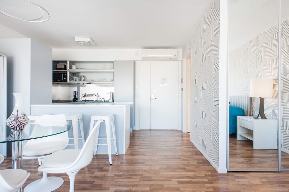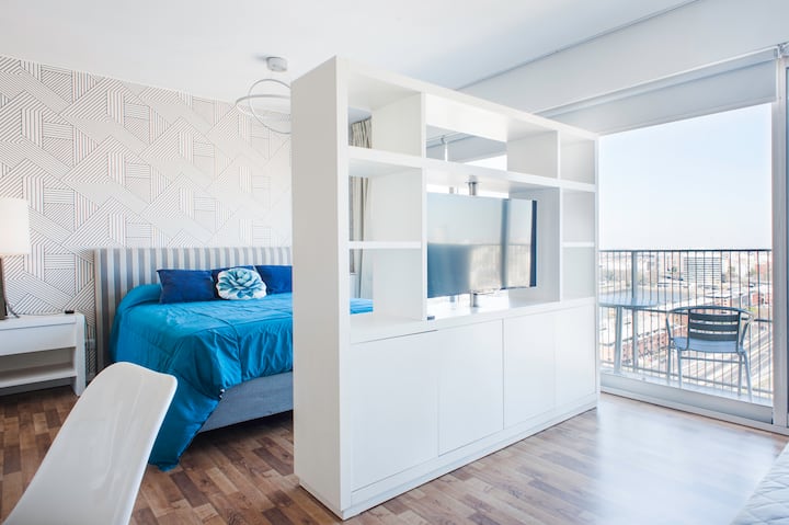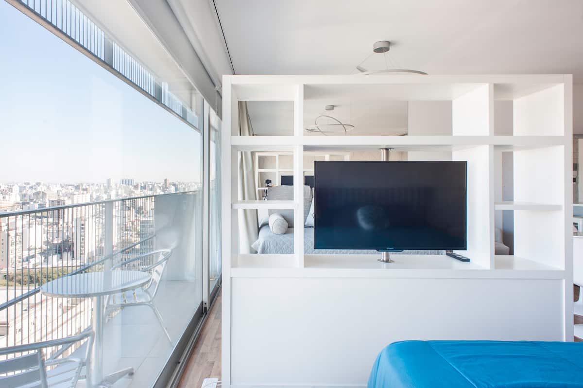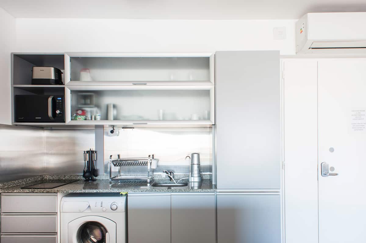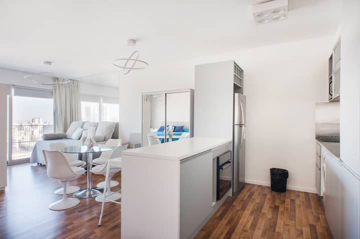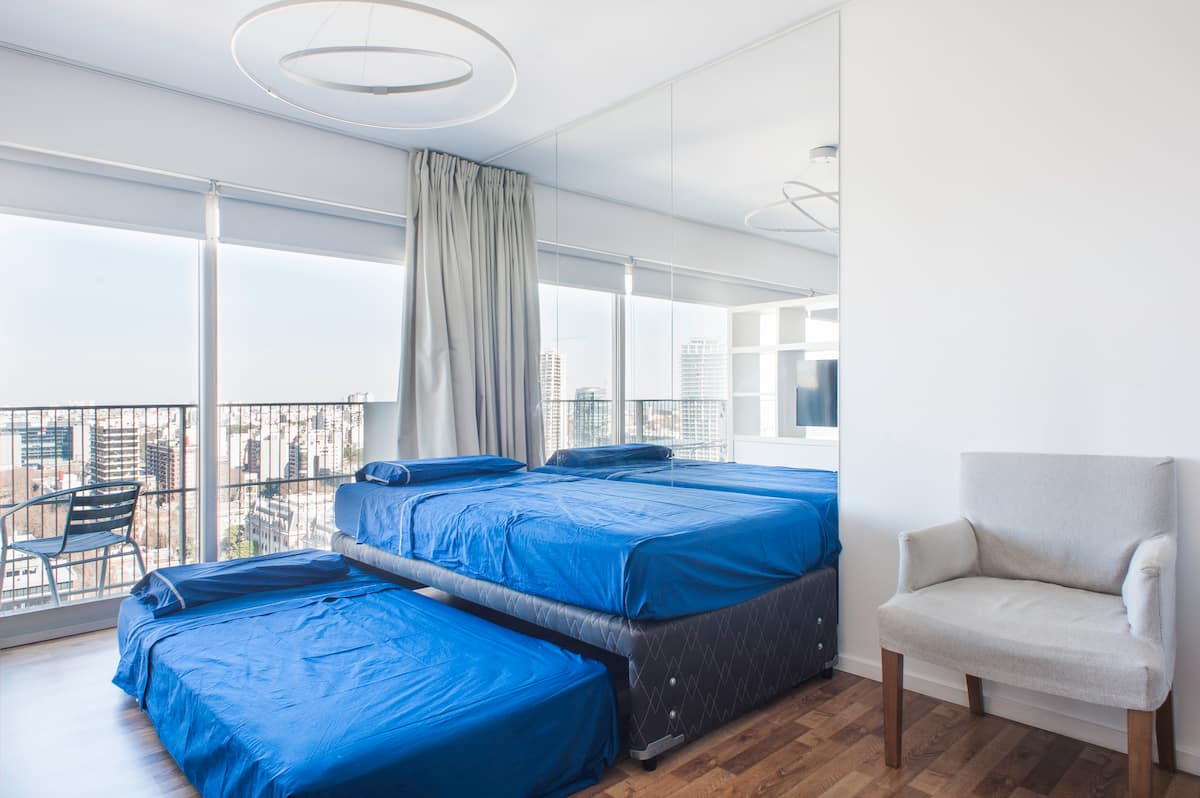 Квартира-студия 47 m² в здании Quartier Madero Urban в San Telmo, 19-й этаж, вид на Puerto Madero и город. В студии установлены кровать queen size, диван с 2 односпальными местами, LED-телевизор 43 дюйма, оборудованная кухня с духовкой и электрической плитой, кофеварка, холодильник с морозильной камерой, микроволновая печь и тостер, стиральная машина. В ванной комнате фильтрованная вода. Интернет 500 MB по оптоволоконной сети, парковка организована через систему valet parking; в здании круглосут