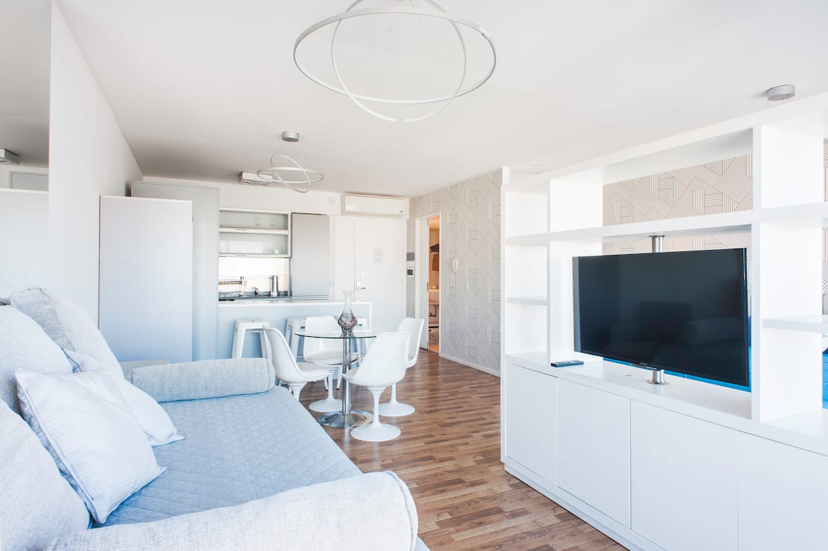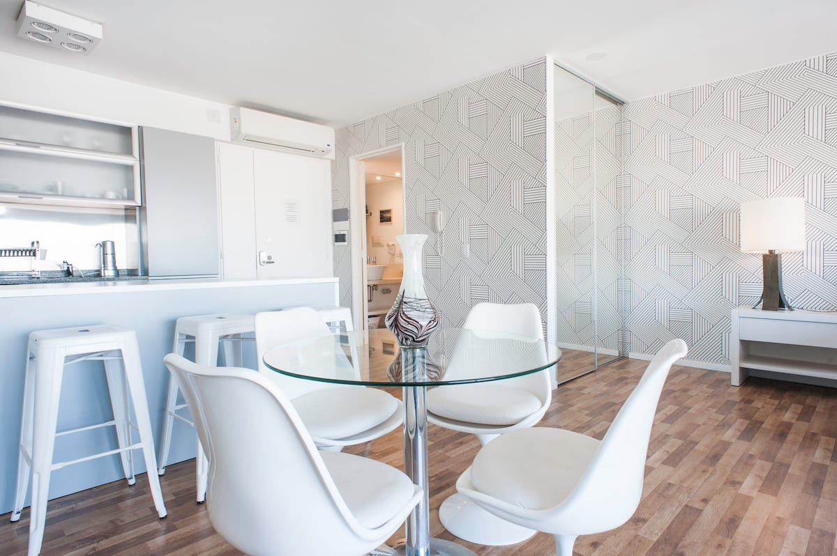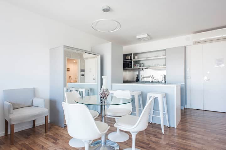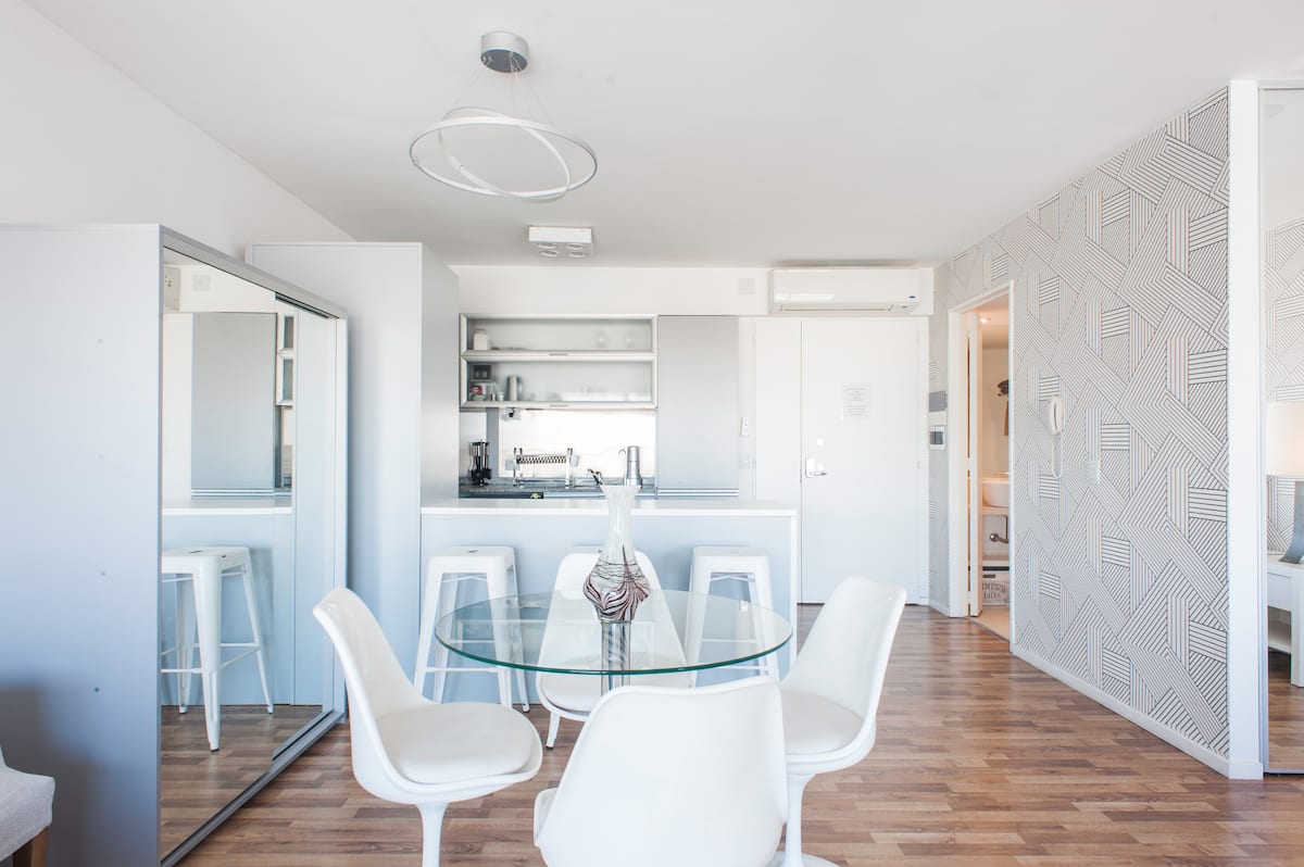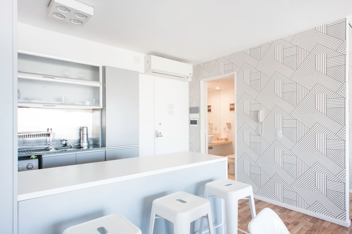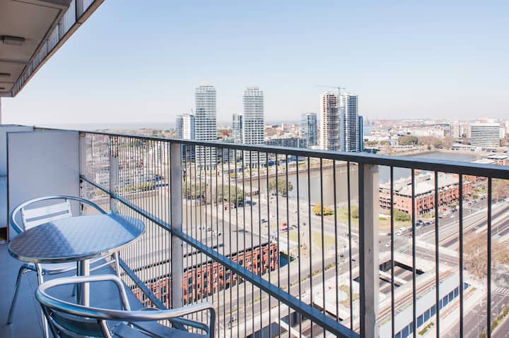 Квартира-студия 47 m² в здании Quartier Madero Urban в San Telmo, 19-й этаж, вид на Puerto Madero и город. В студии установлены кровать queen size, диван с 2 односпальными местами, LED-телевизор 43 дюйма, оборудованная кухня с духовкой и электрической плитой, кофеварка, холодильник с морозильной камерой, микроволновая печь и тостер, стиральная машина. В ванной комнате фильтрованная вода. Интернет 500 MB по оптоволоконной сети, парковка организована через систему valet parking; в здании круглосут