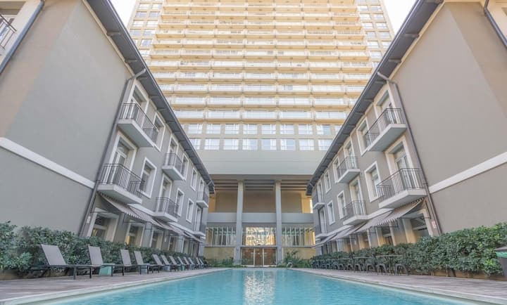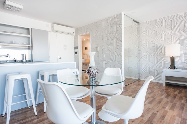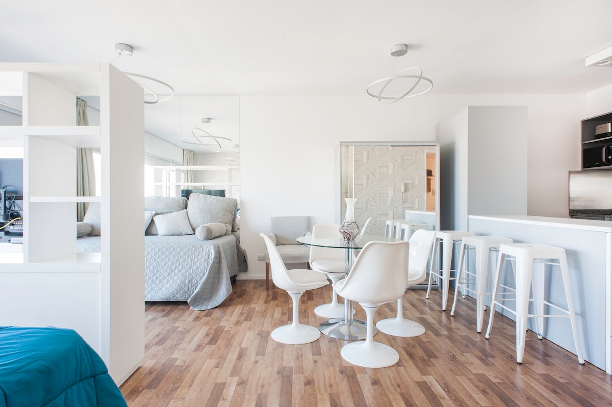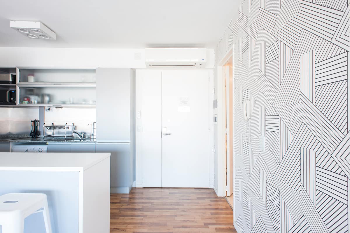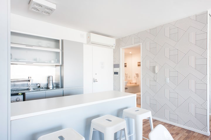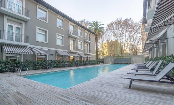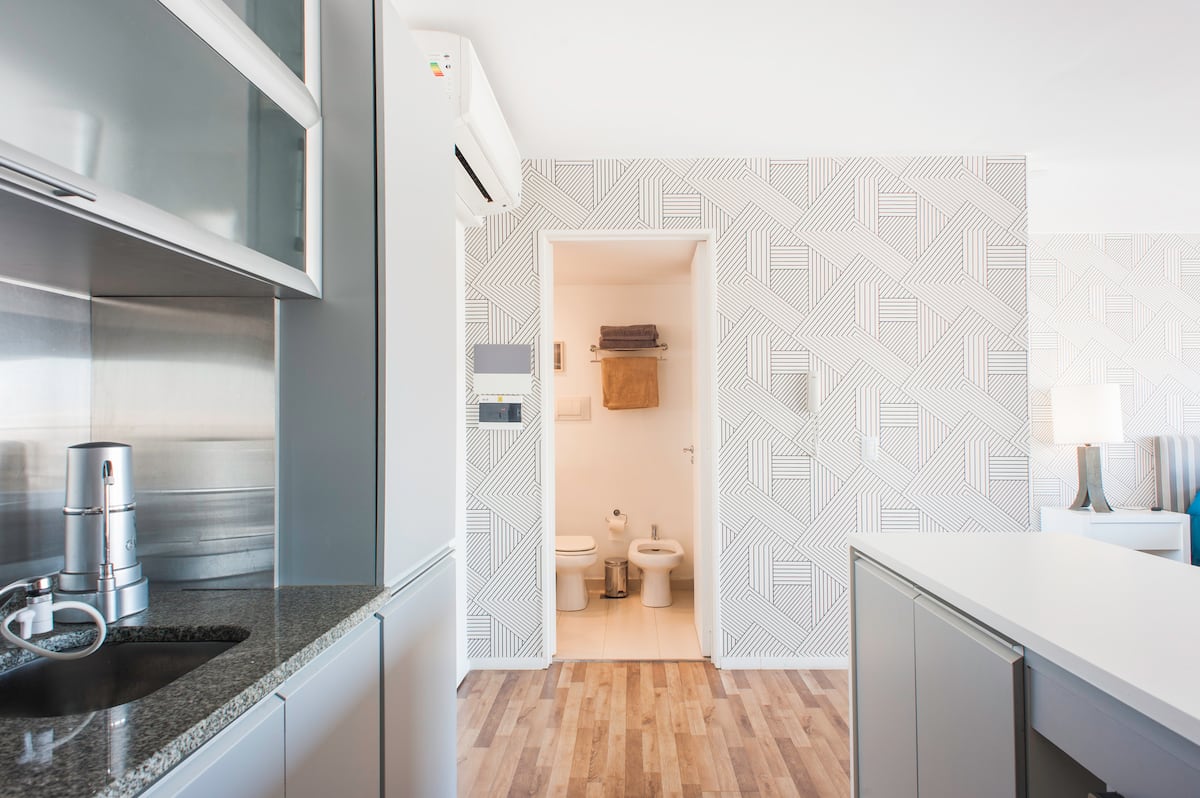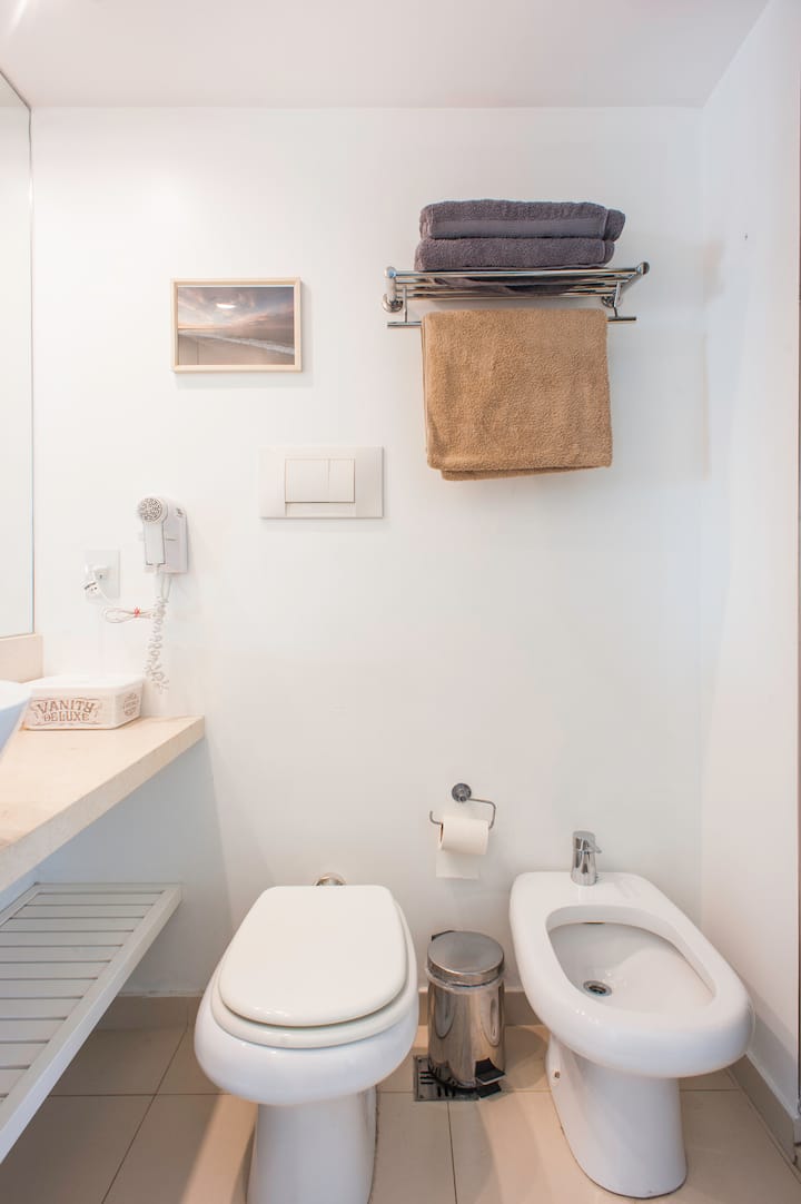 Квартира-студия 47 m² в здании Quartier Madero Urban в San Telmo, 19-й этаж, вид на Puerto Madero и город. В студии установлены кровать queen size, диван с 2 односпальными местами, LED-телевизор 43 дюйма, оборудованная кухня с духовкой и электрической плитой, кофеварка, холодильник с морозильной камерой, микроволновая печь и тостер, стиральная машина. В ванной комнате фильтрованная вода. Интернет 500 MB по оптоволоконной сети, парковка организована через систему valet parking; в здании круглосут