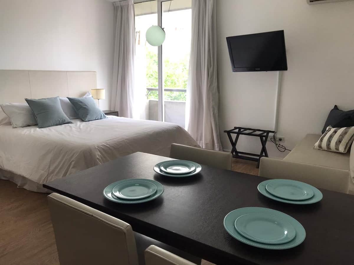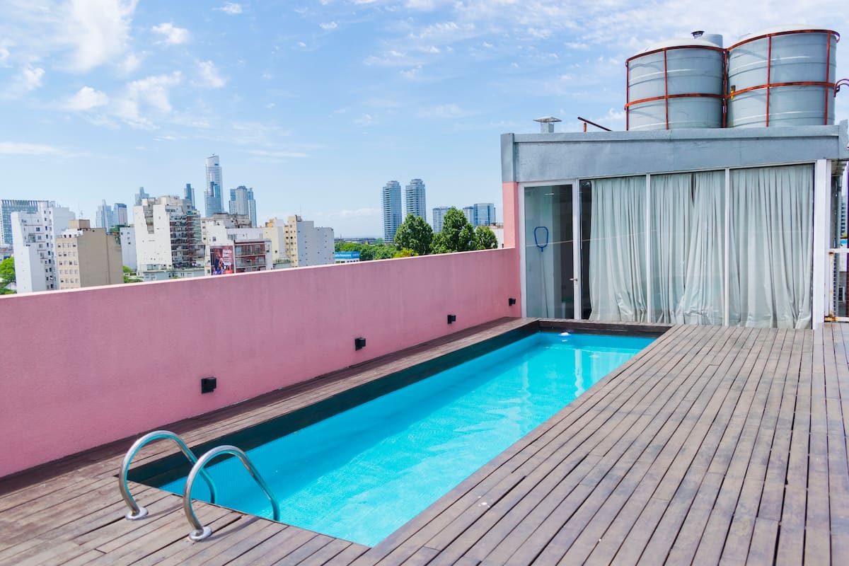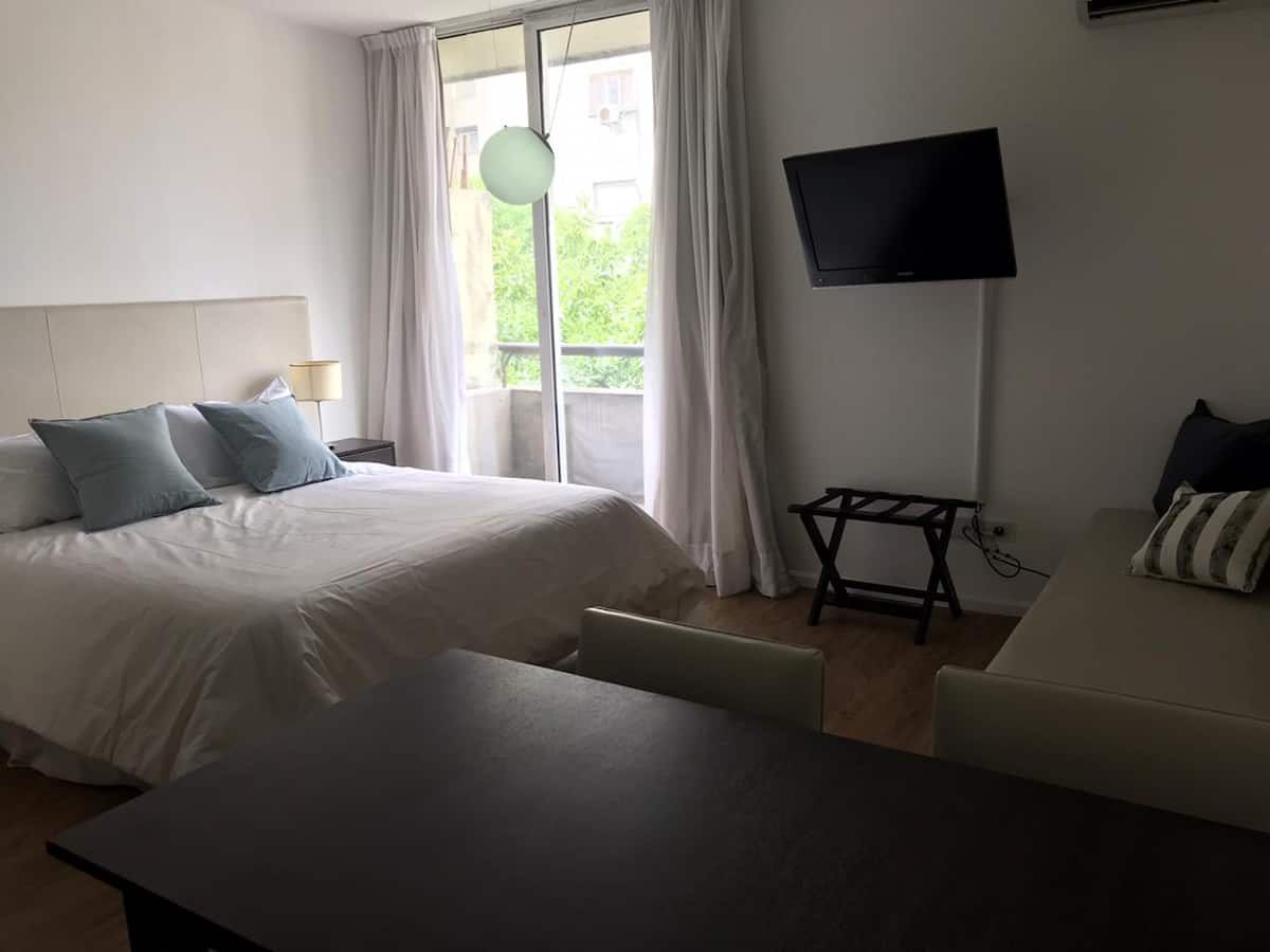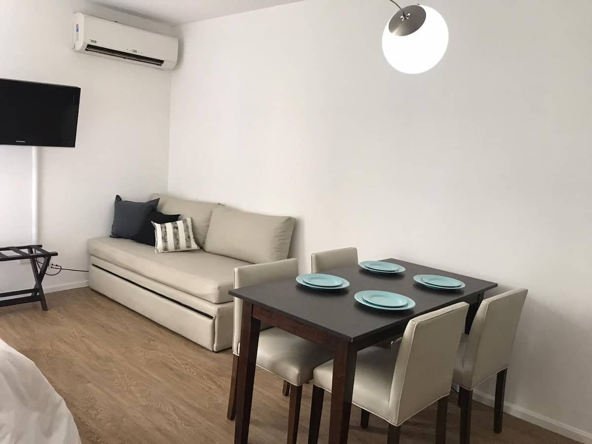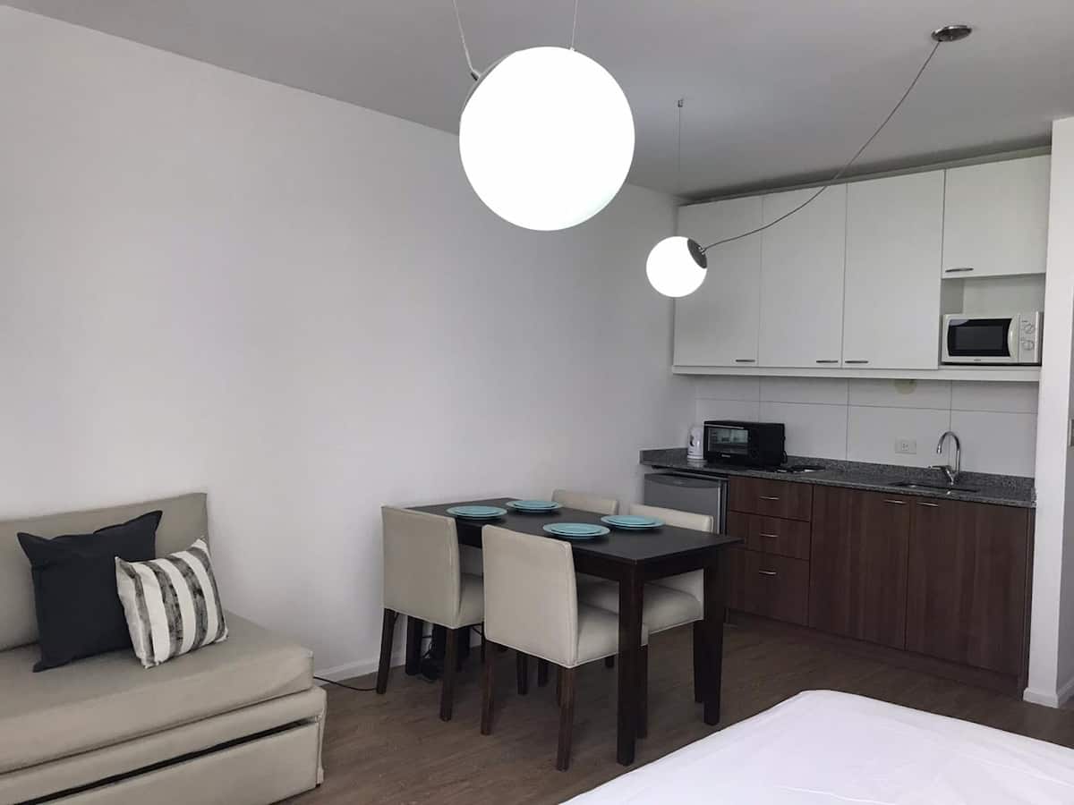 Квартира-студия в San Telmo. В пешей доступности от Feria del Puerto y Lezama Park, в одном квартале от парка. На крыше есть общий бассейн и зона прачечной.