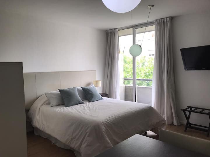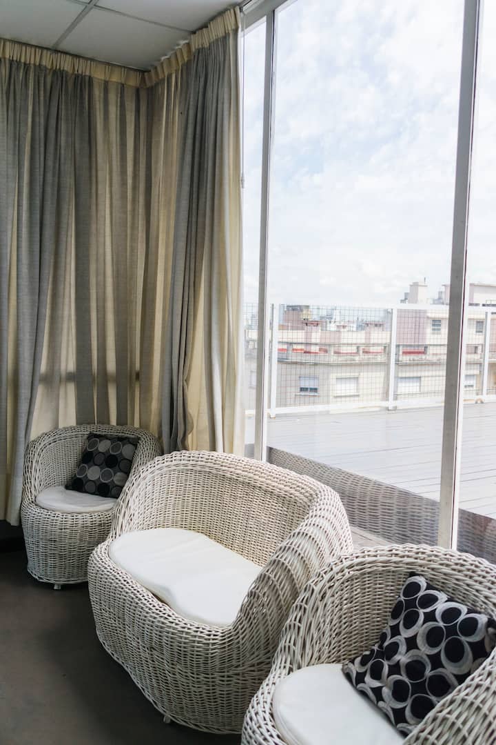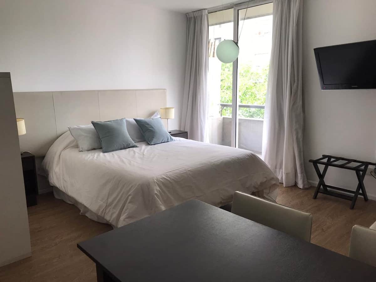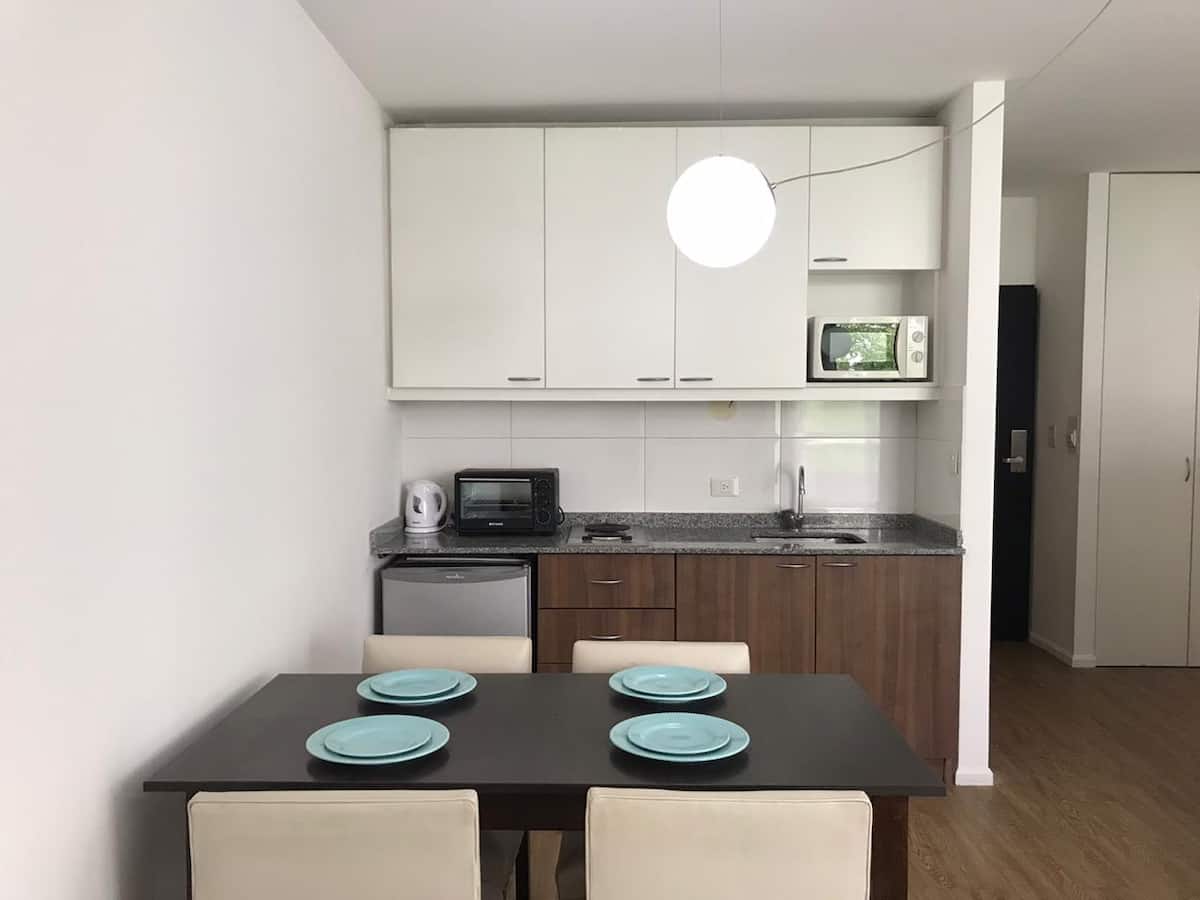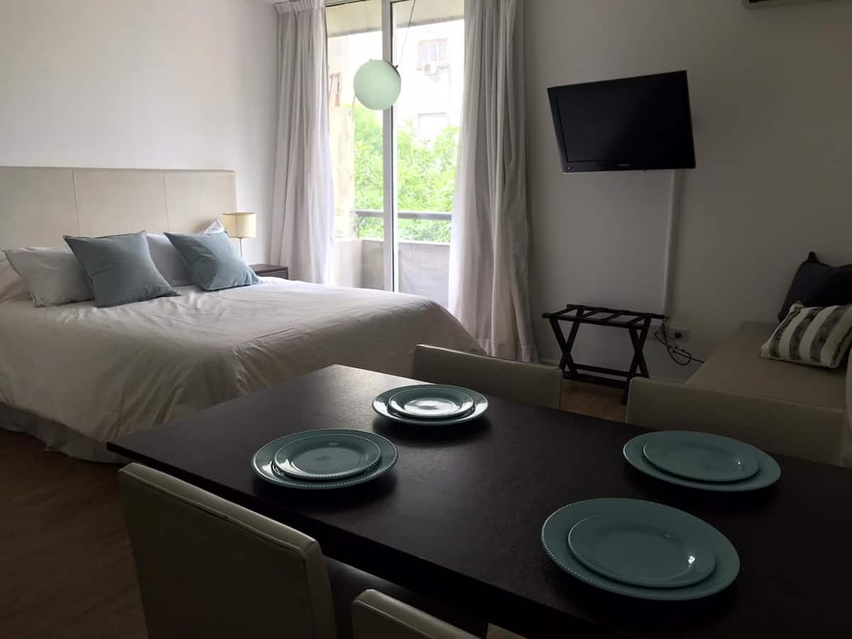 Квартира-студия в San Telmo. В пешей доступности от Feria del Puerto y Lezama Park, в одном квартале от парка. На крыше есть общий бассейн и зона прачечной.
