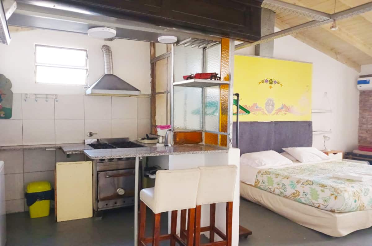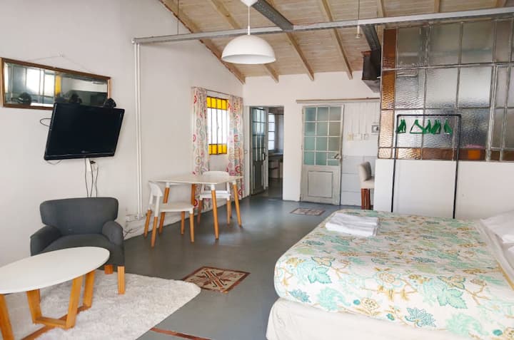 Квартира-студия в доме в колониальном стиле 1902 года, после ремонта. Второй этаж, вход через лестницу. В комнате двуспальная кровать, телевизор и оборудованная мини-кухня, в ванной есть джакузи и дневной свет. Частная терраса 25 m² с столом, шезлонгами, зоной гриля и душем.