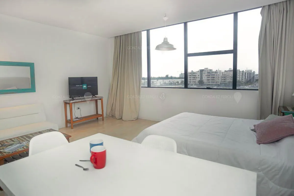 Сдаётся квартира-студия в Bahia Grande, Nordelta, Tigre, только на полный месяц. Вмещает до 4 человек. Полностью оборудована; есть отдельная ванная и (закреплённое) парковочное место под крышей. В объявлении указано, что коммунальные платежи, налоги и прочие услуги, а также характеристики и площади приводятся ориентировочно.