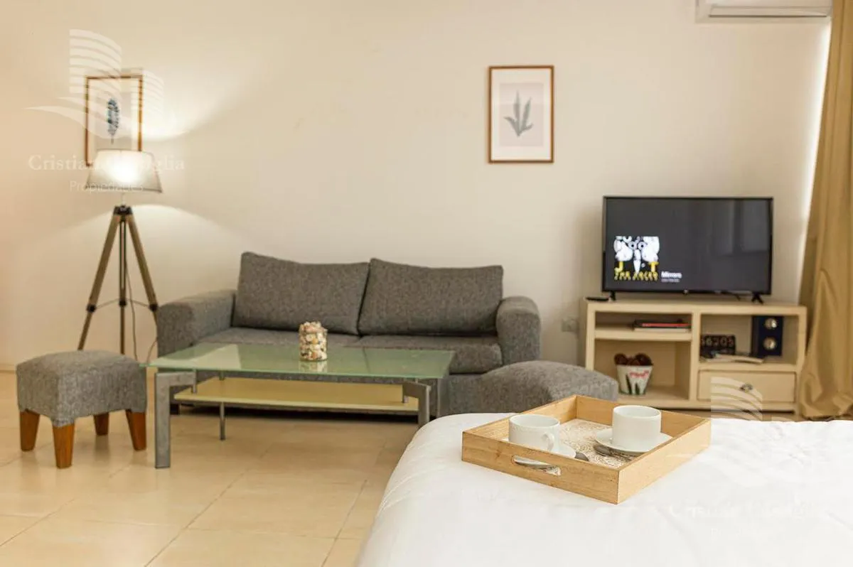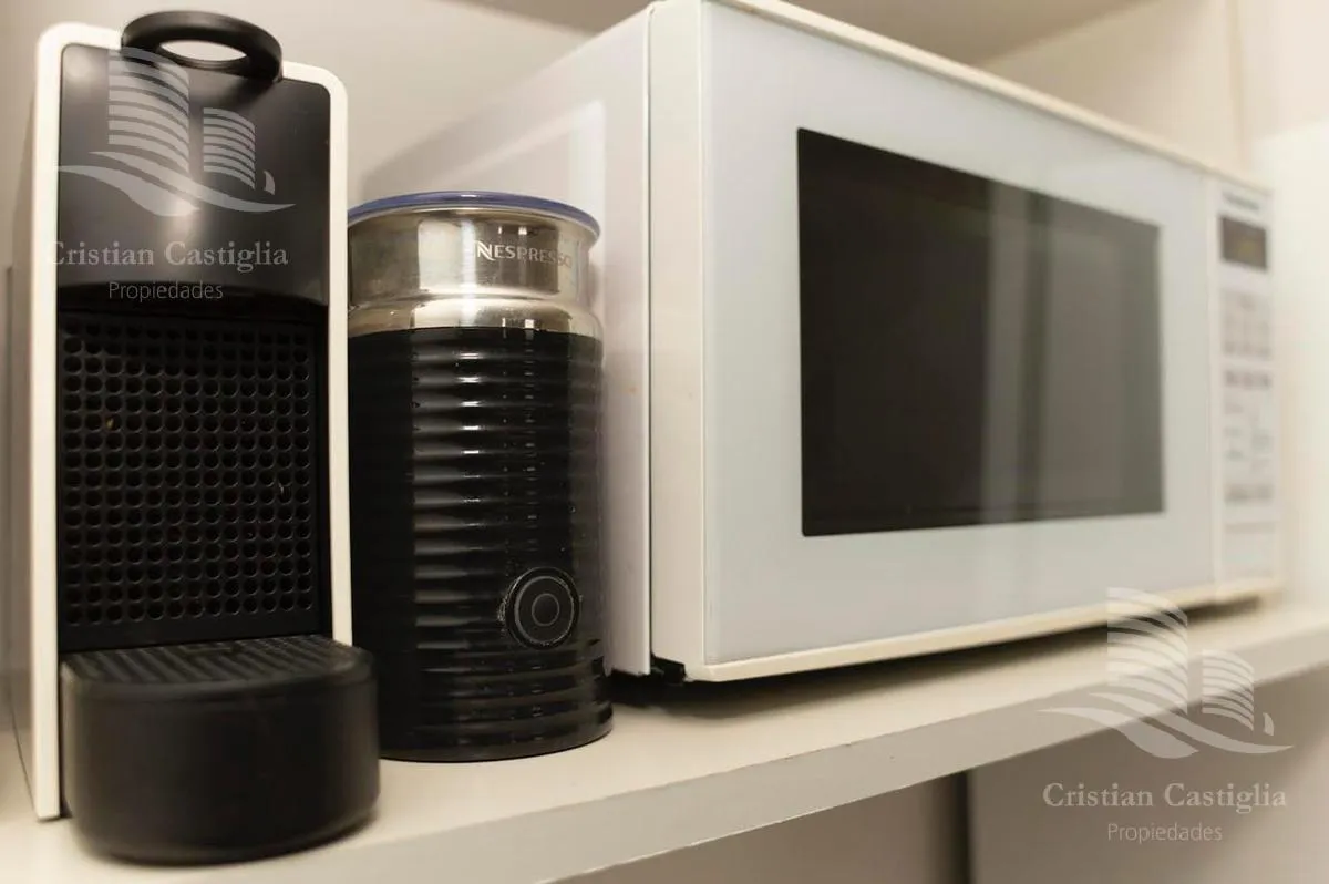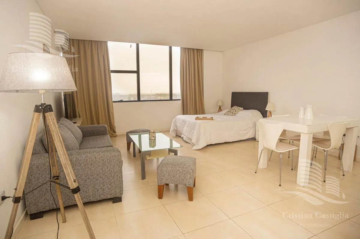 Квартира-студия площадью 41 m² в комплексе Estudios de la Bahía в Bahía Grande, Nordelta, новая (никто не жил), с мебелью. В студии кухня с варочной поверхностью и мебелью под столешницей, обеденный стол и посуда на 4 персоны, холодильник с морозильной камерой и Nespresso. Есть полностью оборудованная ванная, система хранения в шкафу, центральный кондиционер, интернет, smart TV 48 дюймов и аудиосистема с Bluetooth. В аренду включено (закреплённое) парковочное место в крытом паркинге; охрана 24 ч