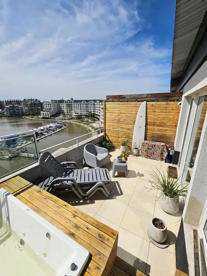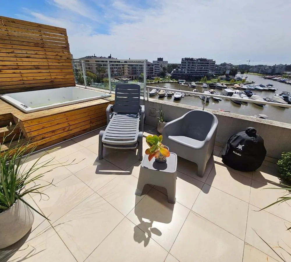Квартира-лофт площадью 75 m² в Wyndham Nordelta (Tigre), окна в сторону района у дельты. Полностью оборудована: двуспальная кровать, диван, телевизор, электрическая кухня. В ванной гидромассажная ванна. Есть открытая терраса с джакузи и шкафом. Предусмотрены услуги здания: портье, видеозвонок и лифты нового поколения. Минимальный срок проживания 3 дня; стоимость 150 USD в день.