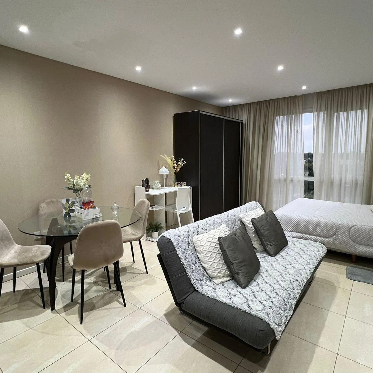 Квартира-студия в Bahía Grande, Nordelta, с мебелью. Планировка включает основное помещение с зоной под гостиную и спальню, а также интегрированную кухню с оборудованием и отдельную ванную комнату. Предусмотрено (закреплённое) парковочное место в подземном уровне. В здании есть крытый бассейн с подогревом, открытый бассейн и тренажёрный зал.