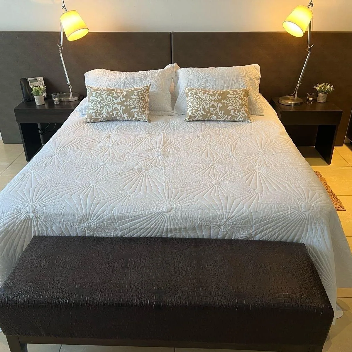 Квартира-студия площадью не указана в кондоминиуме Bahia Grande, рядом с Hotel Wyndham, Tigre. 2-й этаж, окна на улицу. Кухня интегрирована с мебелью верхнего и нижнего яруса, есть полностью оборудованная ванная комната. Установлены стеклопакеты DVH. В квартире продаётся с мебелью и оборудованием; предусмотрено центральное кондиционирование холод/тепло. В здании есть тренажёрный зал, сауна и спа, а также бассейны: крытый с членством и открытый. При годовой аренде: залог-страховка аренды или гара