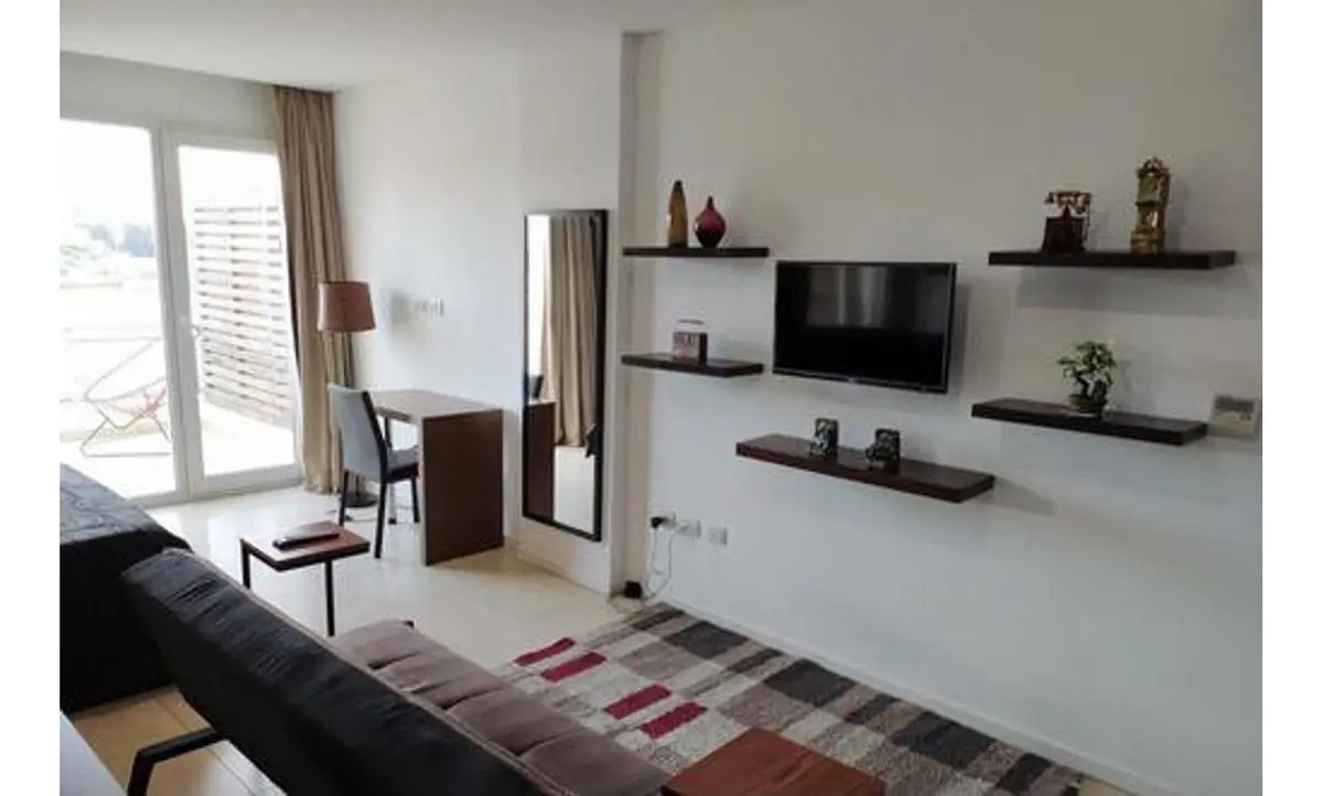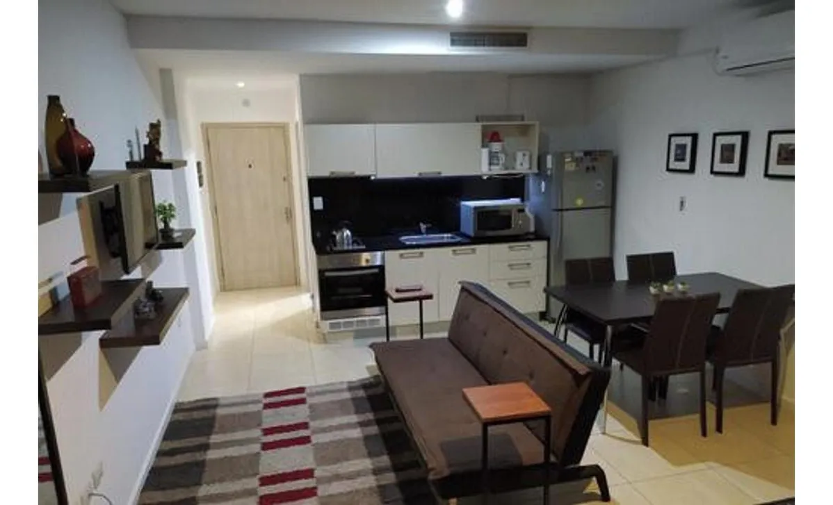 Квартира-студия в стиле loft в Nordelta, Tigre, в комплексе Wyndham Nordelta. Площадь и этаж не указаны. В помещении есть зона гостиная-столовая с двуспальной кроватью, диваном-кроватью, рабочим столом и столом на 4 места. Кухня полностью оборудована, в том числе холодильником, духовкой, кофеваркой и электрическим чайником. Есть полный санузел и балкон с видом на залив. В комплексе предусмотрены бассейн, тренажёрный зал, спа и прачечная, действует охрана 24 часа. В аренду включено (закреплённое)