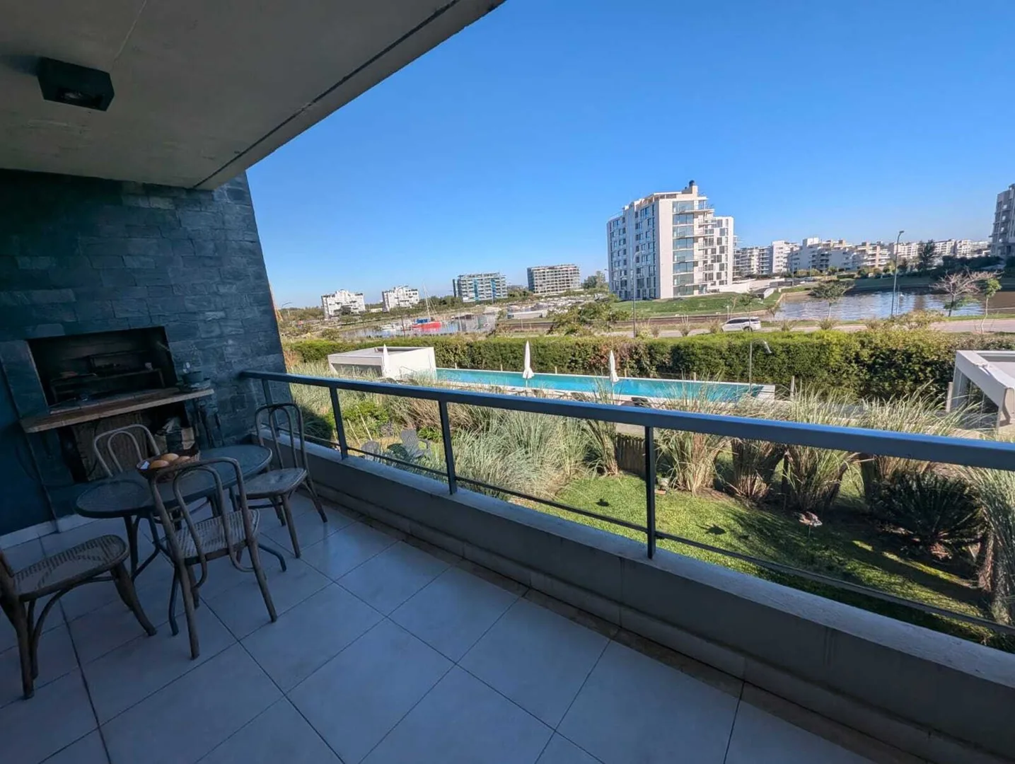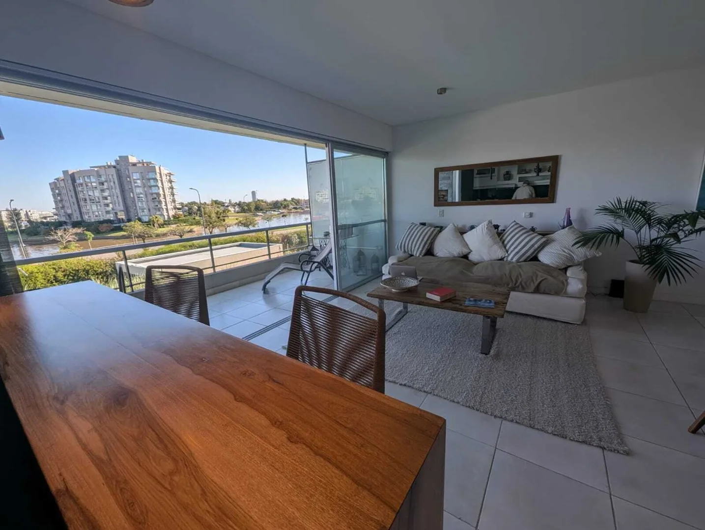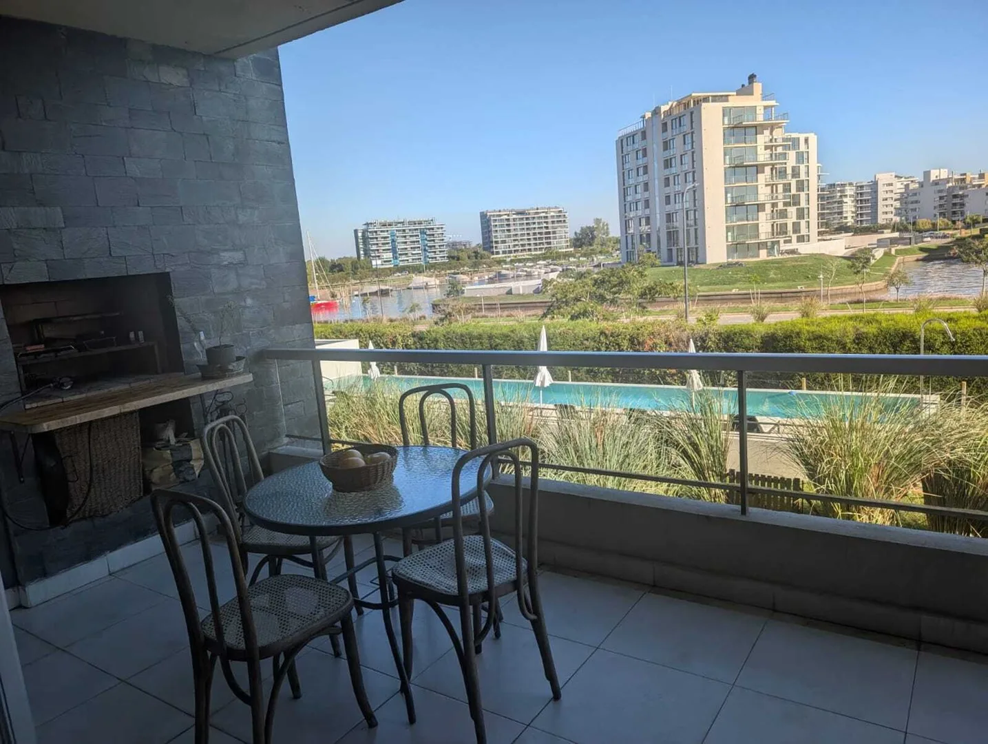 Временная квартира на 3 комнаты в Nordelta Puerto Escondido (Tigre) с видом на реку. 2 спальни, гостиная-столовая и интегрированная кухня; меблирована для размещения до 4 человек. В спальне с двуспальной кроватью есть гардероб и собственная ванная, во второй спальне две односпальные кровати, шкаф и отдельная полноценная ванная. Окна на реку, есть балкон-терраса с зоной гриля. Имеется (закреплённое) крытое парковочное место, в комплексе есть бассейн. В стоимость 1900 USD включены коммунальные пла