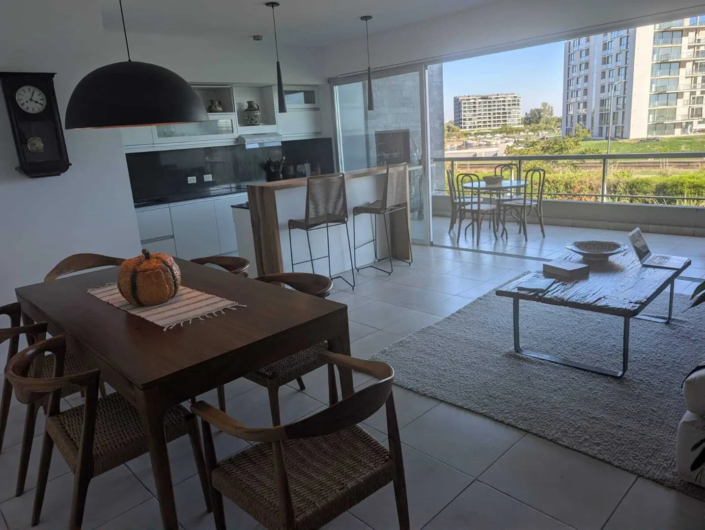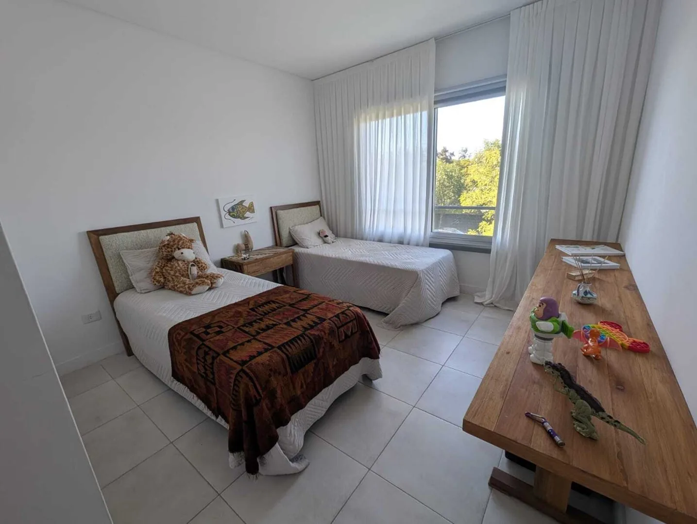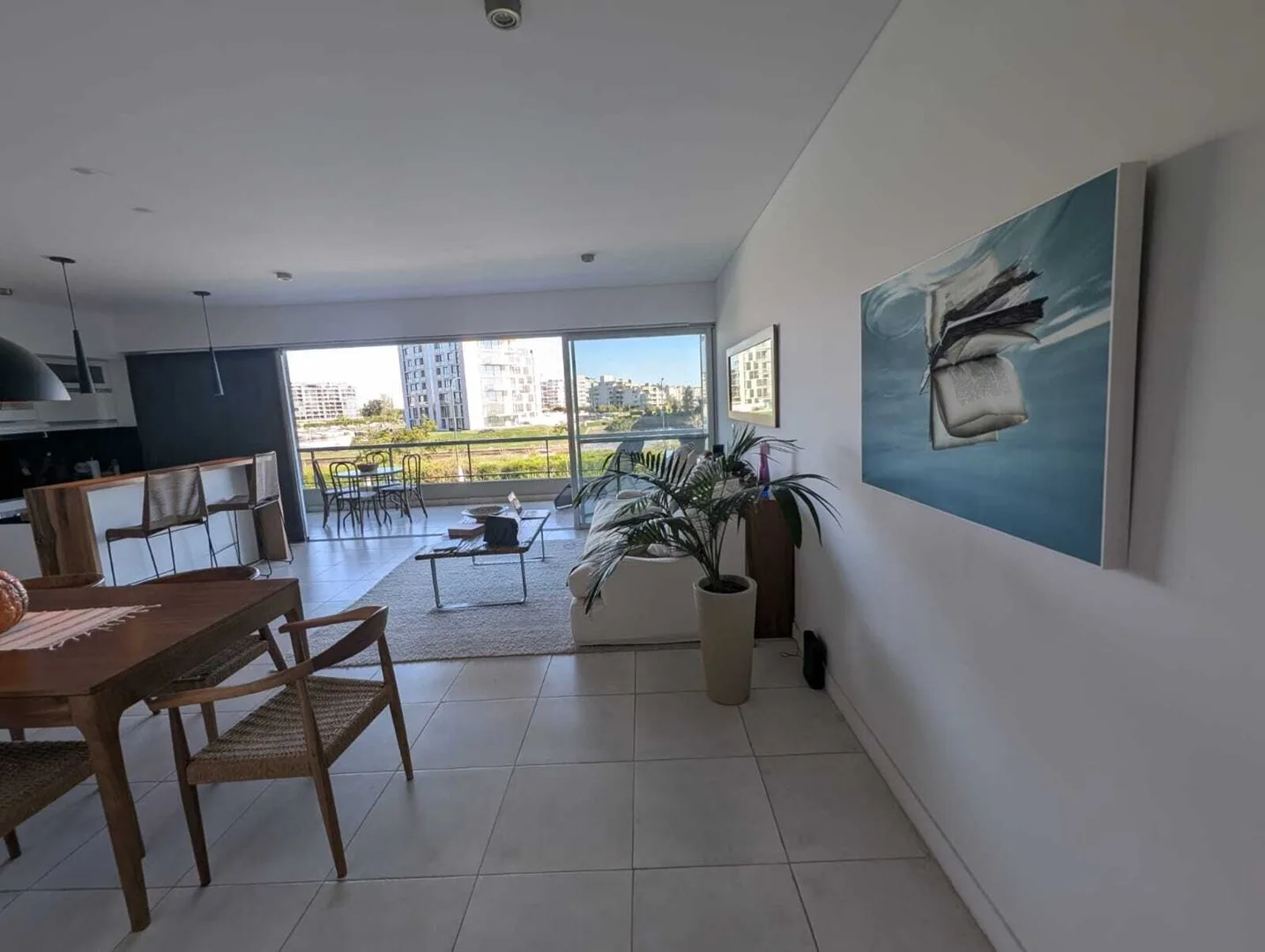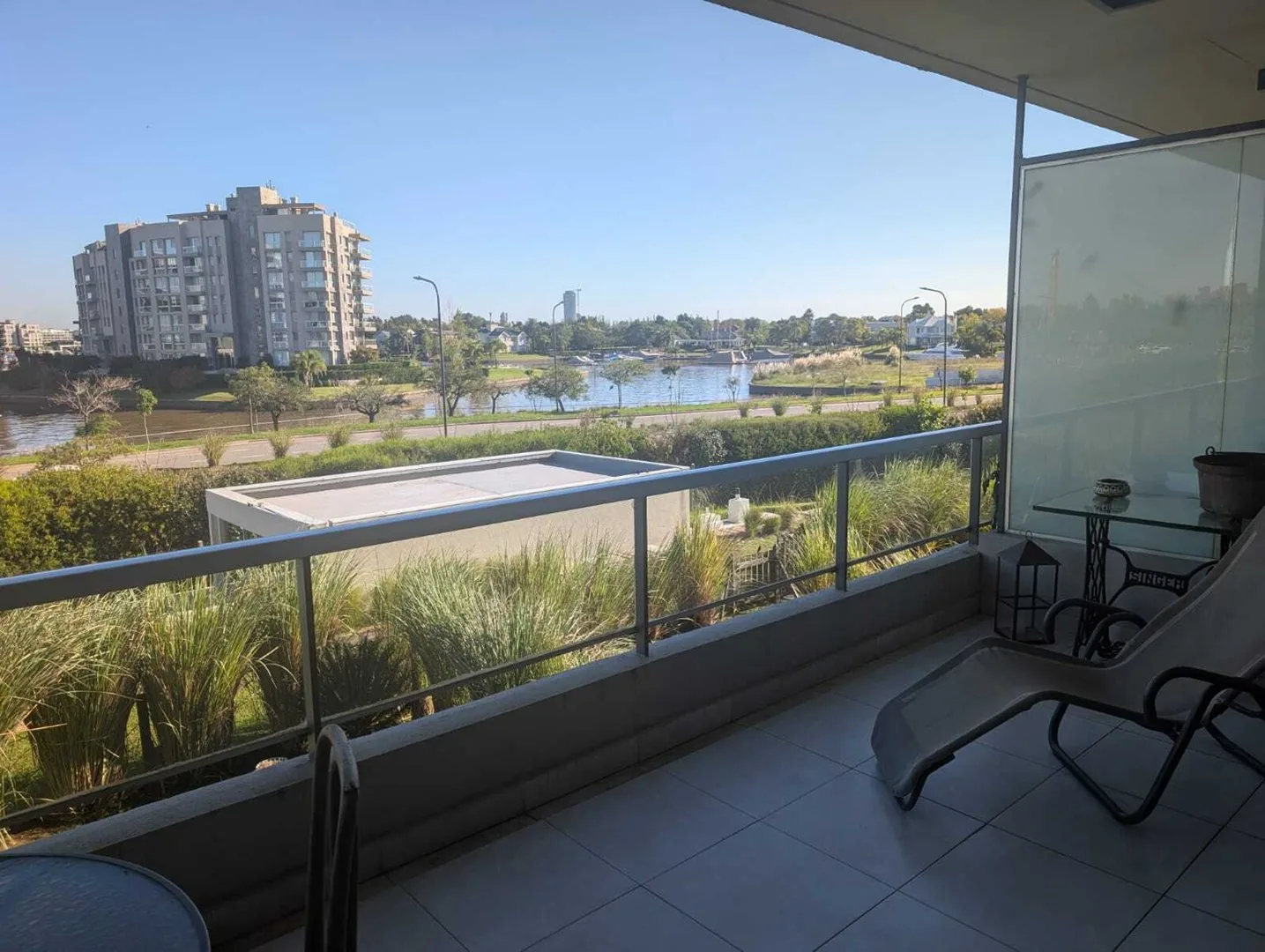 Временная квартира на 3 комнаты в Nordelta Puerto Escondido (Tigre) с видом на реку. 2 спальни, гостиная-столовая и интегрированная кухня; меблирована для размещения до 4 человек. В спальне с двуспальной кроватью есть гардероб и собственная ванная, во второй спальне две односпальные кровати, шкаф и отдельная полноценная ванная. Окна на реку, есть балкон-терраса с зоной гриля. Имеется (закреплённое) крытое парковочное место, в комплексе есть бассейн. В стоимость 1900 USD включены коммунальные пла