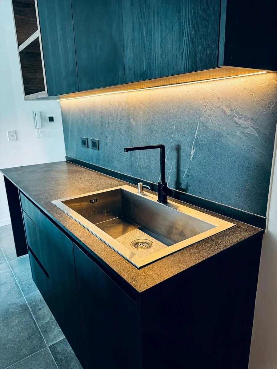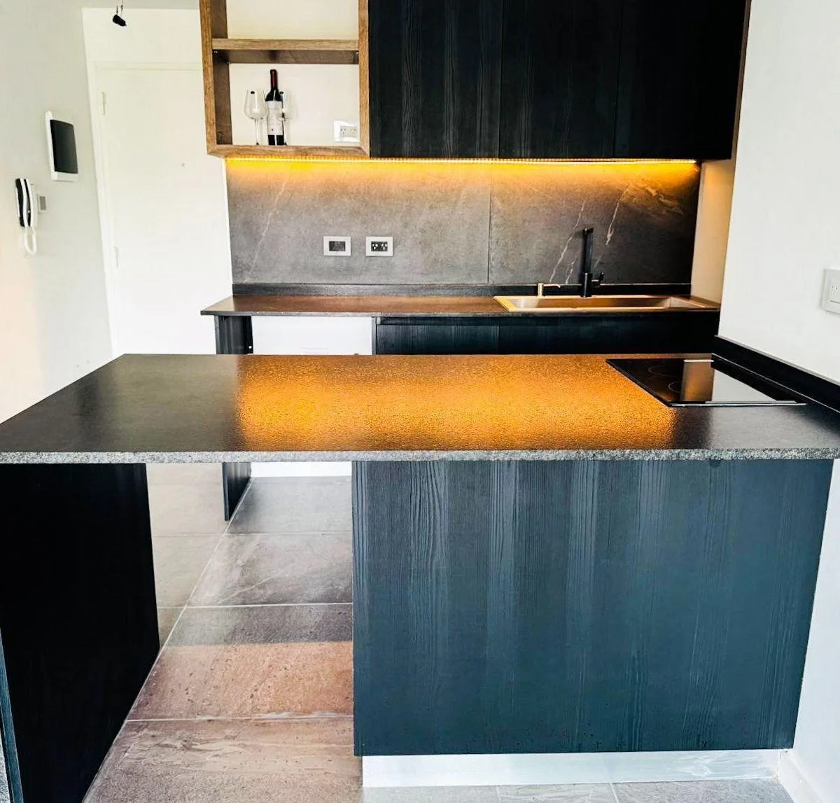 Квартира-студия в Tigre centro площадью с мебелью? (указано: помещения с оборудованием), на здании в двух блоках, расположенном на Calle Sáenz Peña. Окна на улицу, балкон; дверь-окно с двойным остеклением. Встроенная кухня с газовой духовкой Samsung, электрической варочной панелью Samsung, с мебелью под столешницей и гранитной столешницей; предусмотрено место под холодильник и сушилку/посудомоечную машину. Центральный котёл с индивидуальным термостатом, отопление тёплым полом (losa radiante), к