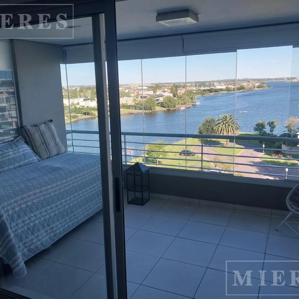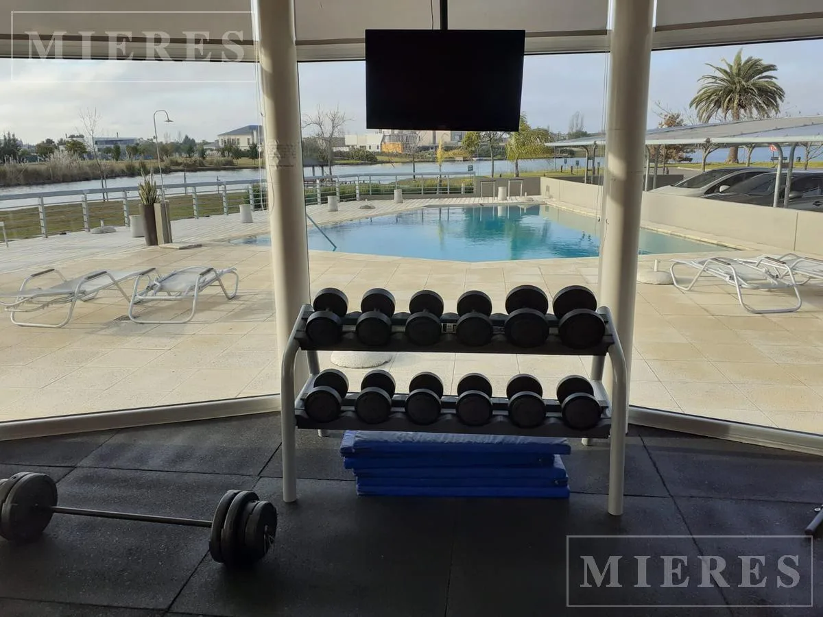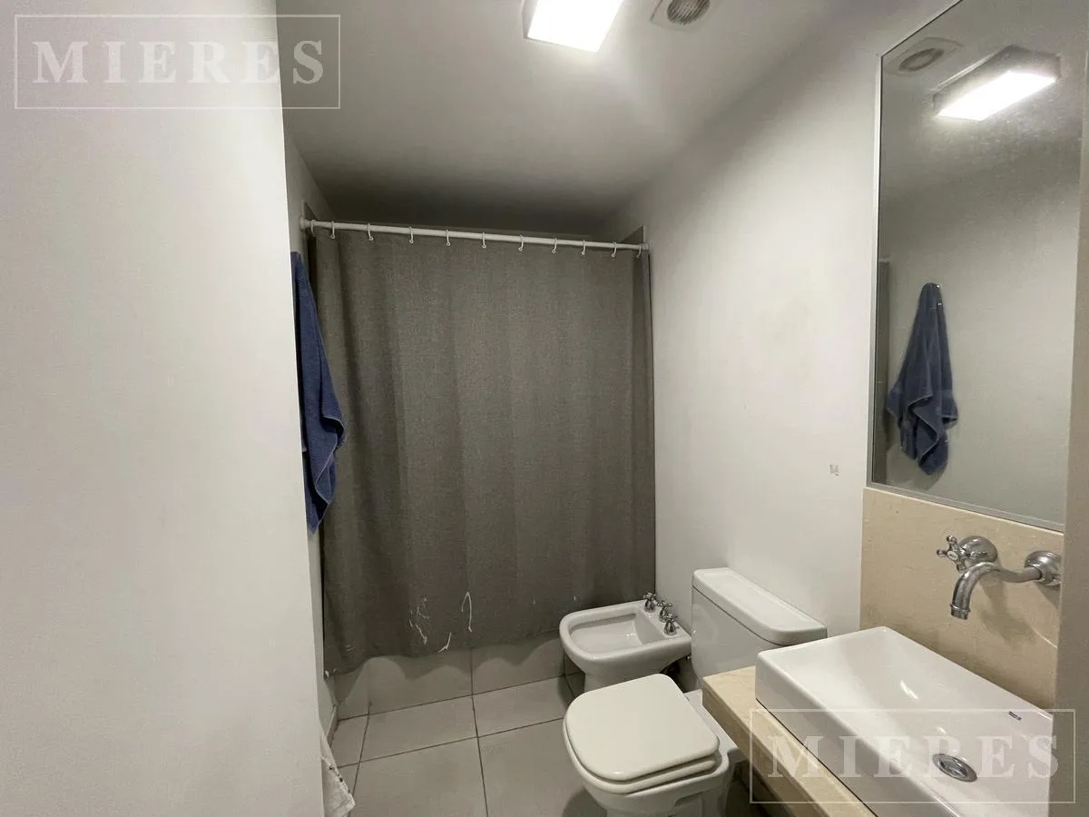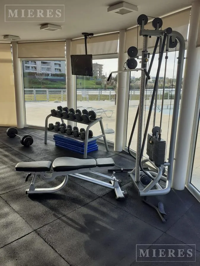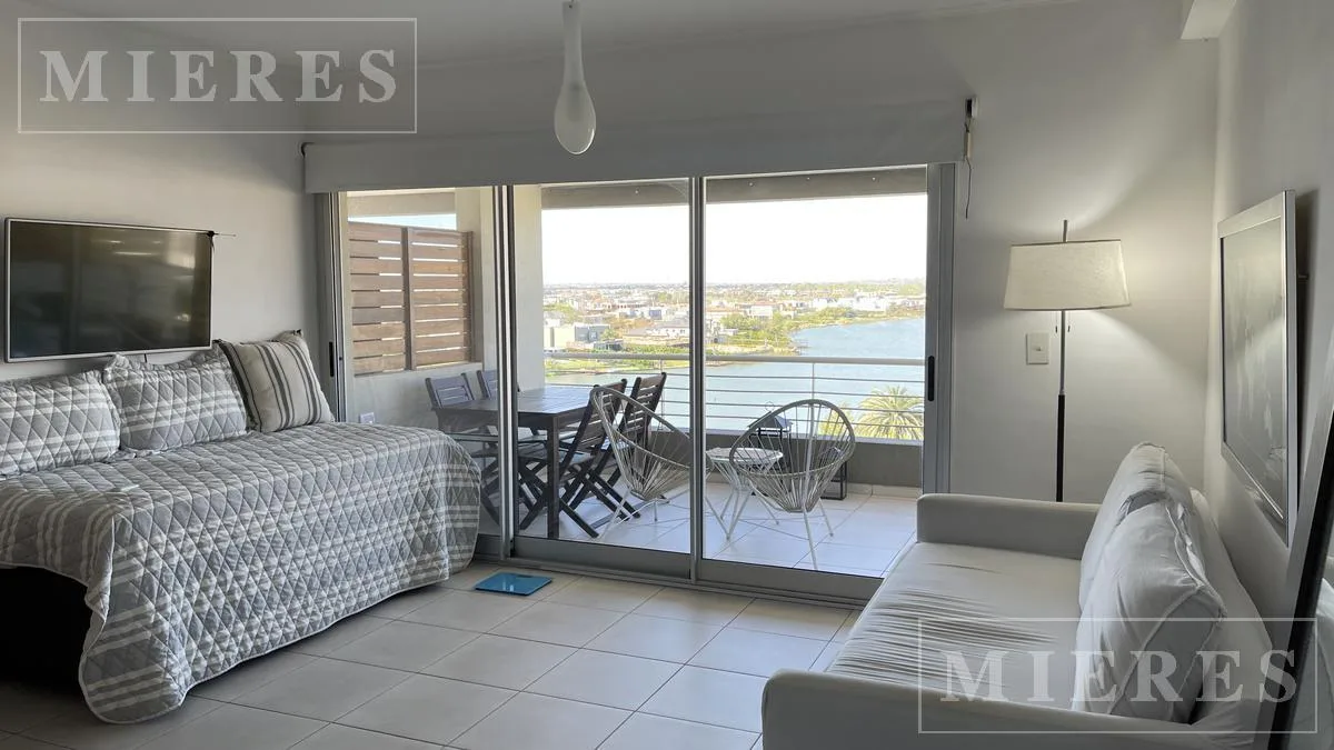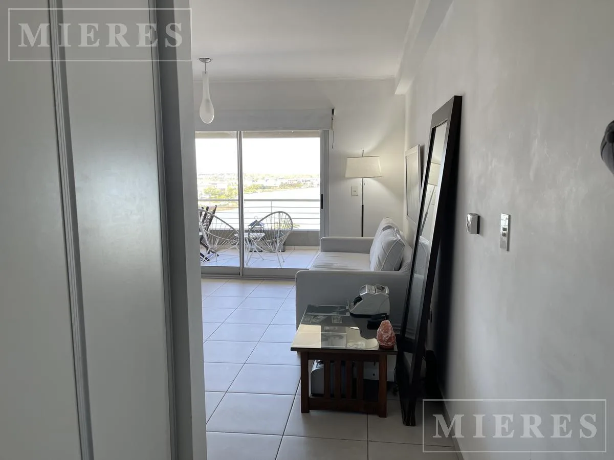 Квартира-студия в Edificio El Faro в Tigre, с мебелью. В студии предусмотрены 3 отдельных спальных места либо 1 двуспальная и 1 односпальная кровать. Кухня объединена с обеденной зоной, есть обеденный стол. Имеется балкон с остеклением с видом на поле для гольфа и центральное озеро. Предусмотрено (закреплённое) парковочное место в крытом гараже, а также бассейн, тренажёрный зал и общая гостиная для жильцов (SUM) в здании.