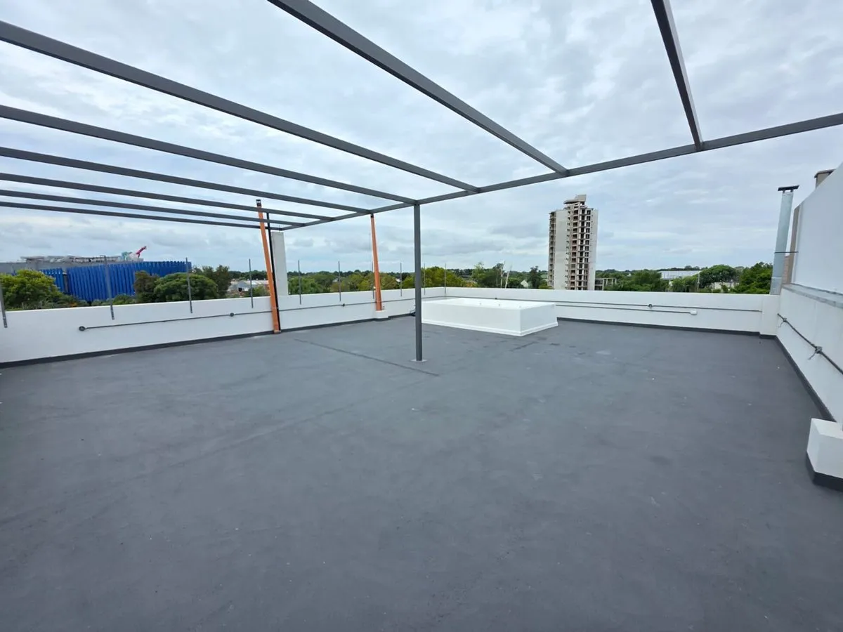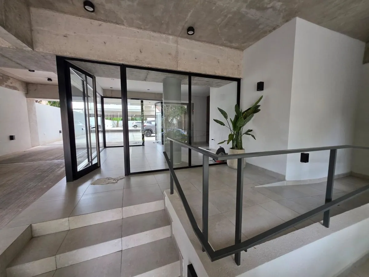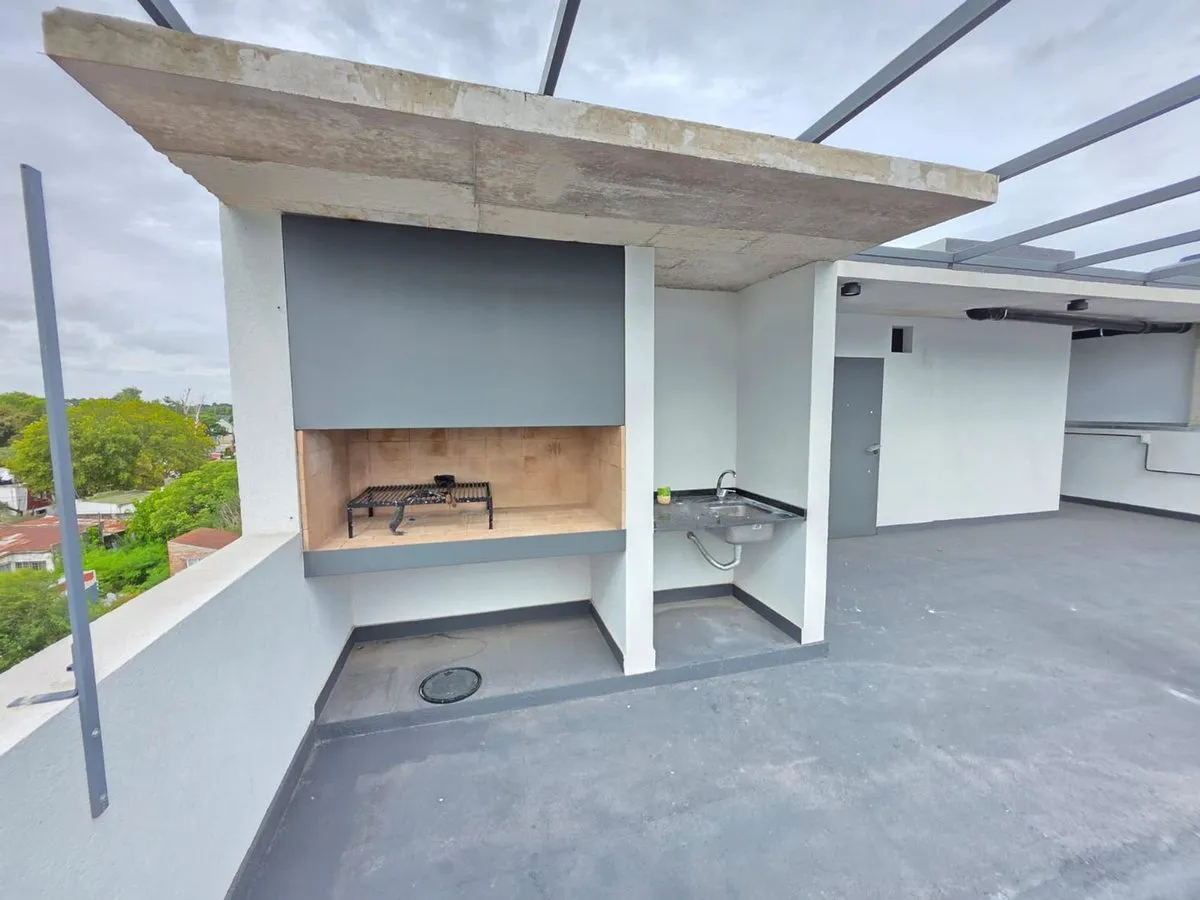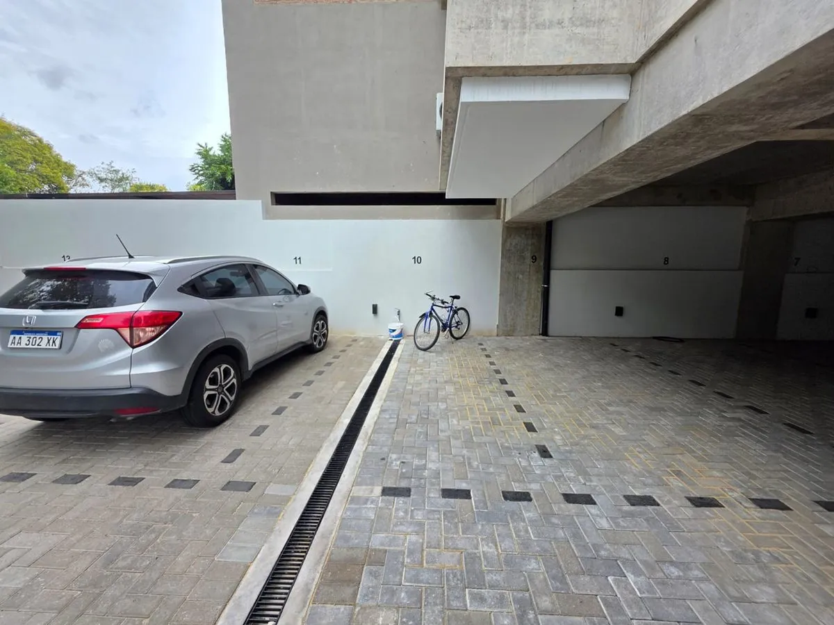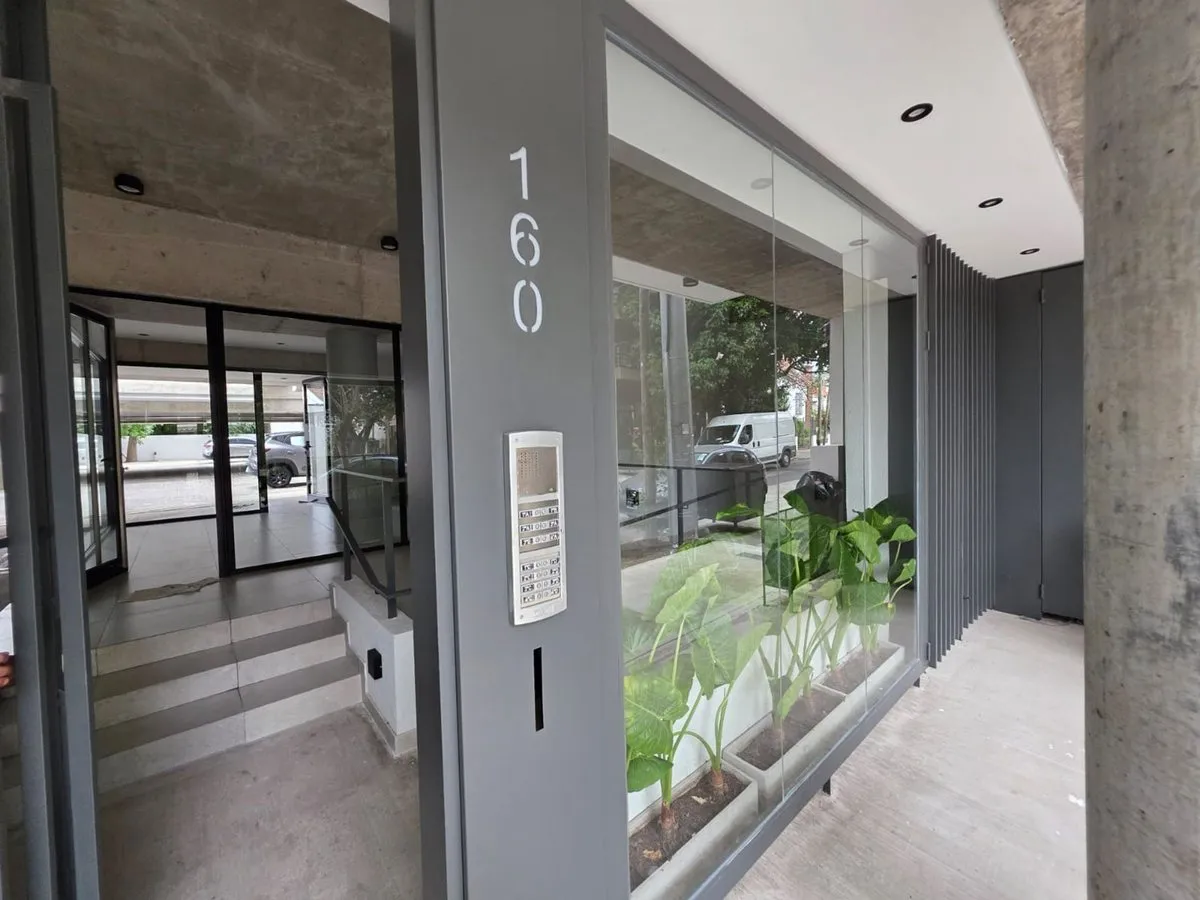 Квартира-студия в Tigre, 2 этаж. Окна на террасу-балкон. Кухня с островом, гранитная столешница, оборудована электрической варочной панелью и духовкой; вытяжка, верхние и нижние шкафы. Полная ванная с душевой кабиной. Установлены стеклопакеты, электронный замок и электрический напольный обогрев; горячая вода от индивидуального электробойлера (termo tanque). В стоимость аренды не включены расходы здания; указано ARBA включено в отдельные платежи. В здании 2 общие террасы, зона гриля, джакузи и со