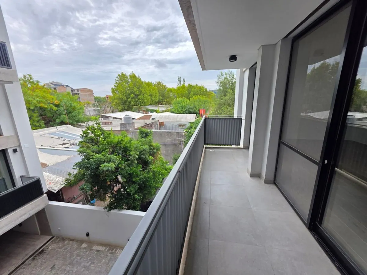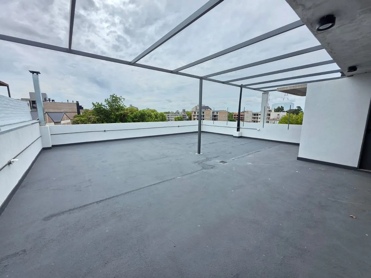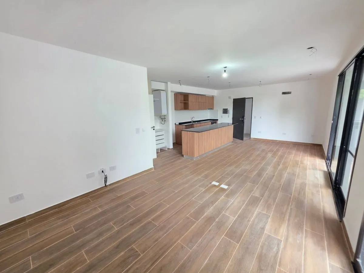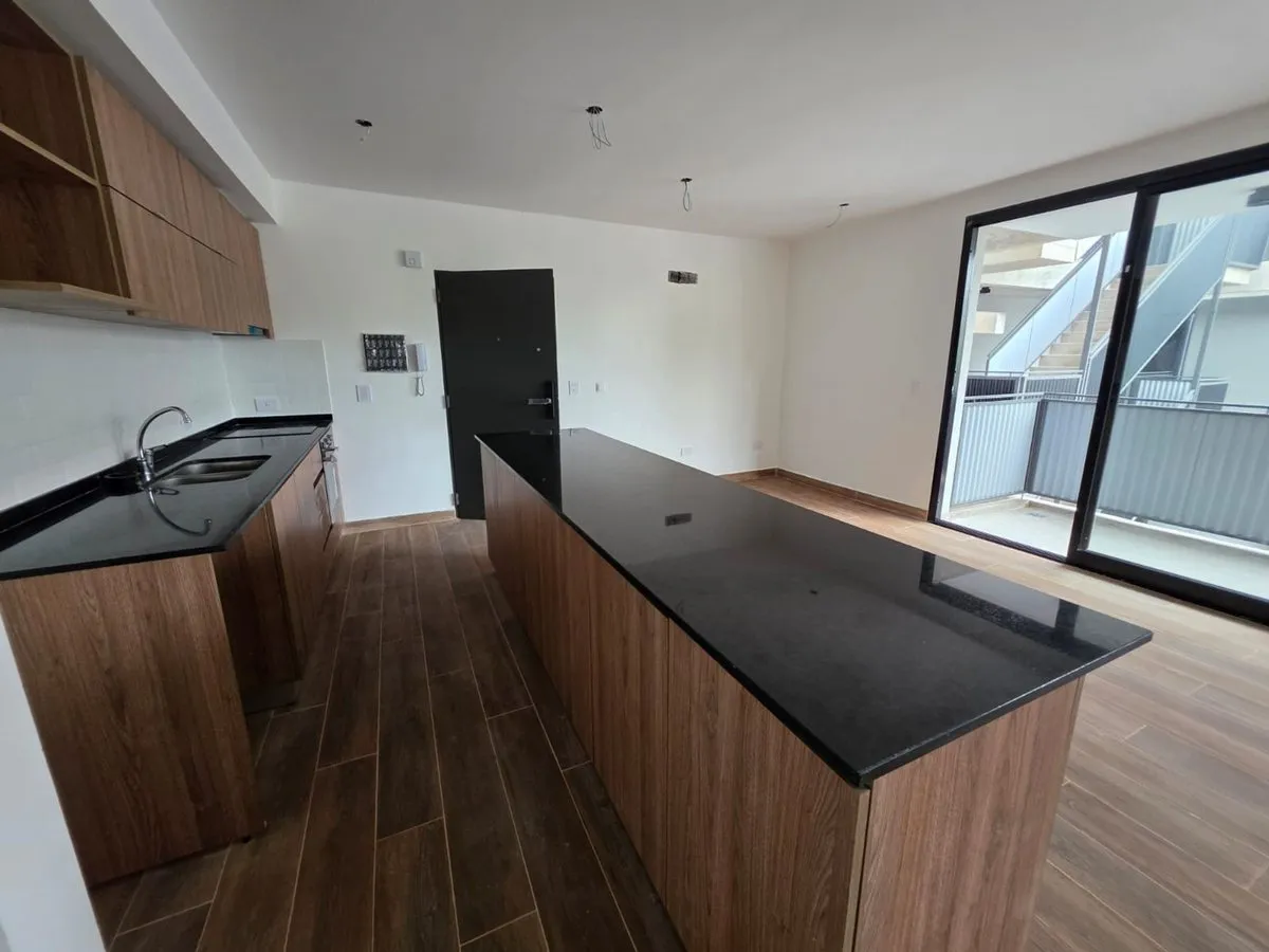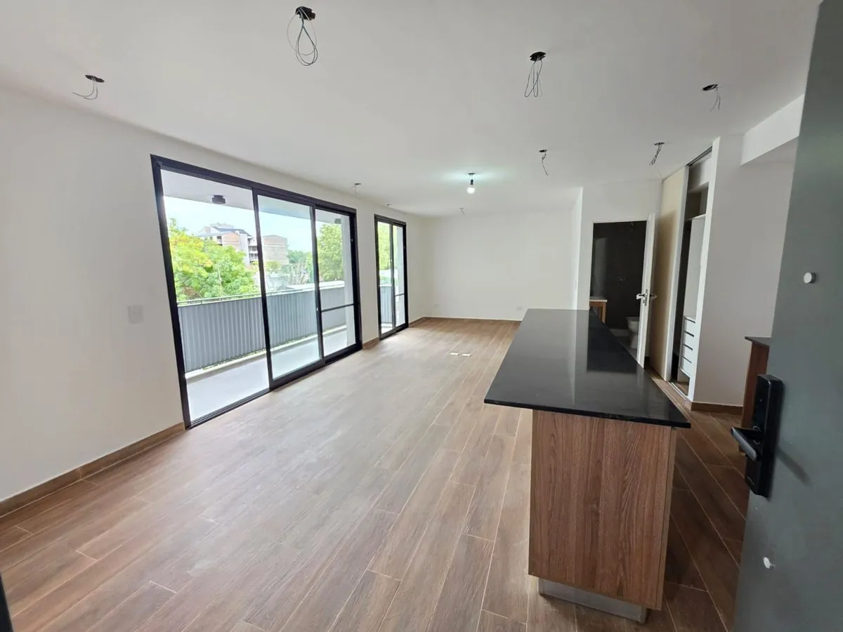 Квартира-студия в Tigre, 2 этаж. Окна на террасу-балкон. Кухня с островом, гранитная столешница, оборудована электрической варочной панелью и духовкой; вытяжка, верхние и нижние шкафы. Полная ванная с душевой кабиной. Установлены стеклопакеты, электронный замок и электрический напольный обогрев; горячая вода от индивидуального электробойлера (termo tanque). В стоимость аренды не включены расходы здания; указано ARBA включено в отдельные платежи. В здании 2 общие террасы, зона гриля, джакузи и со