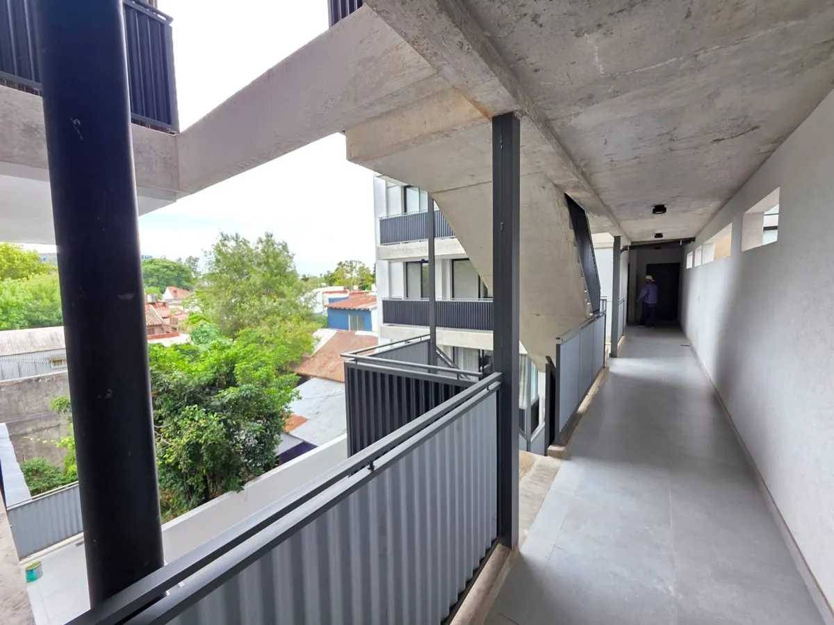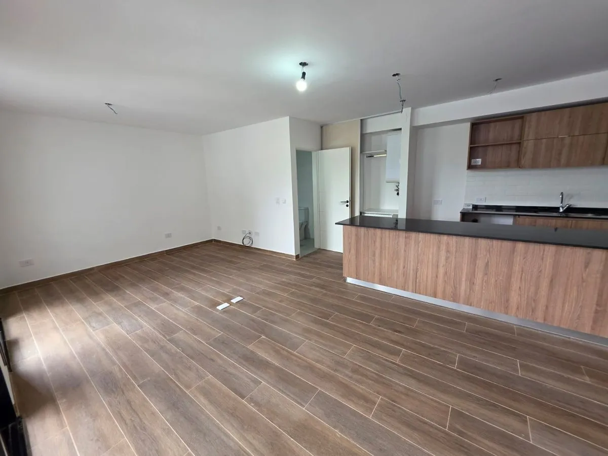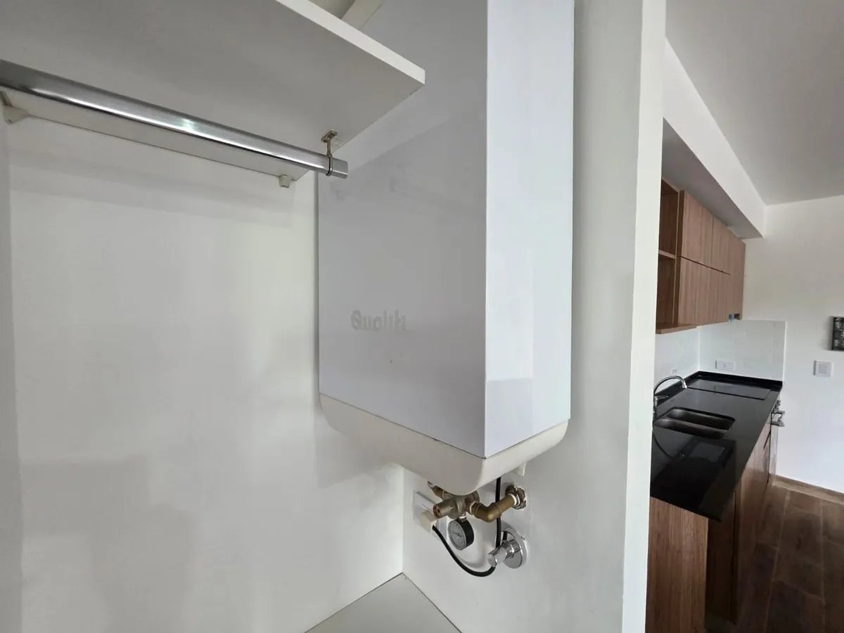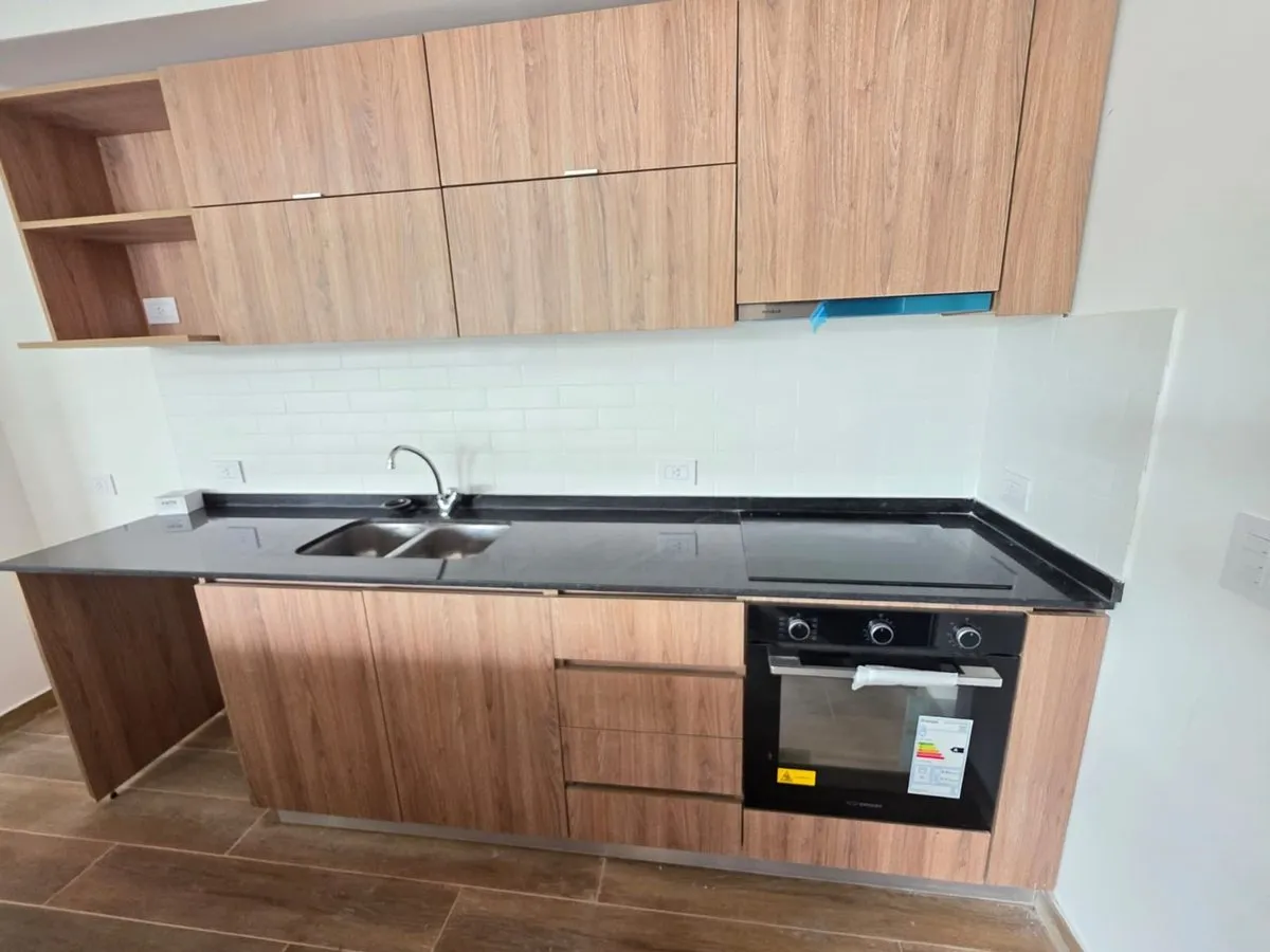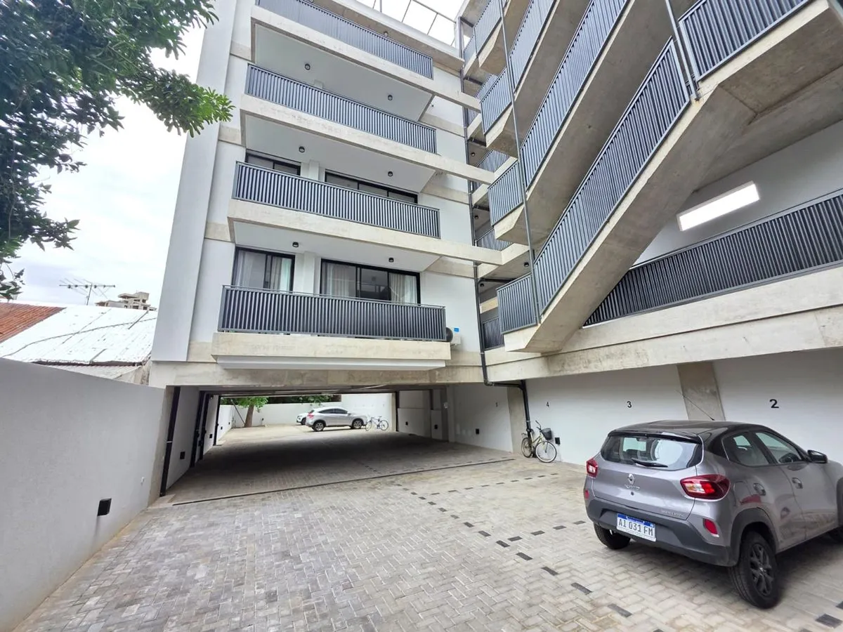Квартира-студия в Tigre, 2 этаж. Окна на террасу-балкон. Кухня с островом, гранитная столешница, оборудована электрической варочной панелью и духовкой; вытяжка, верхние и нижние шкафы. Полная ванная с душевой кабиной. Установлены стеклопакеты, электронный замок и электрический напольный обогрев; горячая вода от индивидуального электробойлера (termo tanque). В стоимость аренды не включены расходы здания; указано ARBA включено в отдельные платежи. В здании 2 общие террасы, зона гриля, джакузи и со