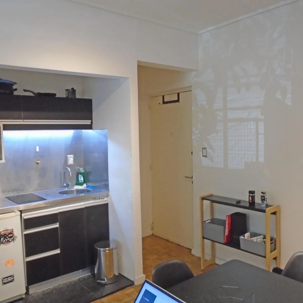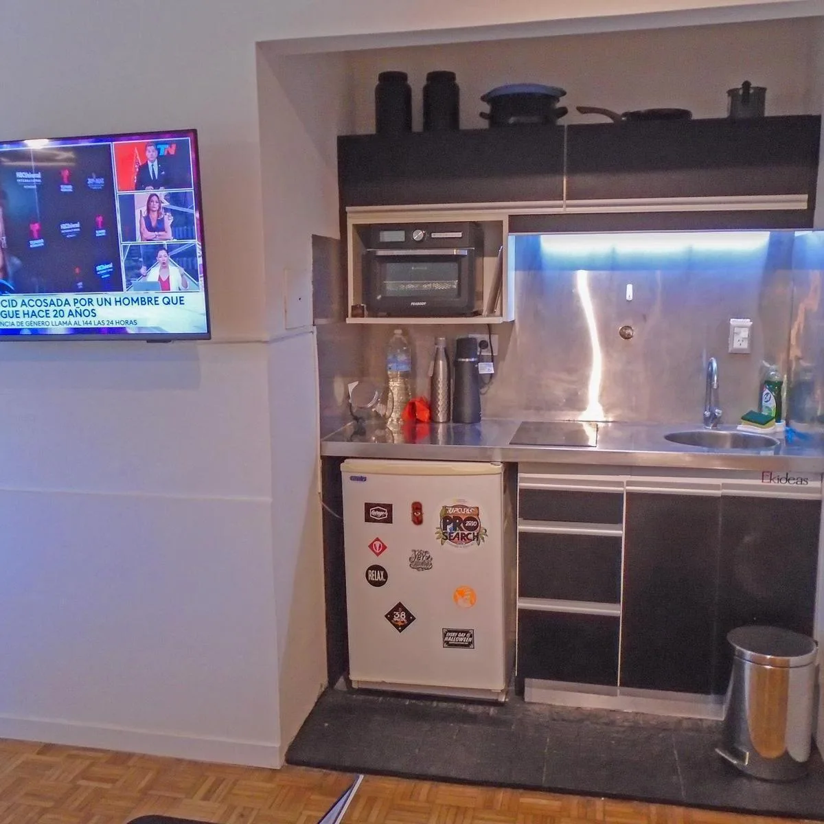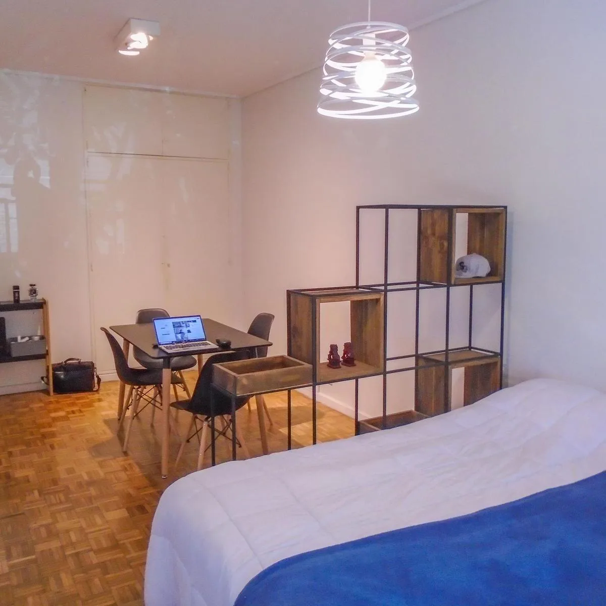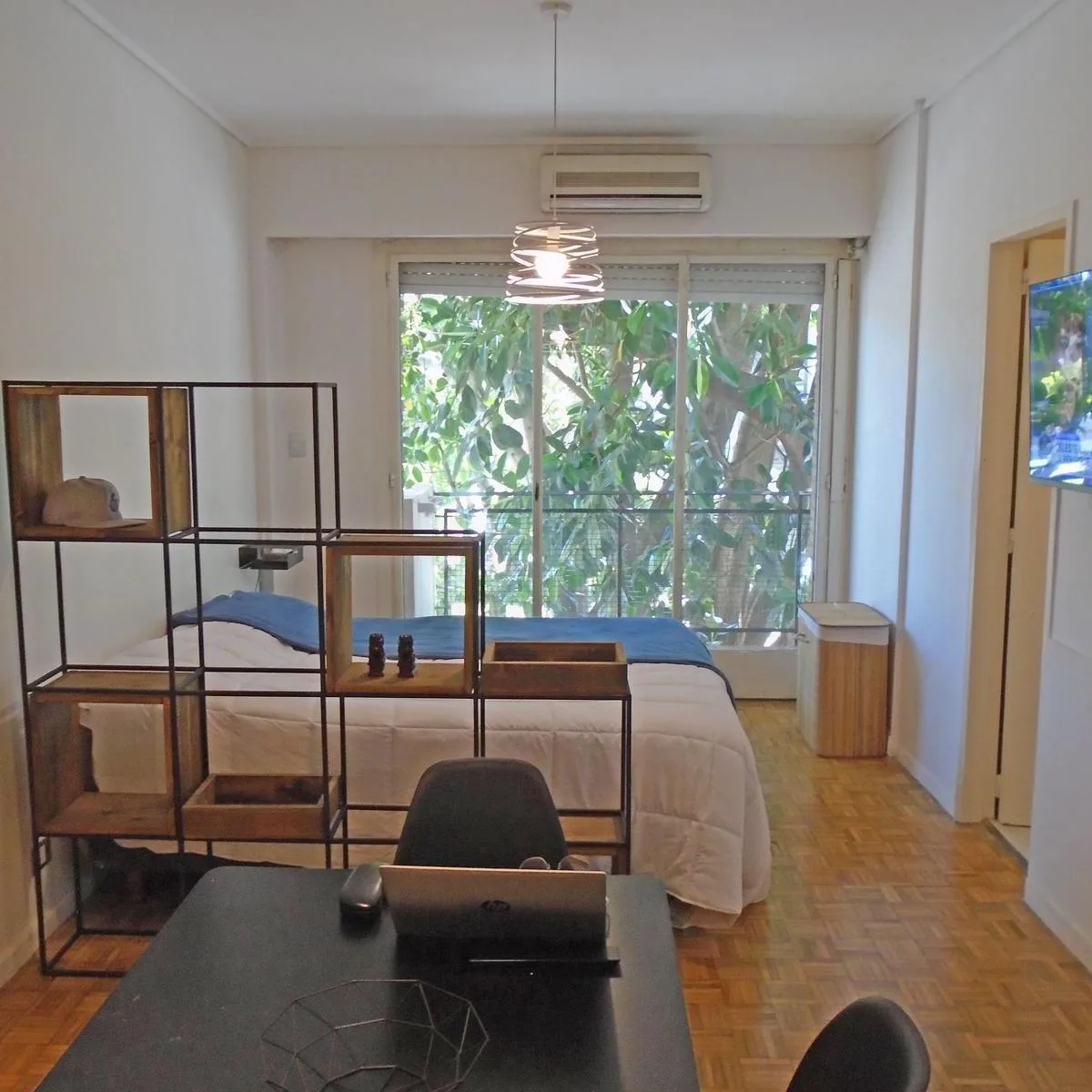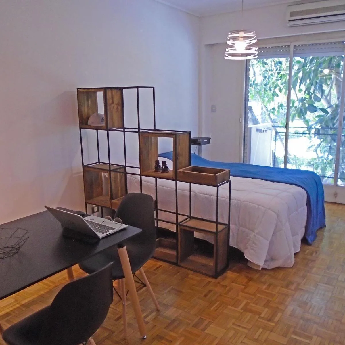 Квартира-студия площадью 30 m² в Vicente López, окна на улицу и балкон. Ориентация на восток. Кухня-кинетт с мебелью, полноценная ванная, деревянные полы. Подходит для профессионального использования.