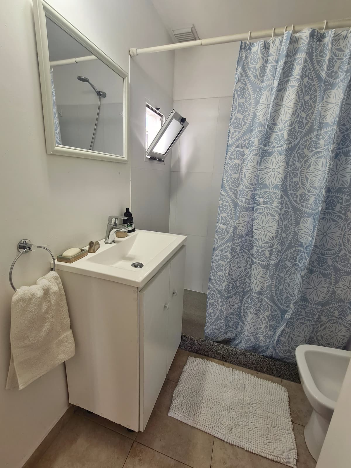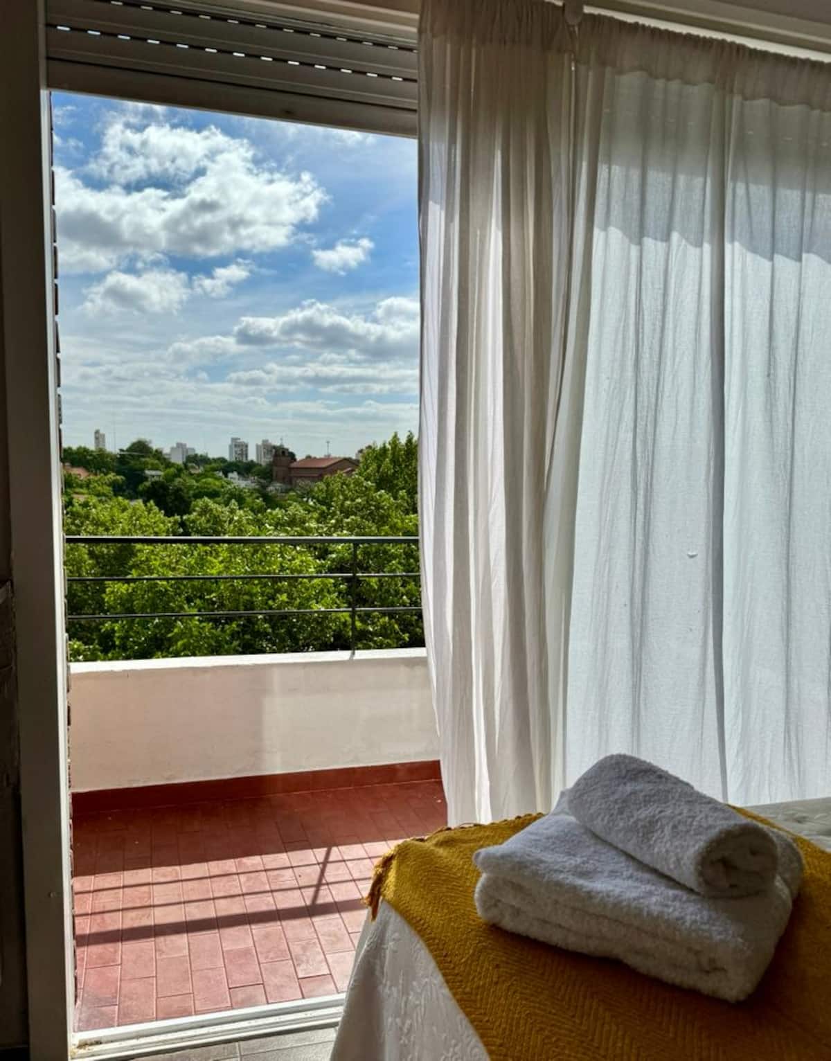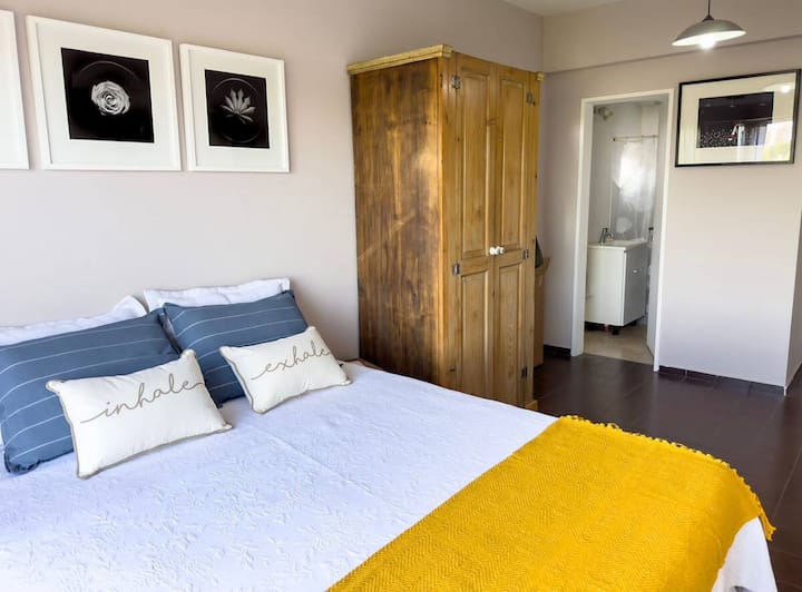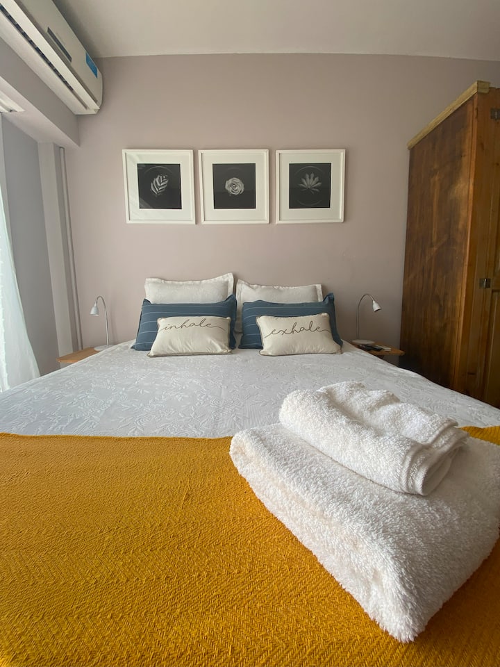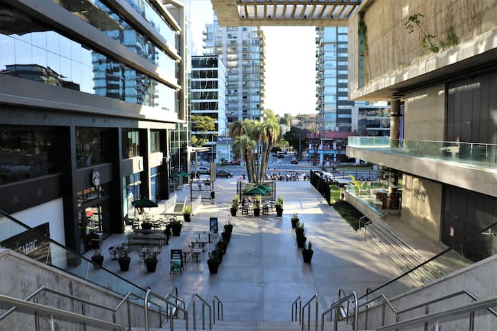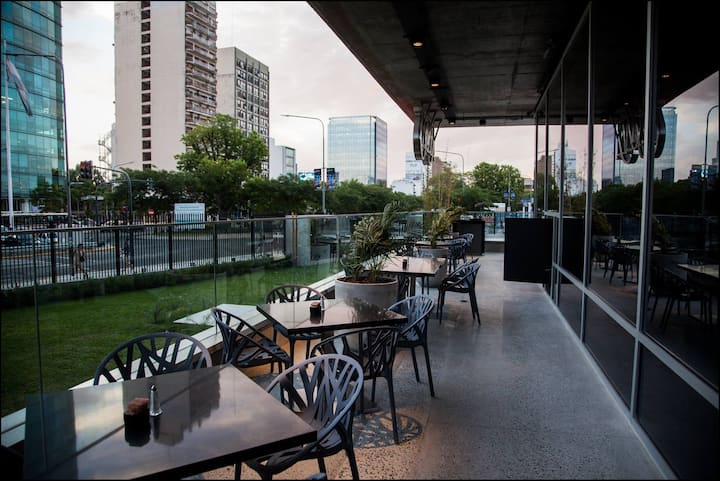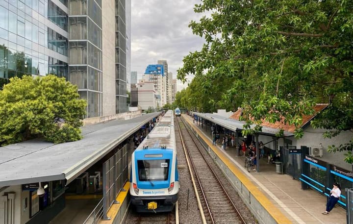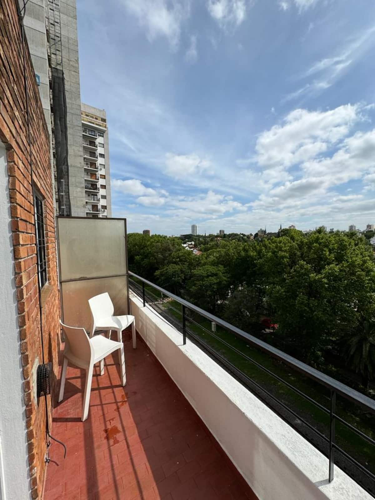 Квартира-студия в Vicente López. В ней есть двуспальная кровать, балкон и отдельная кухня с обеденным столом. В квартире установлены кондиционер и шкаф с вешалками, а также телевизор; в ванной душевая кабина, биде и унитаз. Кухня оборудована холодильником с морозильной камерой, плитой, духовкой, микроволновой печью, тостером и электрическим чайником. Указаны окна с видом на вершины деревьев и доступ к Wi‑Fi; вблизи Paseo de la Costa, примерно в 400 метрах от супермаркета.