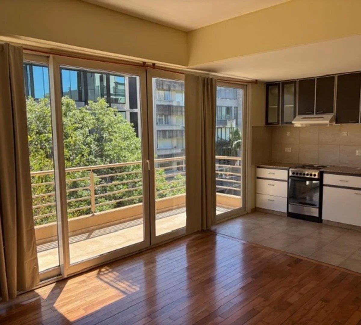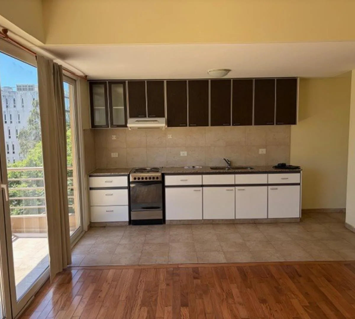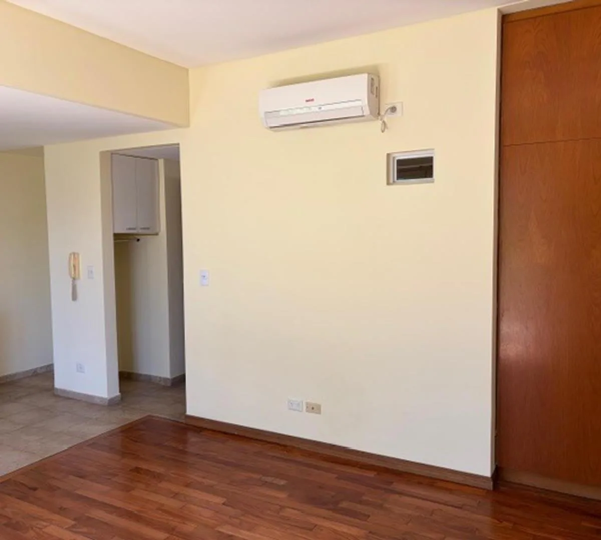 Квартира-студия площадью с окнами на улицу и выходом на балкон во двор здания. В помещении паркет и керамическое покрытие, открытая кухня с верхними и нижними шкафами, полноценная ванная, места для хранения в шкафах. Установлен сплит «холод-тепло», горячая вода от электрического водонагревателя. Есть (закреплённое) крытое парковочное место в подземном уровне. В здании: бассейн, солярий и общая гостиная для жильцов (SUM); коммунальные платежи здания включают AYSA. При аренде предусмотрены: авансо
