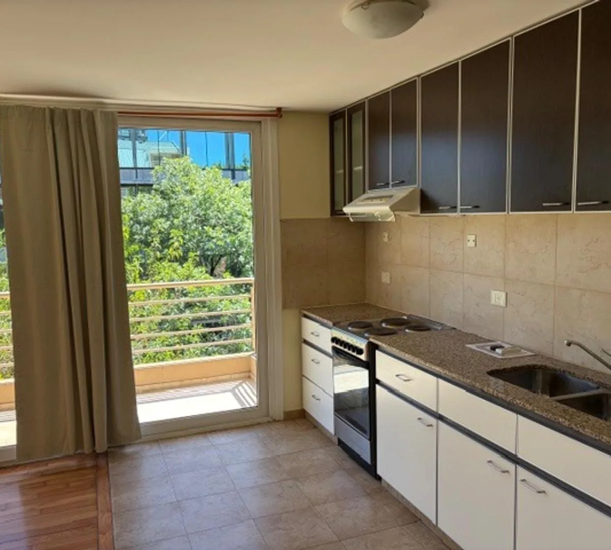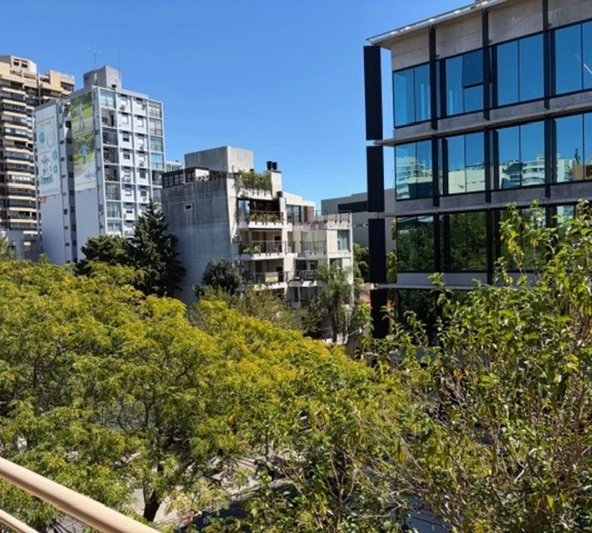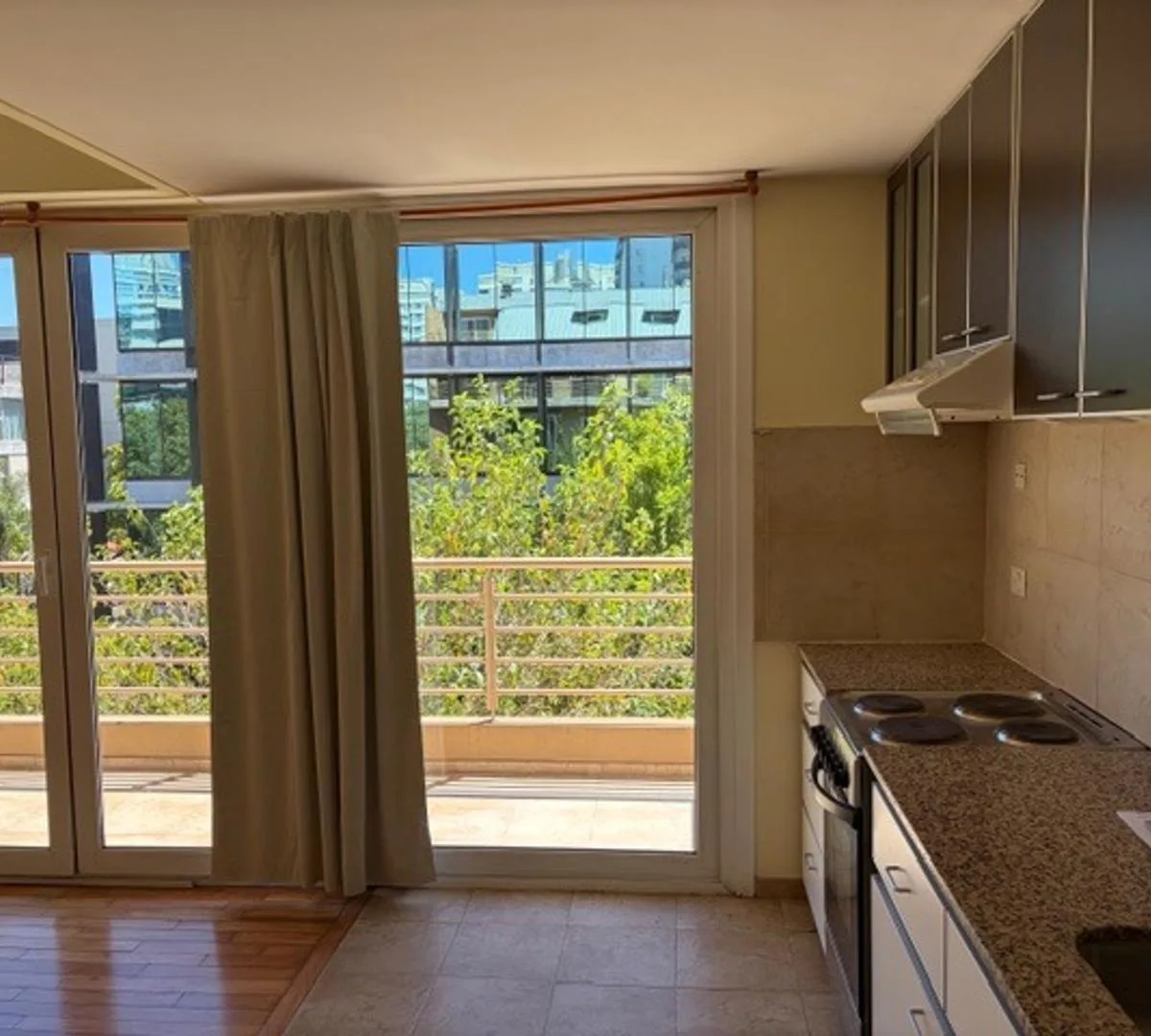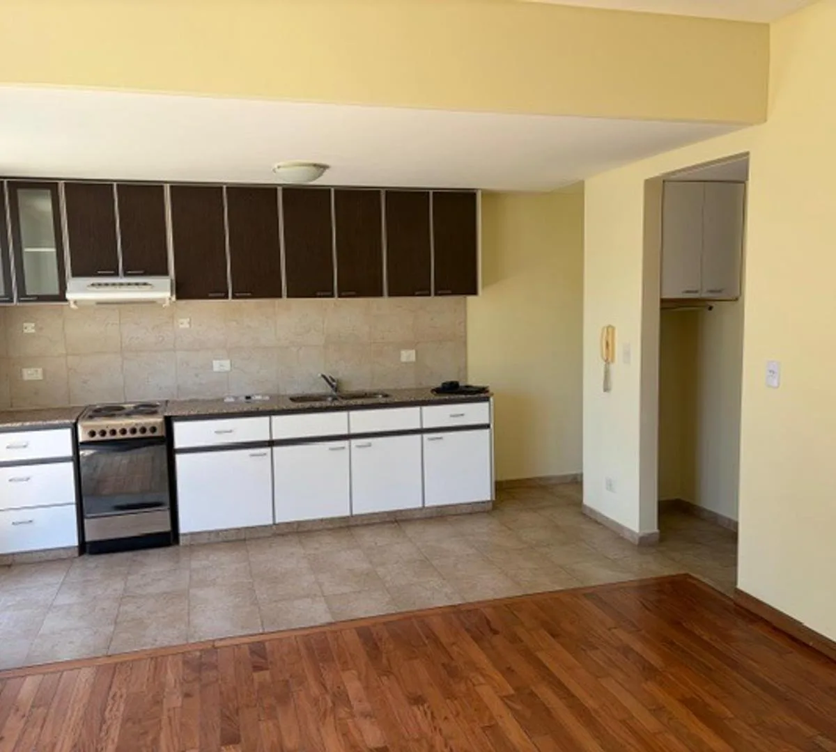 Квартира-студия площадью с окнами на улицу и выходом на балкон во двор здания. В помещении паркет и керамическое покрытие, открытая кухня с верхними и нижними шкафами, полноценная ванная, места для хранения в шкафах. Установлен сплит «холод-тепло», горячая вода от электрического водонагревателя. Есть (закреплённое) крытое парковочное место в подземном уровне. В здании: бассейн, солярий и общая гостиная для жильцов (SUM); коммунальные платежи здания включают AYSA. При аренде предусмотрены: авансо
