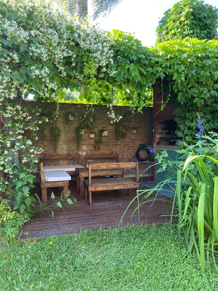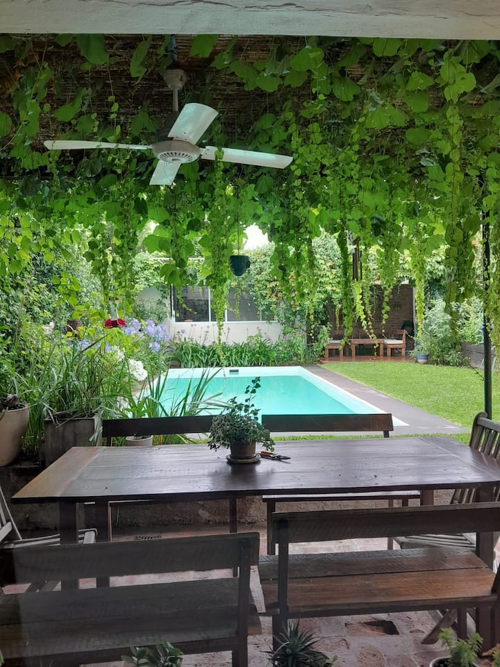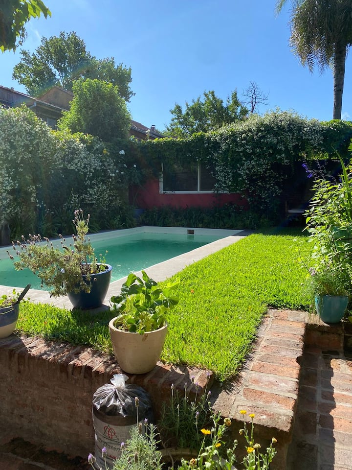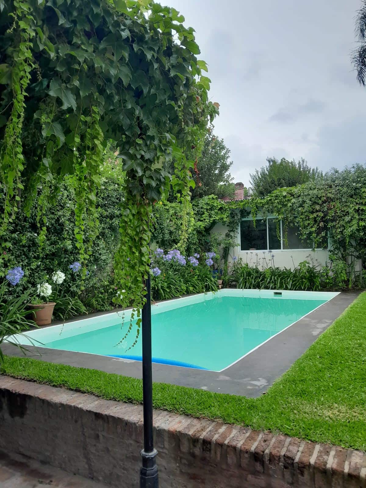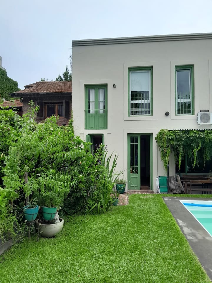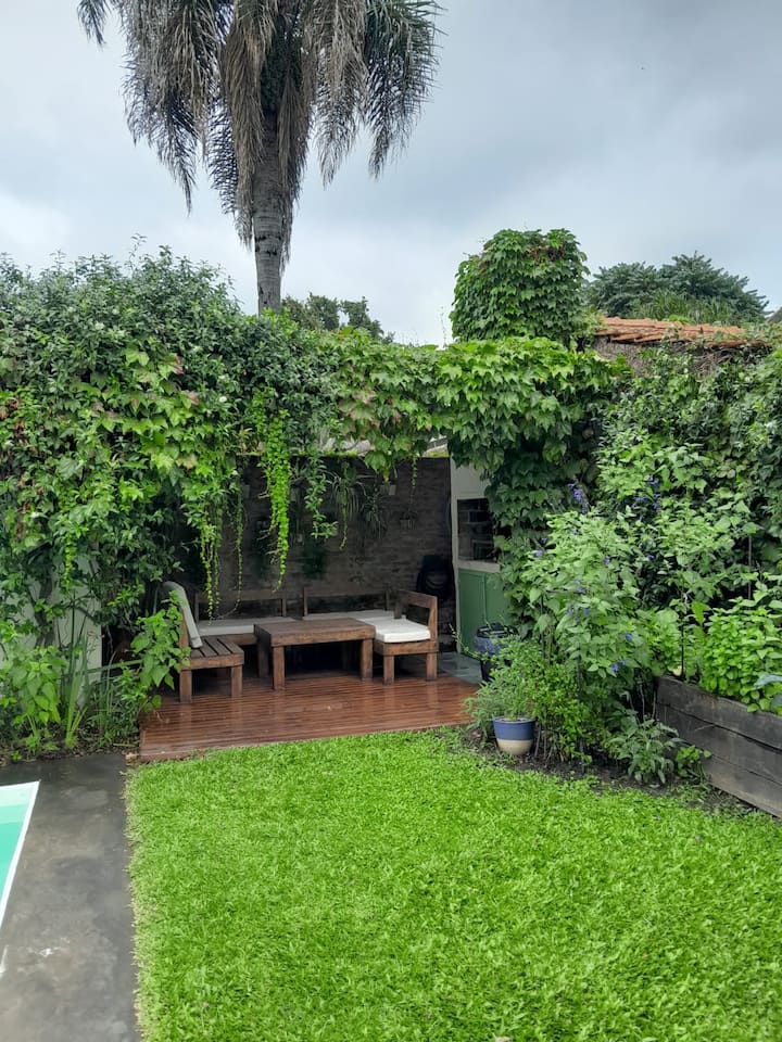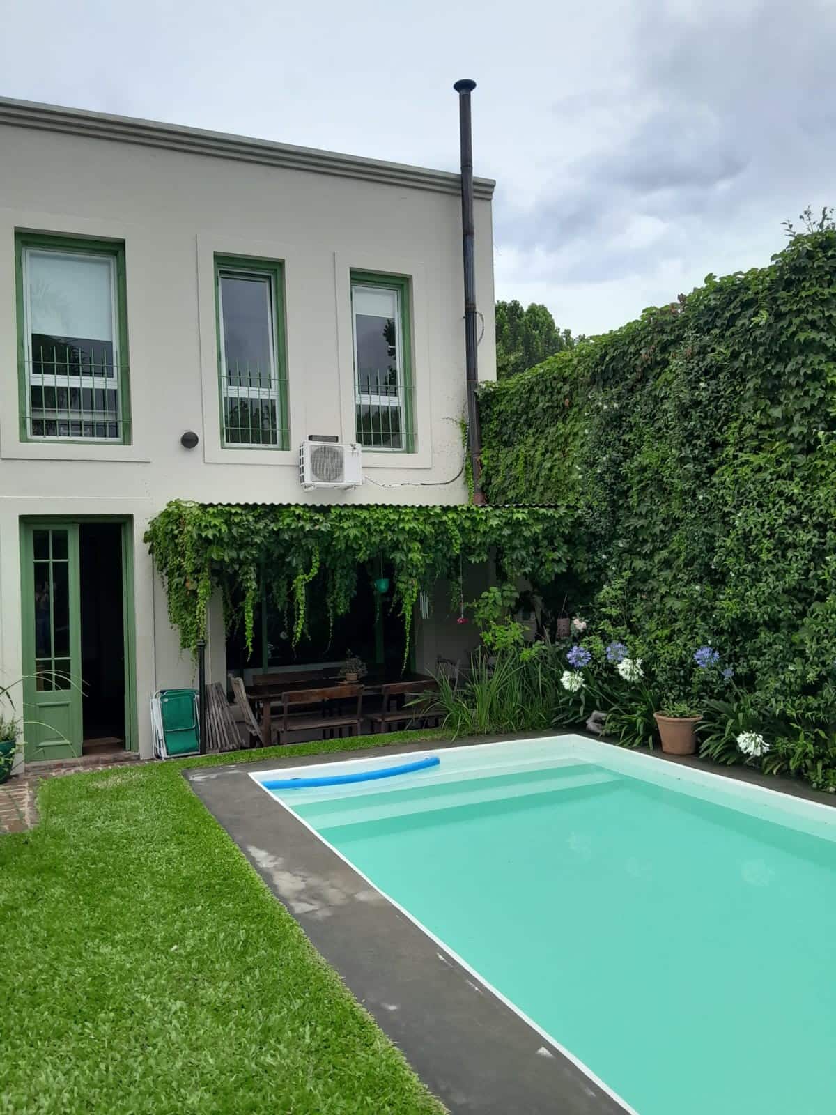 Коттедж в Victoria. Большая гостиная объединена с кухней и зоной под телевизор. На участке есть патио с крытой галереей, бассейн, сад с цветниками и зона гриля с крытым навесом. Первый этаж включает главную спальню с ванной комнатой, второй этаж — две спальни, одна с рабочим столом, ещё ванные комнаты и прачечная. В верхних спальнях установлены кондиционеры. Отдельного гаража нет, при этом сообщается о безопасности на углу.