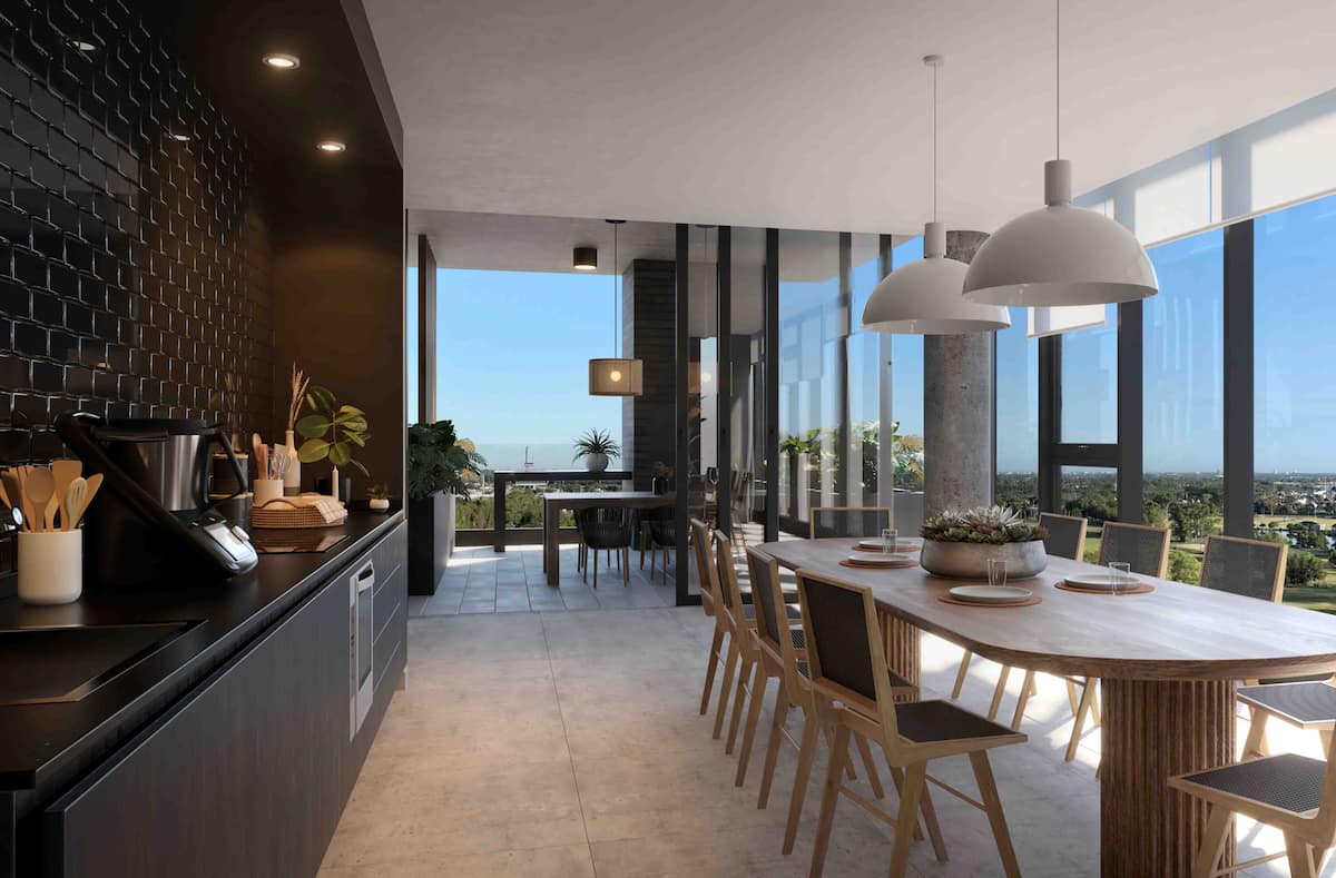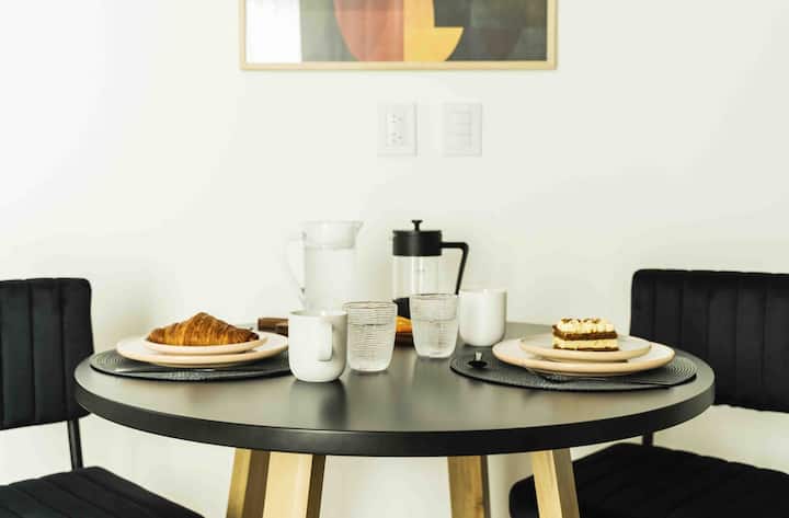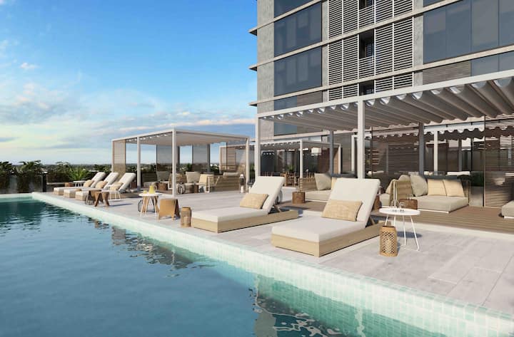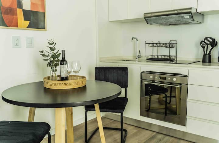 Квартира-студия в Victoria. Угловое расположение; отмечены естественное освещение и виды. Встроенная интегрированная кухня с холодильником и микроволновой печью, посудой; есть кондиционер, Smart TV, Wi‑Fi. В здании предусмотрены бассейн, солярий, тренажёрный зал, зона coworking, зона гриля, парковка и многоцелевое помещение. На территории Buenavista, с удобным выездом на Pan-American Highway и в районе коридора Bancalari.