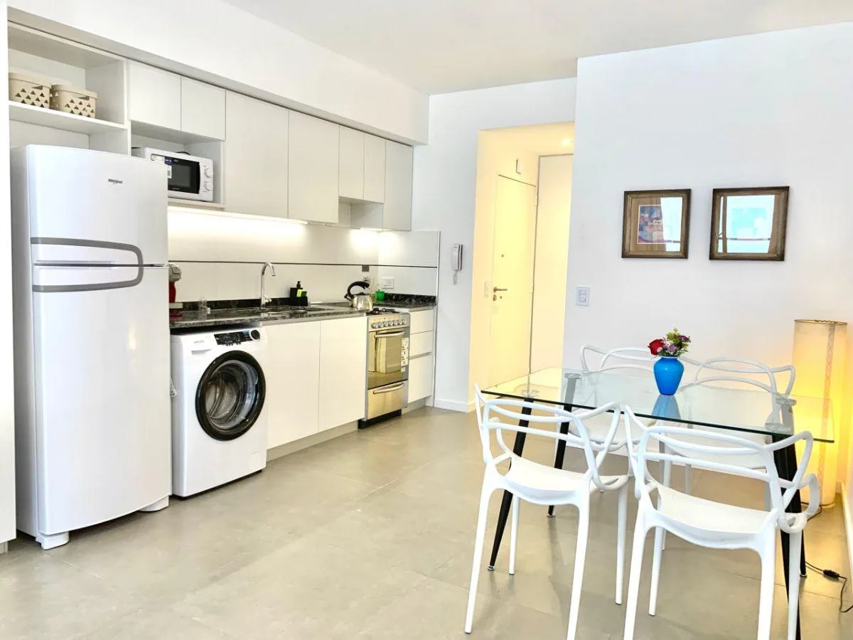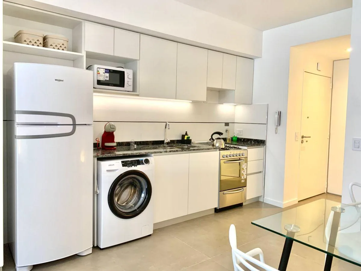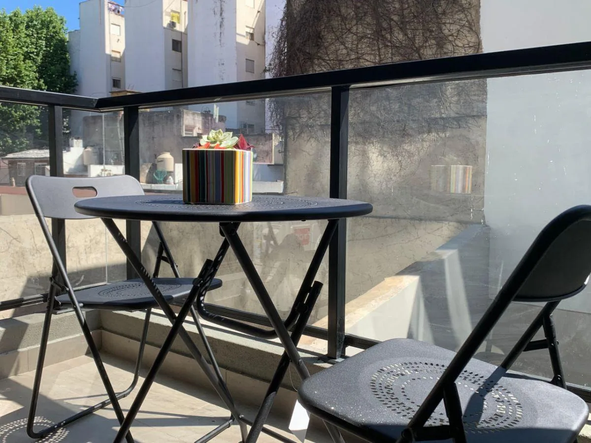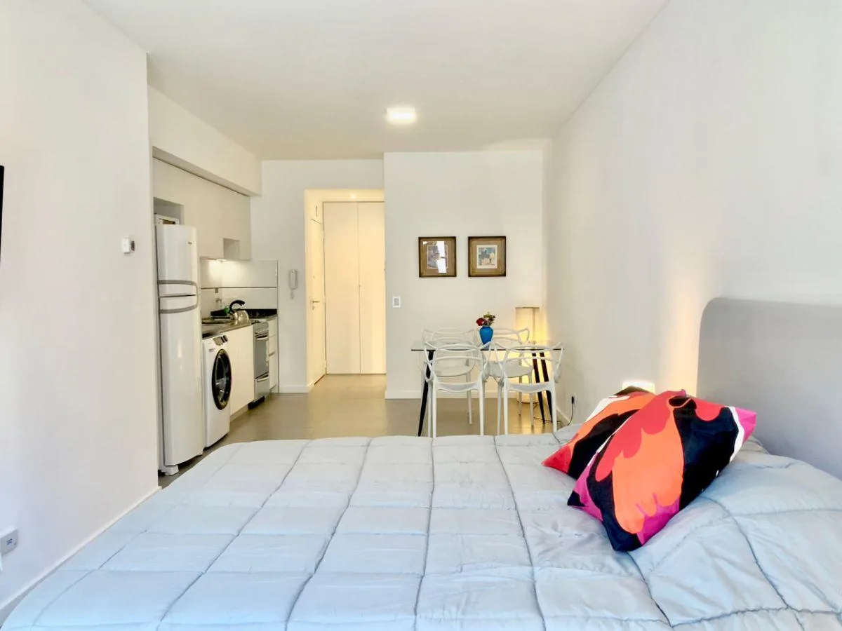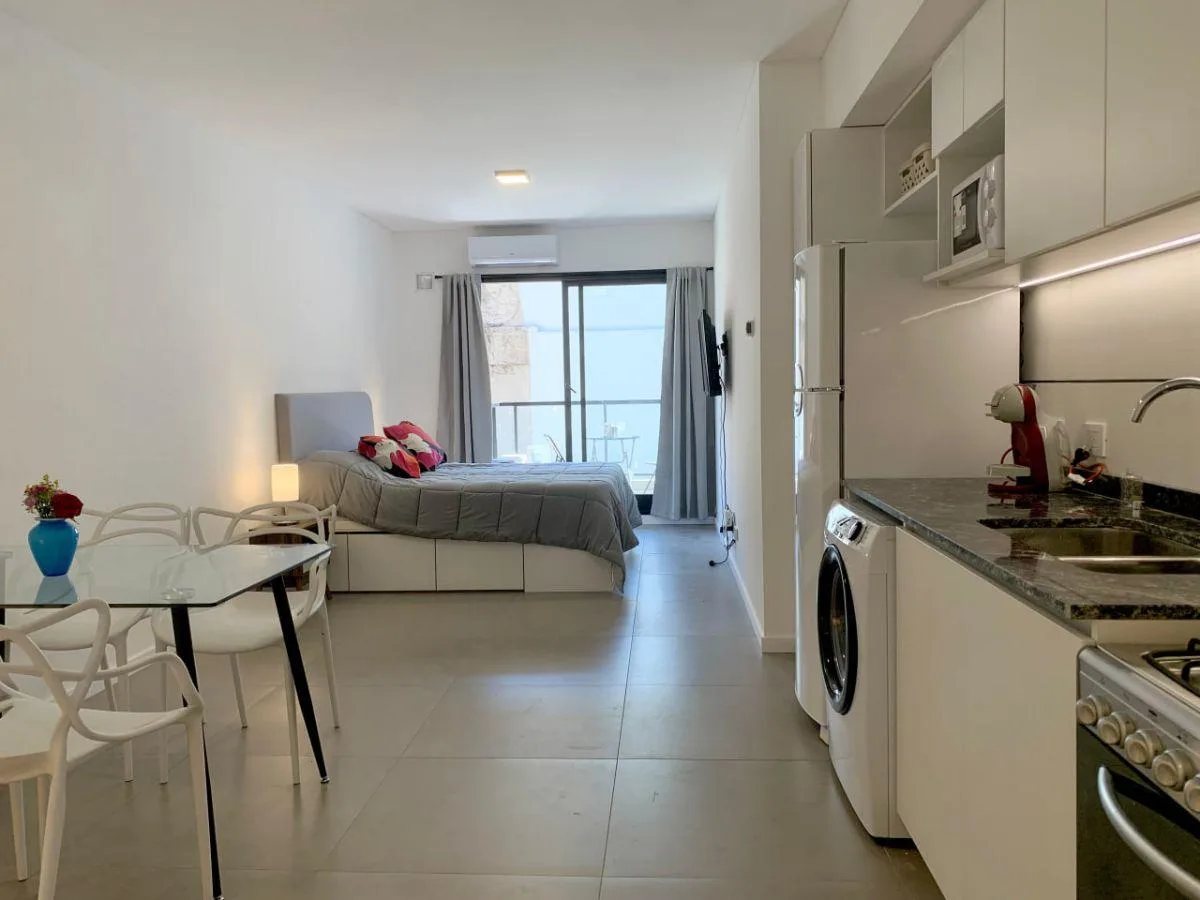 Квартира-студия площадью 36 m² на высоком этаже в Villa Crespo, с окнами на улицу и свободным видом на город. В комнате двуспальная кровать, встроенные ящики для хранения, обеденный стол на 4 человека; окна от пола до потолка с выходом на приватный балкон. В ванной установлен душ без порога; в квартире есть стиральная машина. Кухня оборудована электрической плитой, микроволновой печью, морозильной камерой и холодильником. В здании есть лифт, бассейн на крыше и общая зона гриля; также указана кла