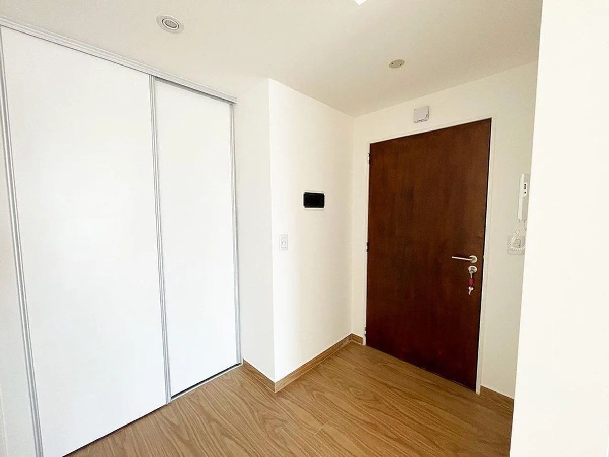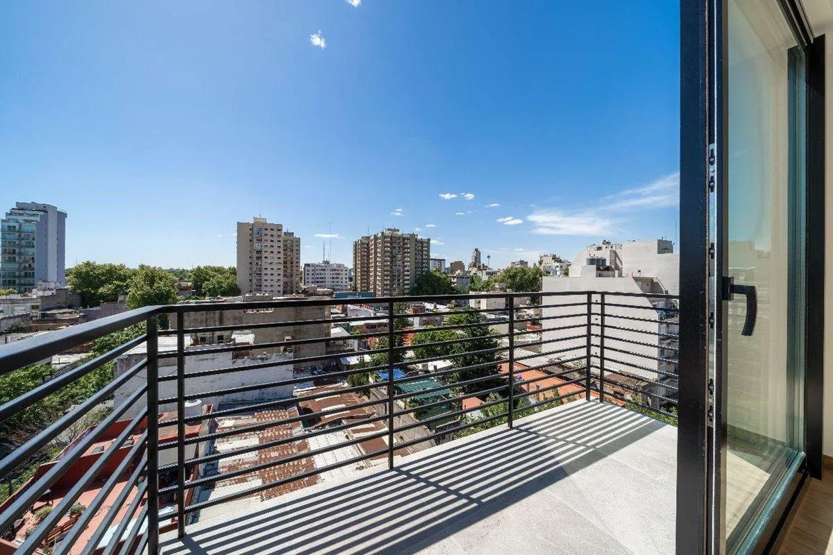 Квартира-студия в Villa Crespo, 45 m² общей площади (41 m² крытых), 7º A этаж, окна на улицу, с балконом. Кухня с верхними шкафами и нижними ящиками, полный санузел с зеркалом; горячая вода от индивидуального водонагревателя (calefón). Установлены кондиционер (холод/тепло), светильники; предусмотрено подключение стиральной машины (lavarropas). В здании есть общая гостиная для жильцов (SUM), терраса и зона гриля, а также электрический видеодомофон. Коммунальные платежи здания: $143.000, включая A