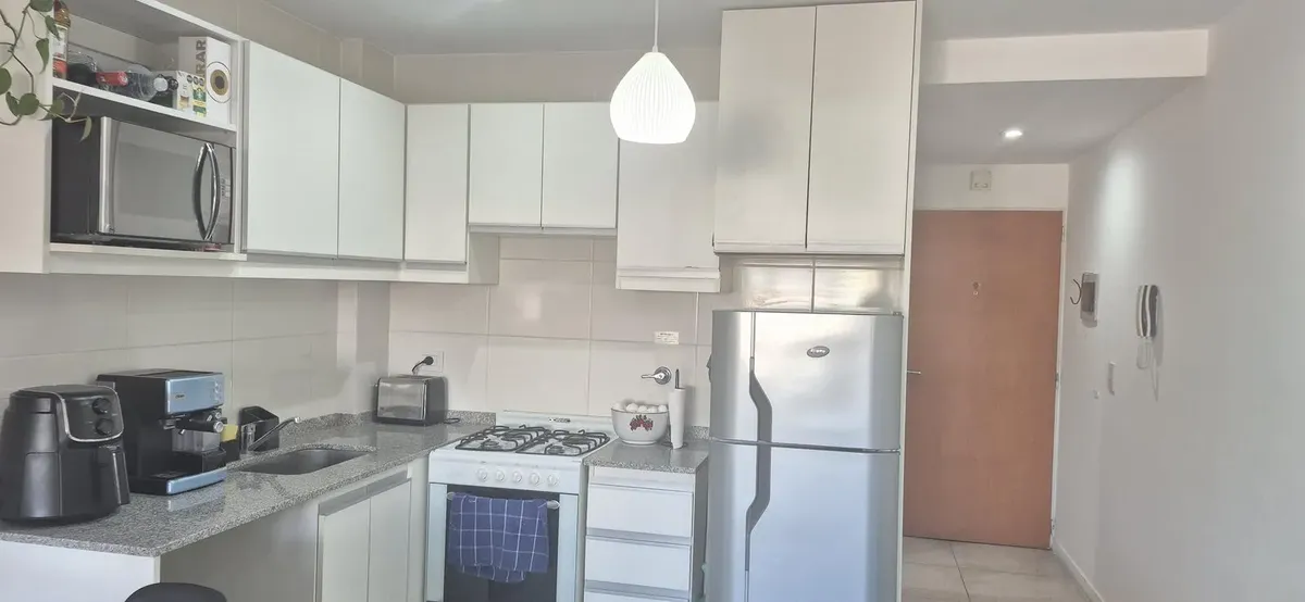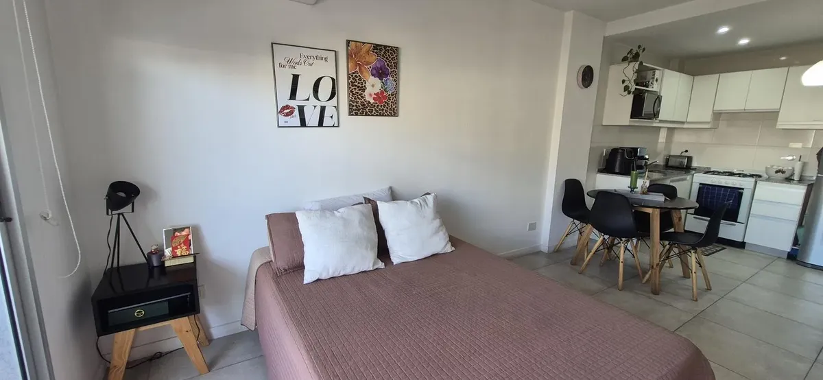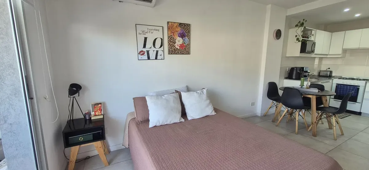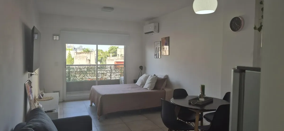 Квартира-студия в Villa del Parque, с мебелью, в хорошем состоянии. Есть кондиционер (холод/тепло) и балкон. Газовая кухня с гранитной столешницей, кухонная мебель с нижними тумбами и навесными шкафами; предусмотрен бойлер на индивидуальном электрическом термонагревателе. Установлена гардеробная встроенная до потолка, а также плитка на полу и отдельный бак из нержавеющей стали (мойка) с смесителем. Месячная аренда составляет $650.000, последние коммунальные платежи здания — около $148.000, они в