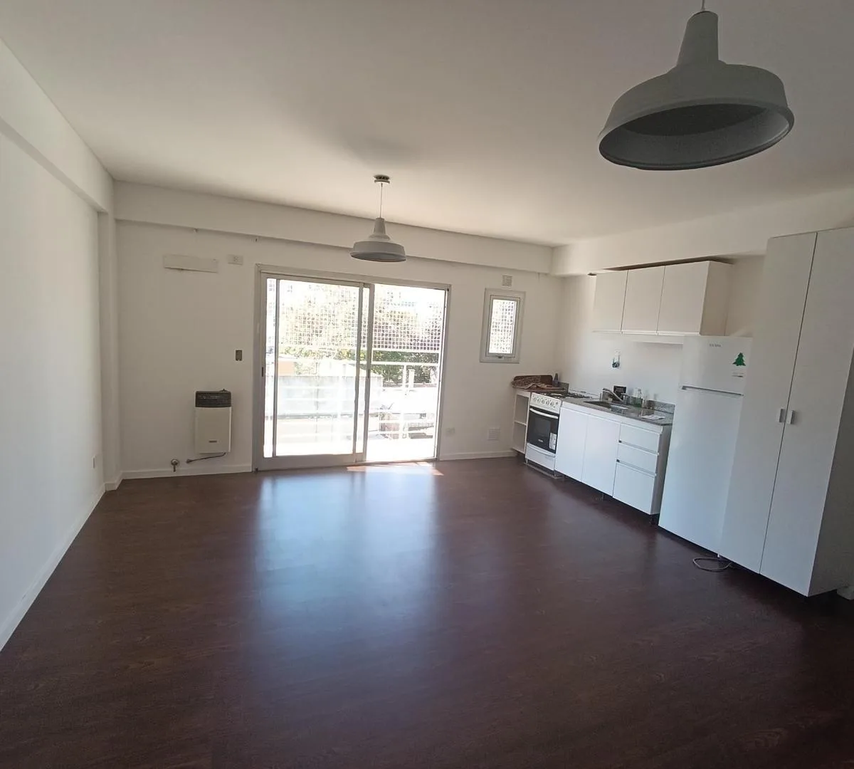 Квартира-студия в Villa del Parque с балконом и окнами во двор. Кухня интегрирована; есть отдельный полный санузел. Балкон выходит во двор. Указано, что объект использовался мало; в доме есть большой лифт. В объявлении также указано: залог-страховка аренды, ежемесячная предоплата и подтверждение дохода, максимум 2 человека, без домашних животных. Адрес указан как Calle Teodoro Vilardebo между Av. Álvarez Jonte и Lascano.