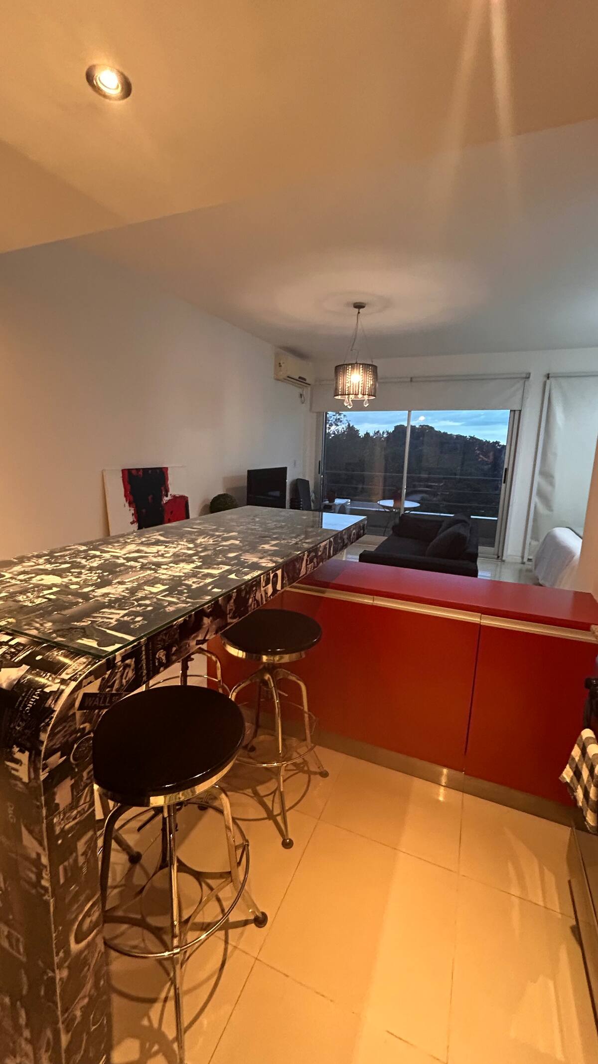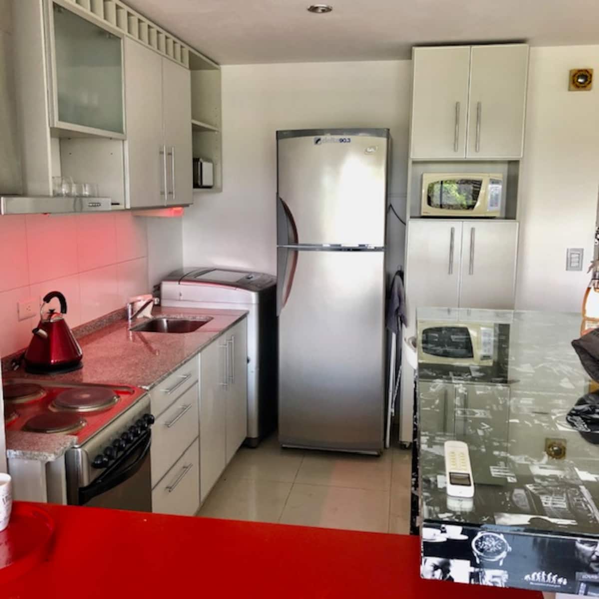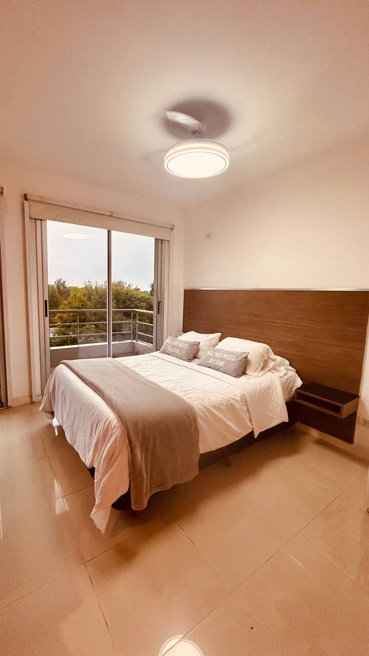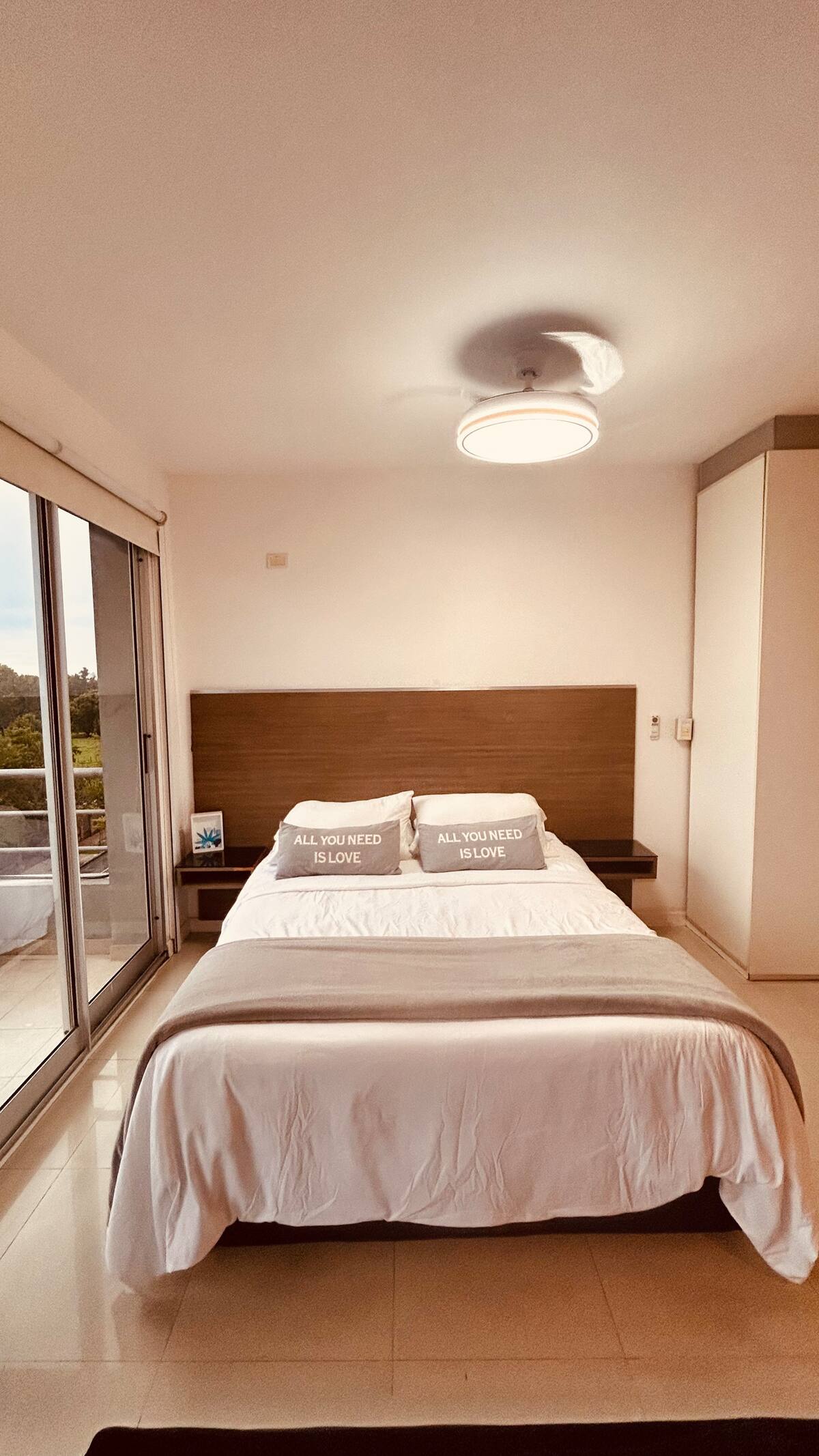 Квартира-студия (loft) в Villa del Parque, окна на улицу, с длинным балконом. Указана панорамная видимость. В описании сказано, что помещение новое. Приведены сведения об оснащении текстилем: простыни, полотенца и постельное бельё из 100% хлопка.
