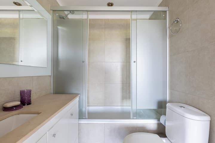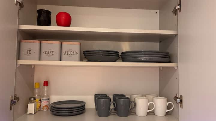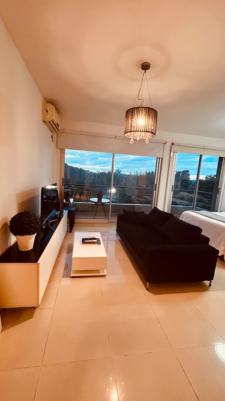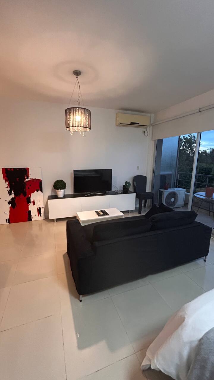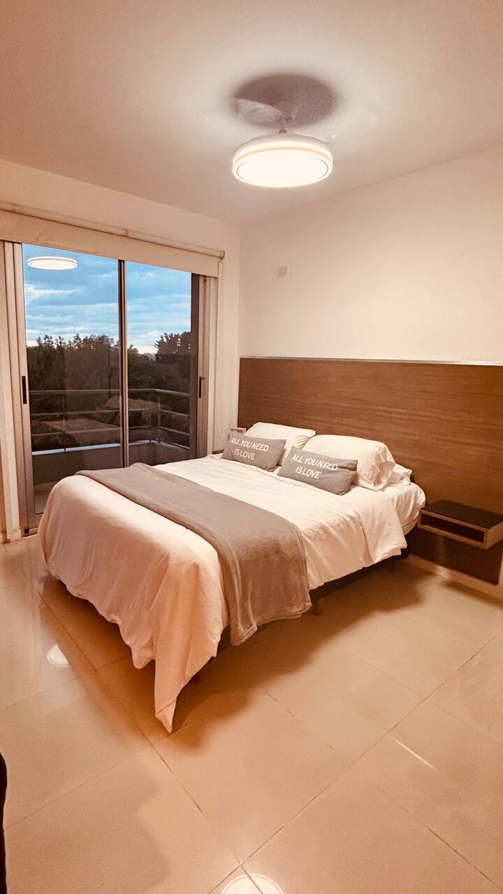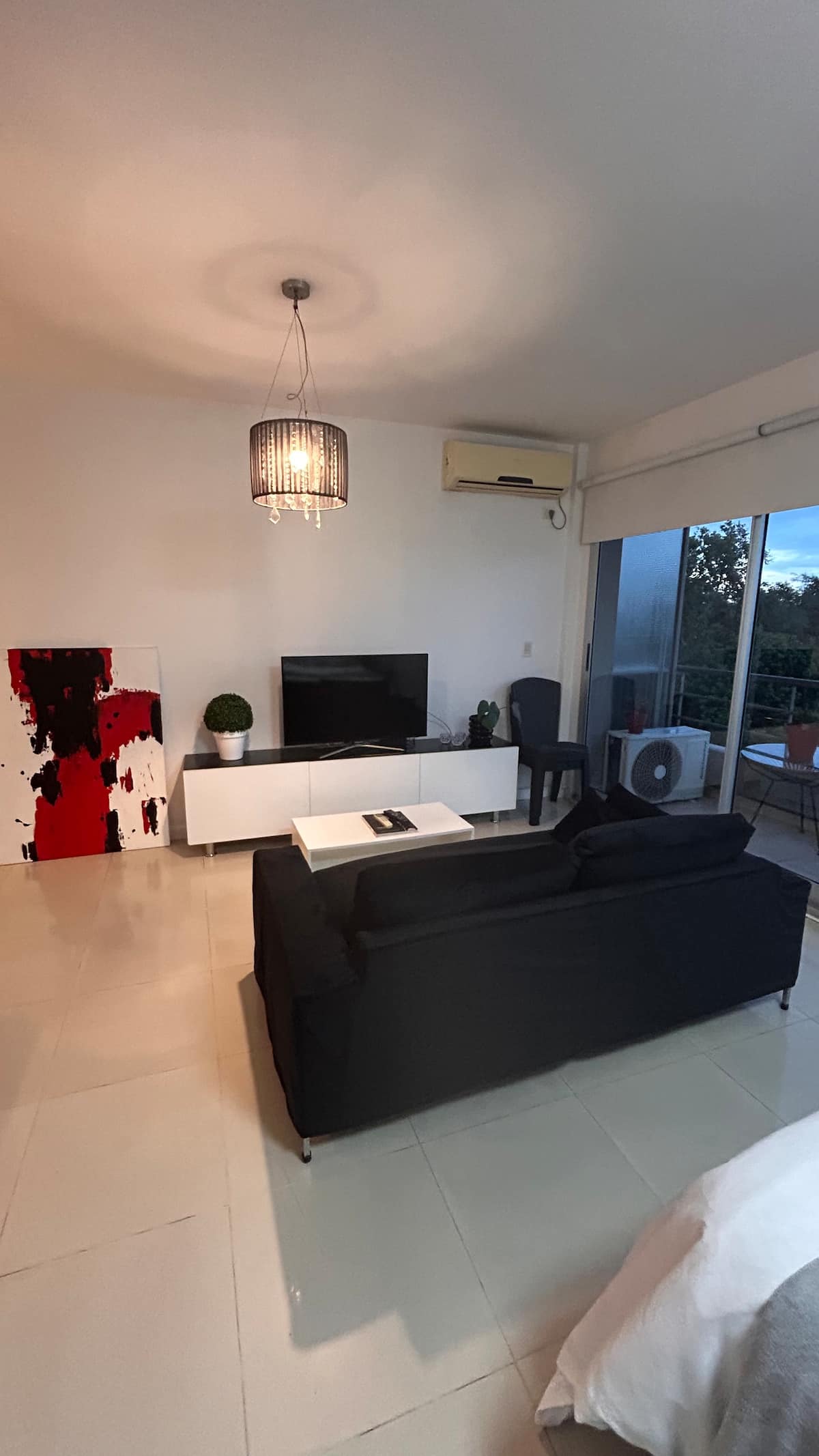 Квартира-студия (loft) в Villa del Parque, окна на улицу, с длинным балконом. Указана панорамная видимость. В описании сказано, что помещение новое. Приведены сведения об оснащении текстилем: простыни, полотенца и постельное бельё из 100% хлопка.