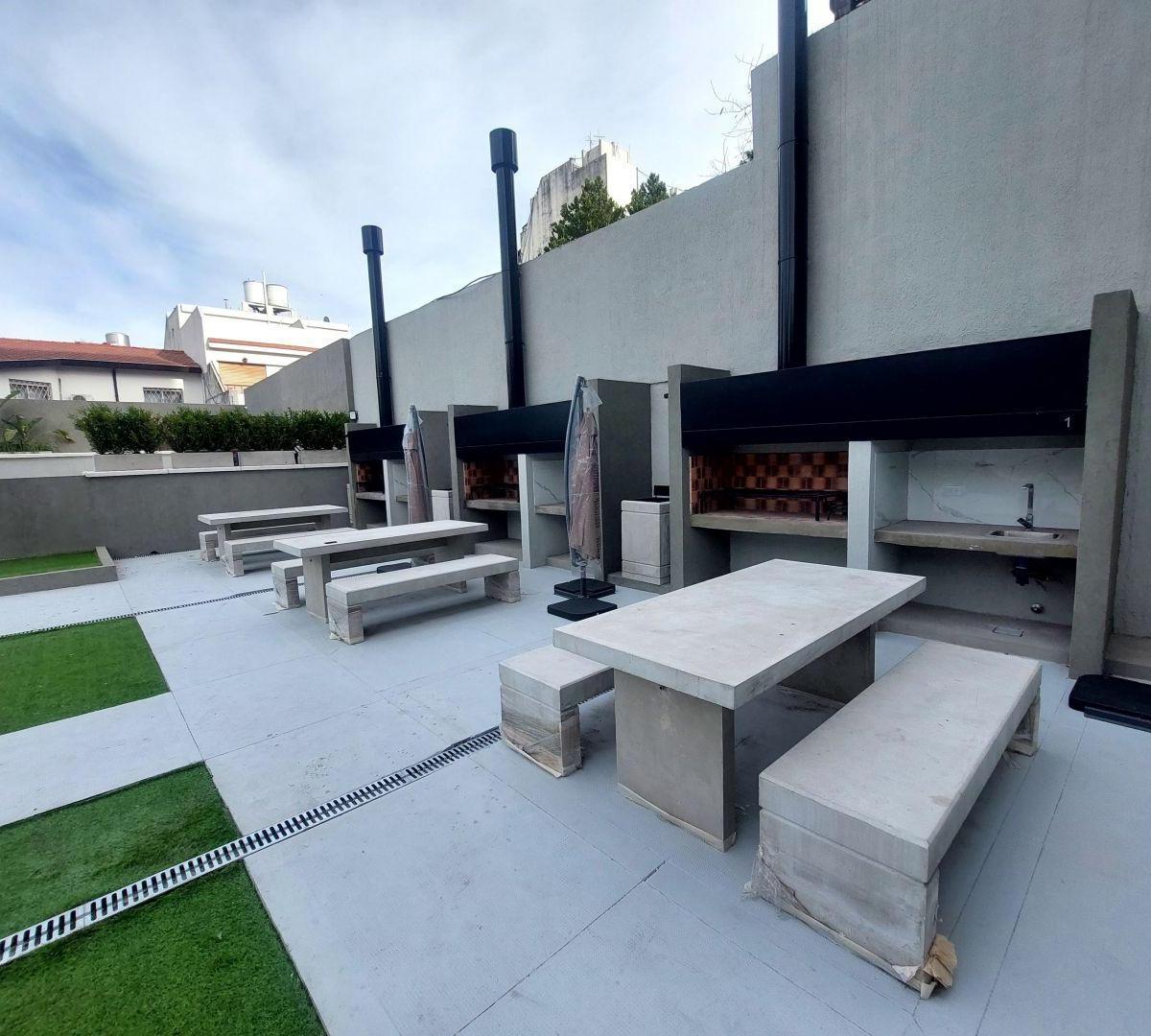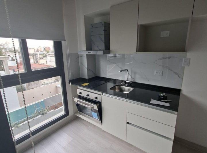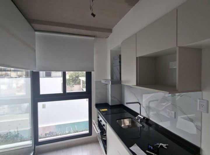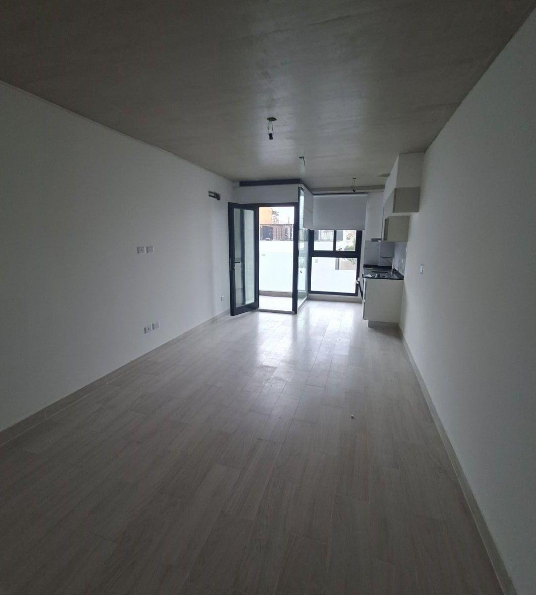 Квартира-студия в Villa del Parque, новая (a estrenar), с керамическими полами. Кухня полностью установлена полуинтегрированно в помещение: электрическая плита с духовкой, естественная вентиляция. Есть ванная комната с тумбой (vanitory) и душем, общий смеситель mono comando. Балкон с боковым видом. В здании предусмотрены общий солярий на первом этаже, бассейн, зона гриля, коворкинг, общая гостиная для жильцов (SUM), фитнес-зал (Gym fitness), прачечная (laundry), (закреплённое) парковочное место
