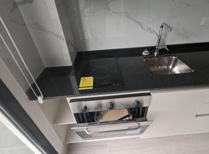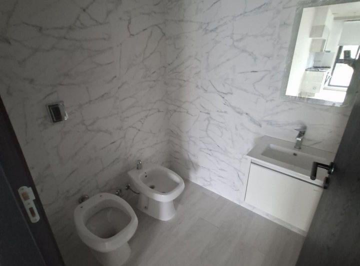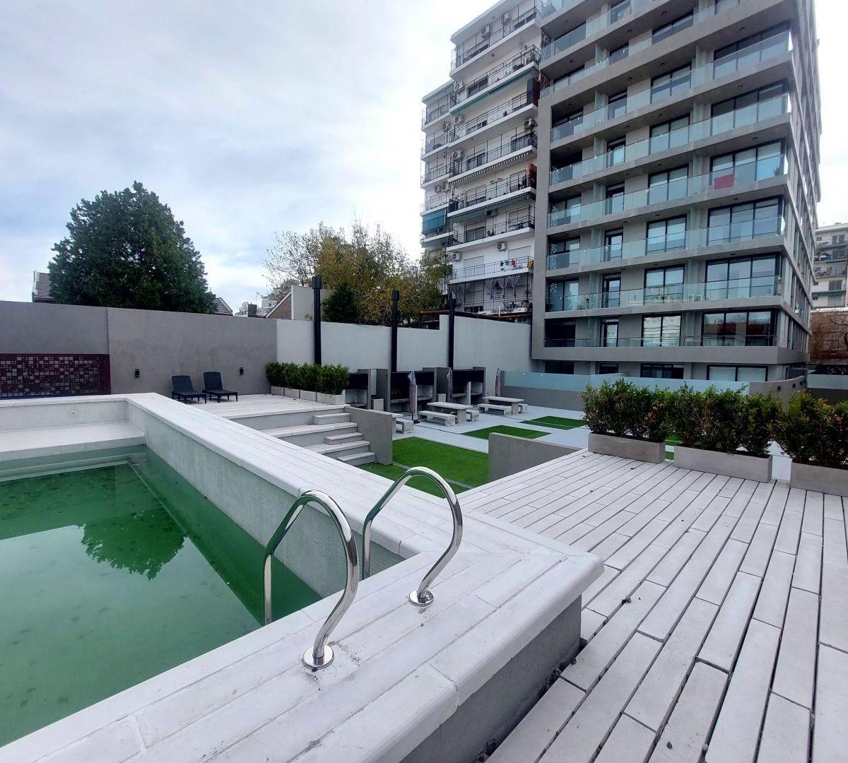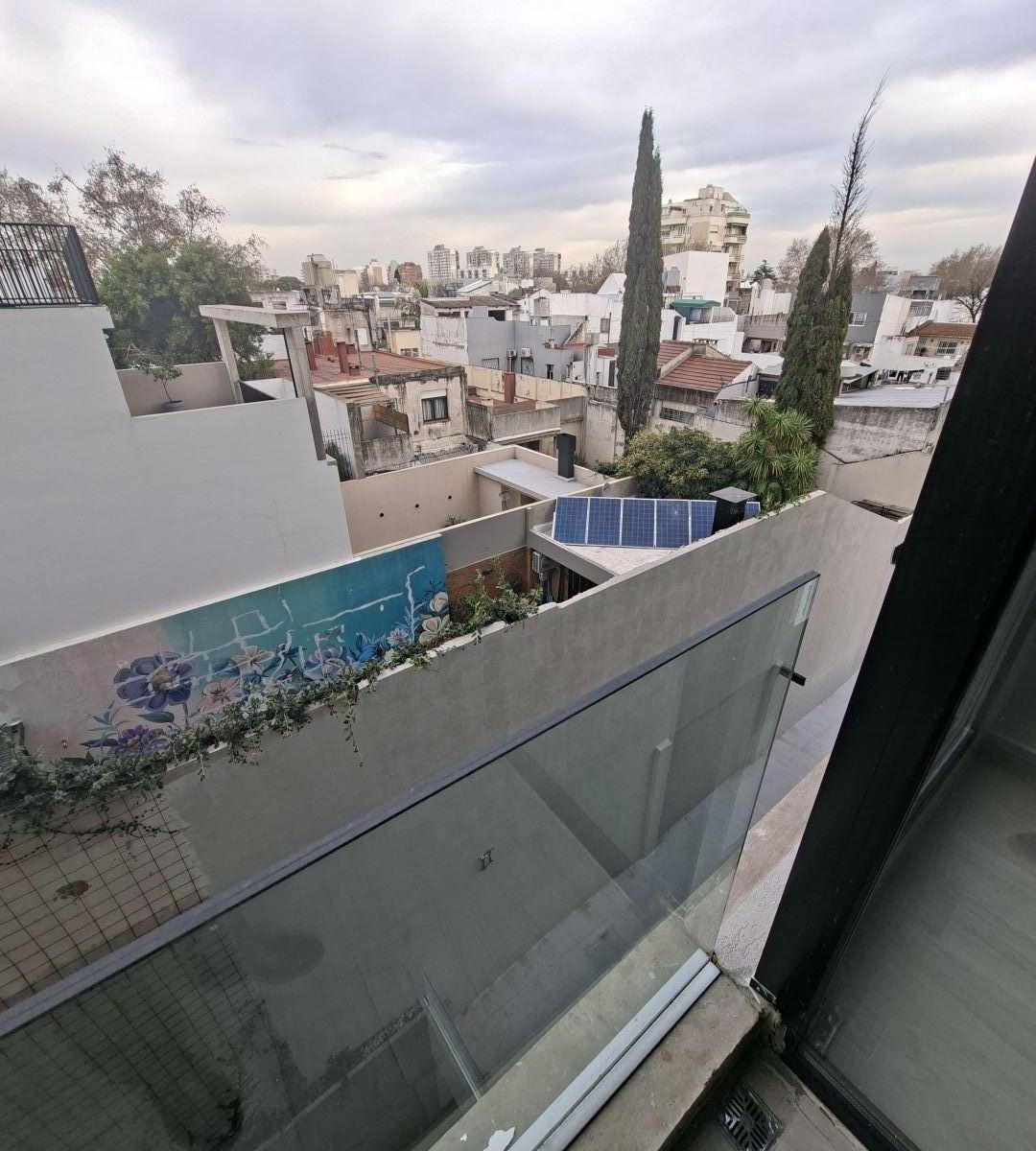 Квартира-студия в Villa del Parque, новая (a estrenar), с керамическими полами. Кухня полностью установлена полуинтегрированно в помещение: электрическая плита с духовкой, естественная вентиляция. Есть ванная комната с тумбой (vanitory) и душем, общий смеситель mono comando. Балкон с боковым видом. В здании предусмотрены общий солярий на первом этаже, бассейн, зона гриля, коворкинг, общая гостиная для жильцов (SUM), фитнес-зал (Gym fitness), прачечная (laundry), (закреплённое) парковочное место