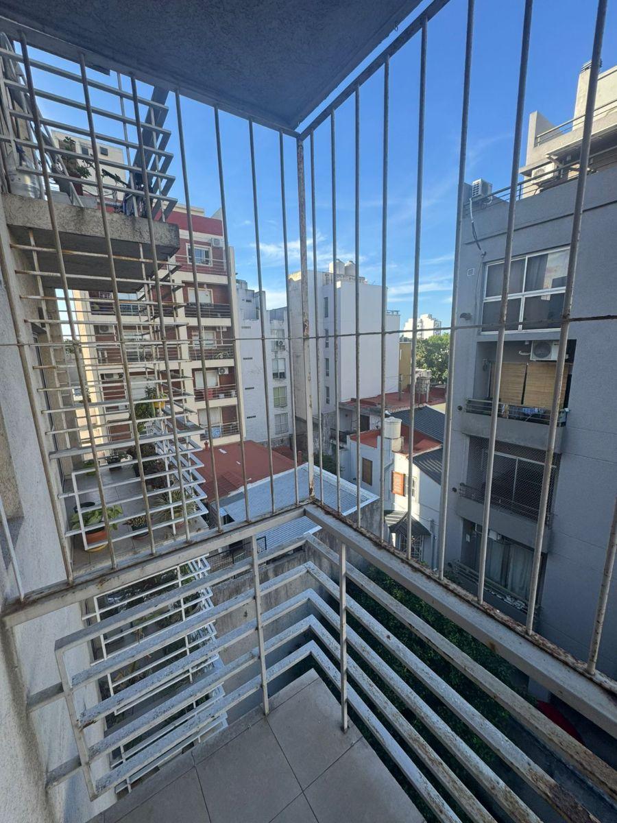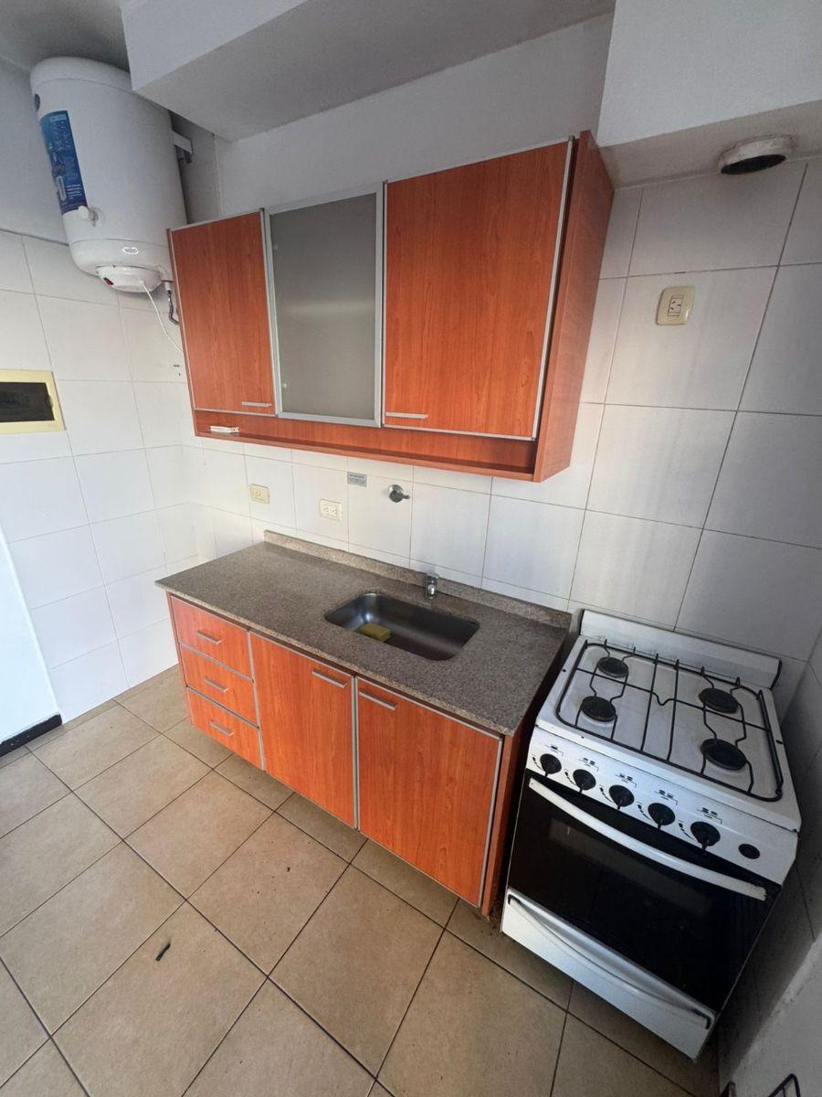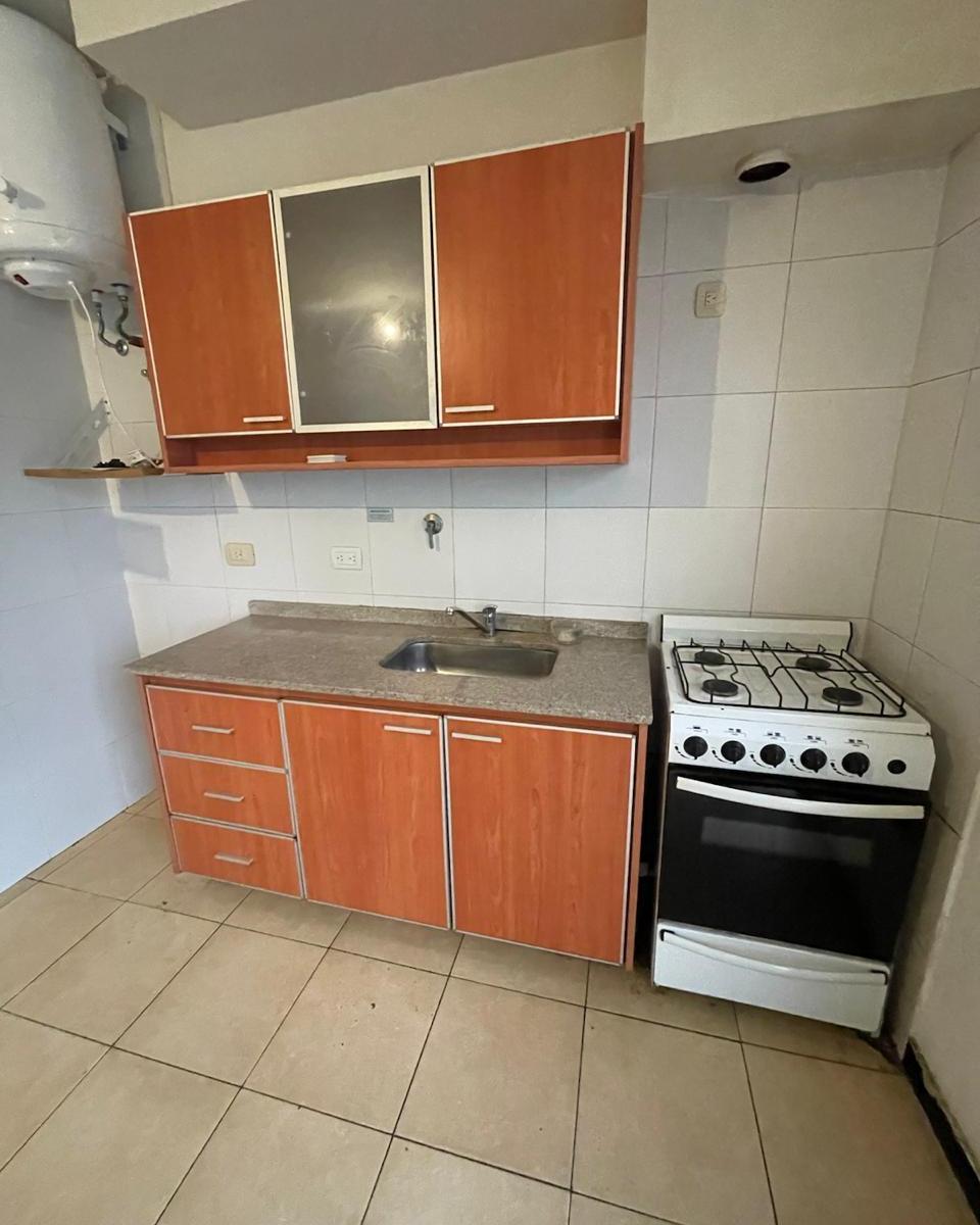 Квартира-студия площадью около 37 m² на 3-м этаже с лифтом, окна во двор. Помещение разделено перегородкой, есть встроенный шкаф (placar). Установлены кондиционер (холод/тепло) и электрический бойлер (termotanque), есть ванная комната целиком и подключение для стиральной машины (lavarropas). Коммунальные платежи здания (expensas) указаны как около $90.000. Требуется аренда на 2 года с квартальной индексацией по IPC; условия аренды: залог (депозит) и первый месяц аренды, гарант с имуществом в CAB