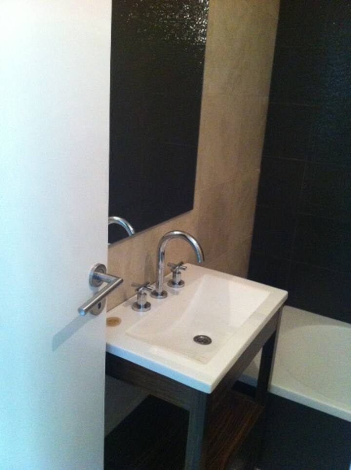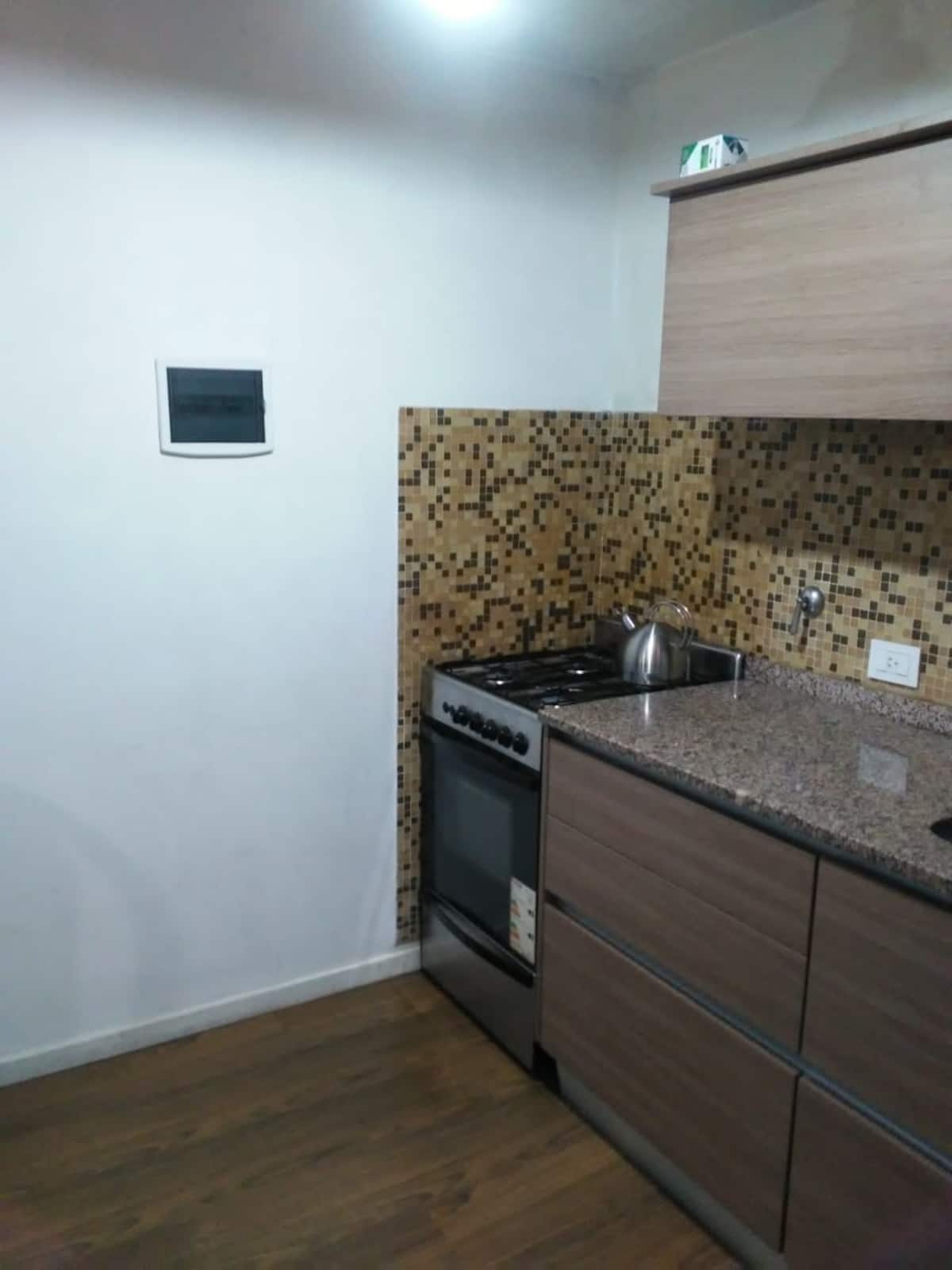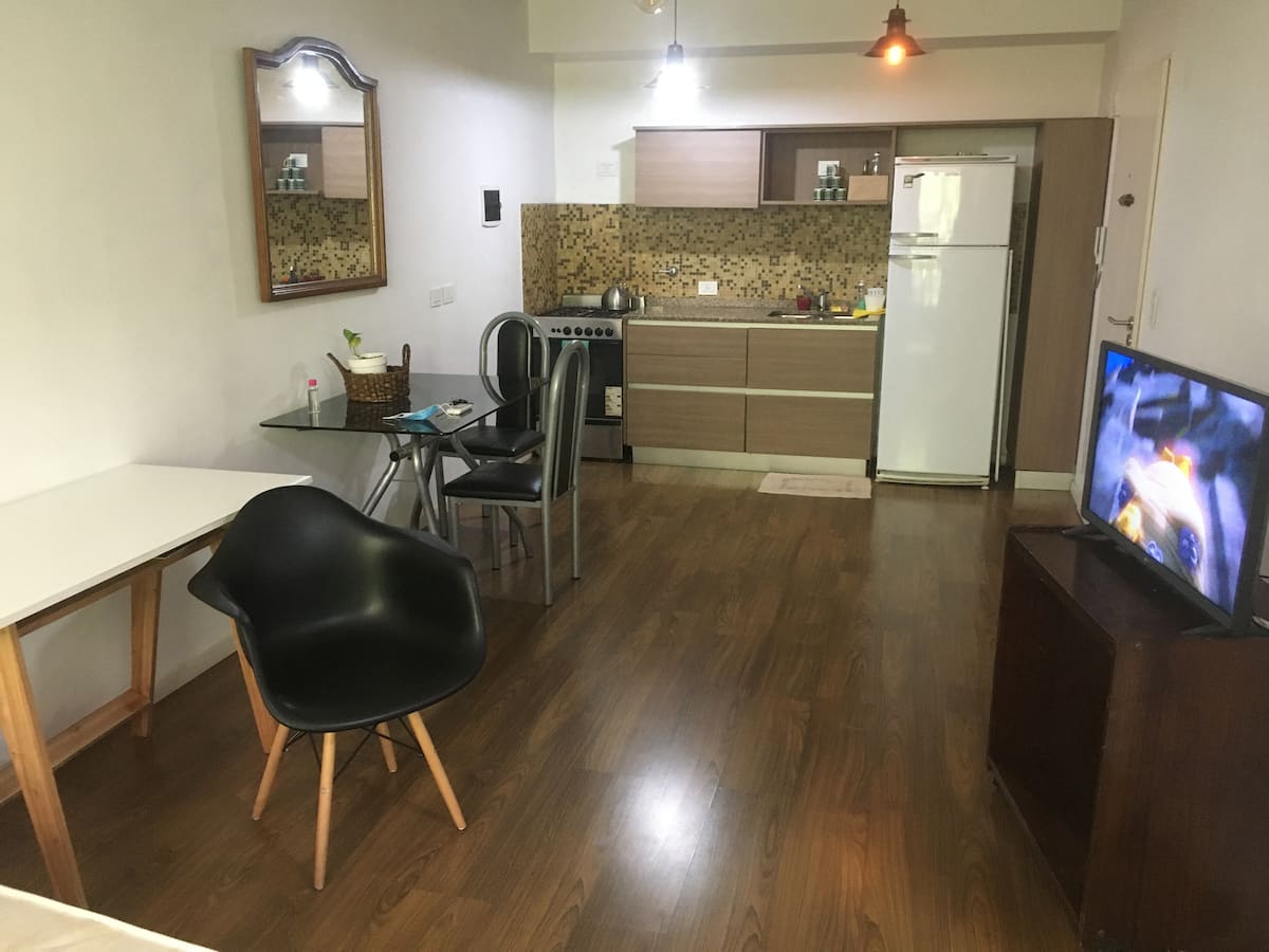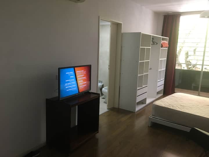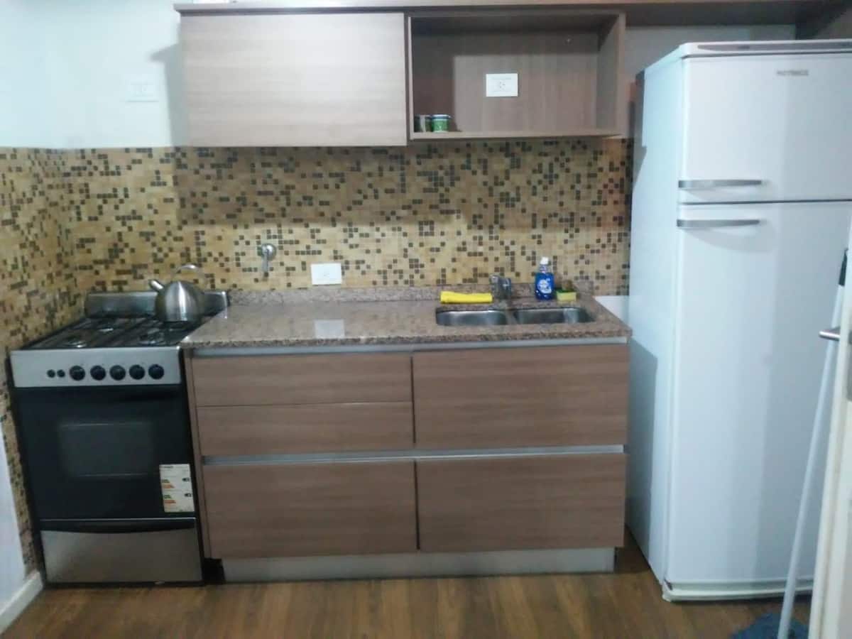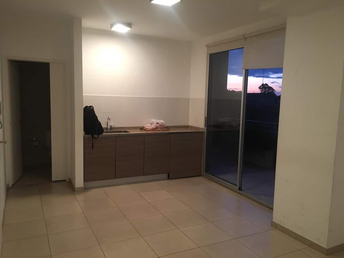 Квартира-студия площадью около 30 m² в новом доме в Villa Devoto. В здании есть SUM на верхнем этаже с террасой, зона гриля оборудована; также есть общая прачечная машина. В студии предусмотрены полноценная кухня с газовой плитой и духовкой, морозильный отсек и шкафы, ванная комната с ванной и централизованное горячее водоснабжение. Апартаменты с возможностью аренды полузакрытого (полуоткрытого) (закреплённого) парковочного места при наличии. Использование зоны гриля в SUM за отдельную плату 5 U