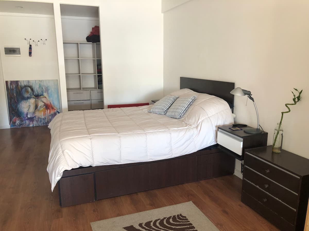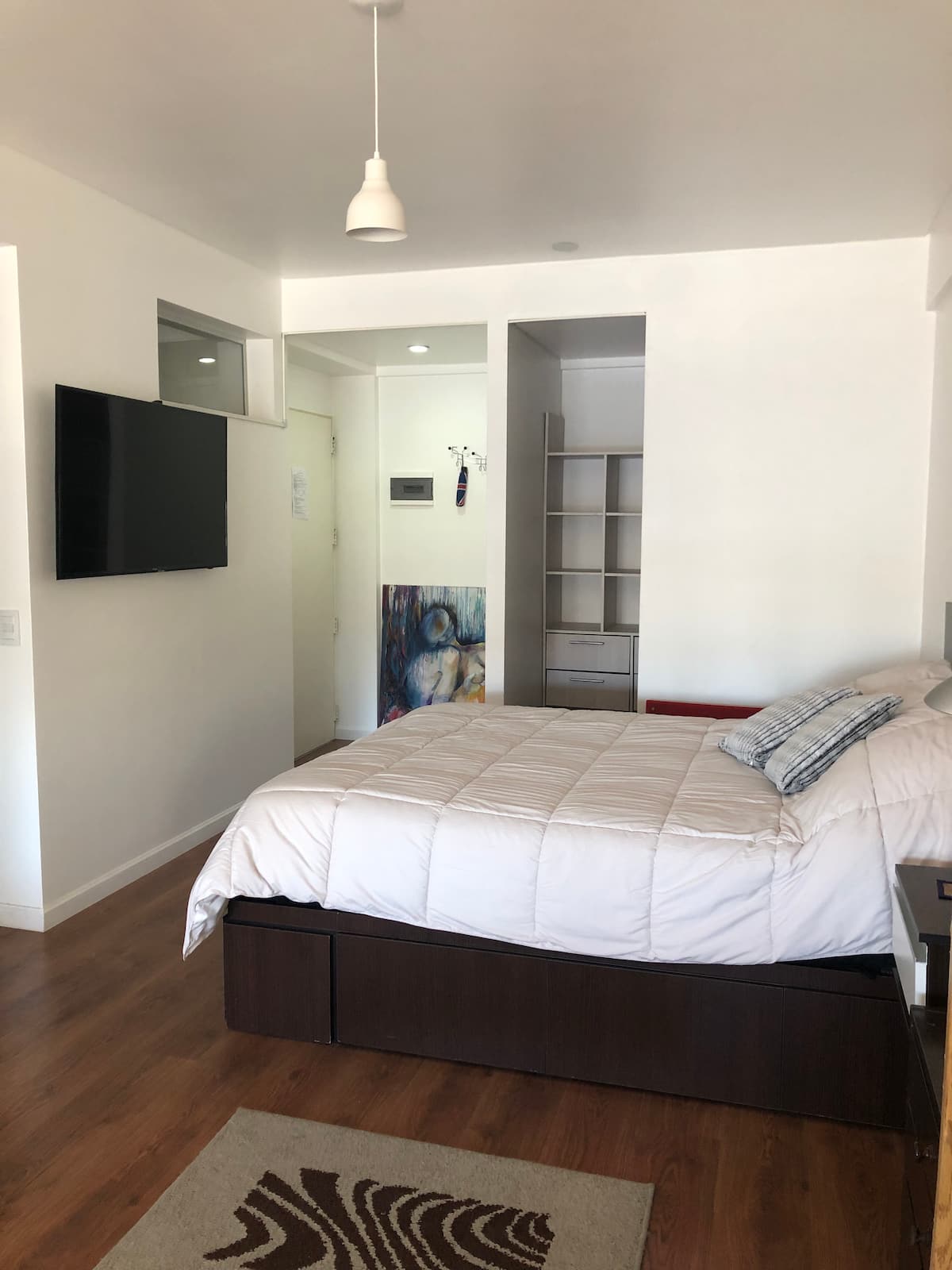 Квартира-студия в Buenos Aires с видом на улицу. Для размещения 2 человек, есть телевизор с кабельным ТВ и Wi-Fi. Балкон с видом на фронтовую улицу. Имеется кровать размера queen 1,60 x 2,00 m.