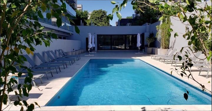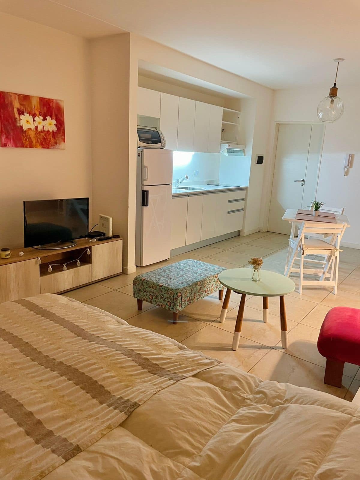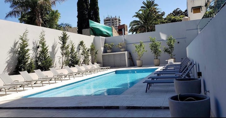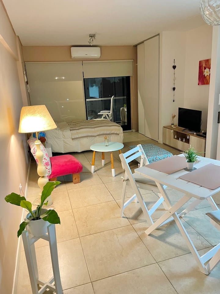 Квартира-студия в Villa Devoto, в нескольких кварталах от Plaza Arenales. В здании предусмотрена охрана 24 часа. Пользование бассейном и тренажёрным залом предназначено для жильцов; бассейн работает только в летний сезон (декабрь–март). Заселение после 22:00 требует доплаты, ключи после этого времени не выдаются бесплатно.