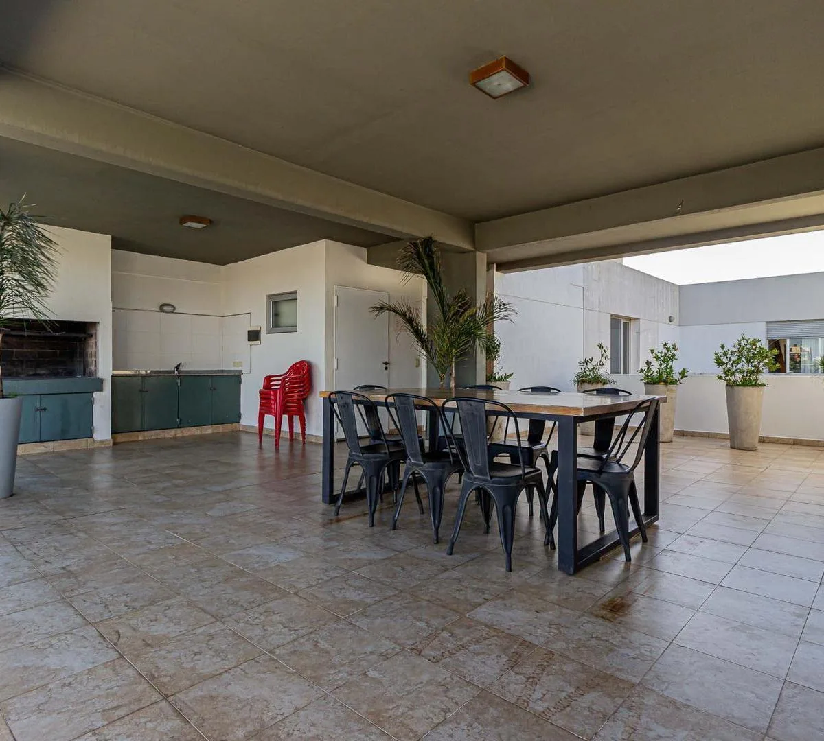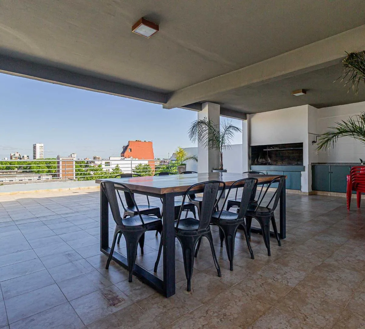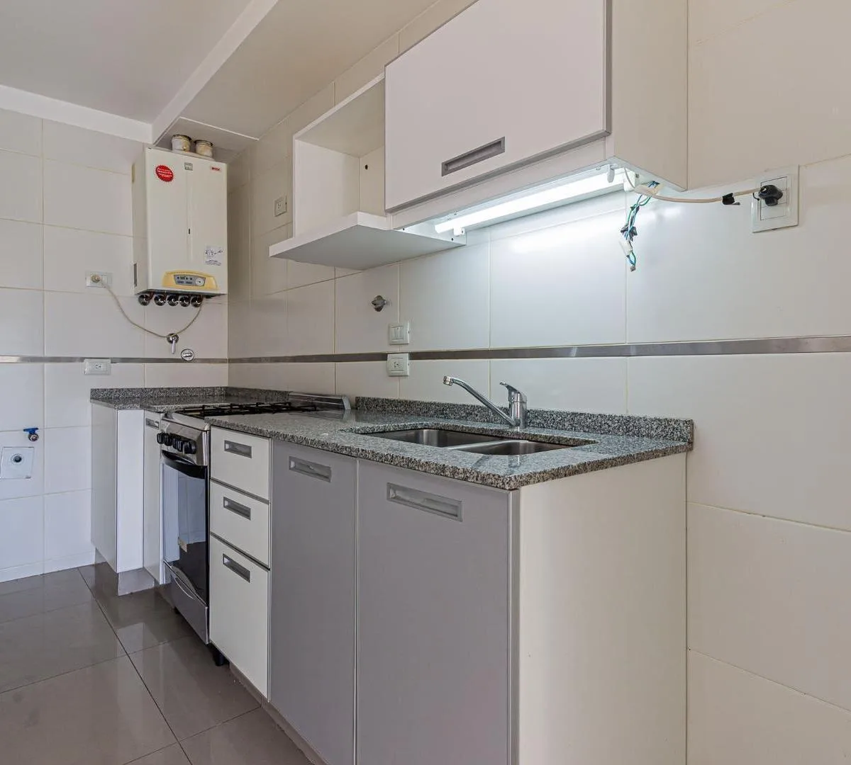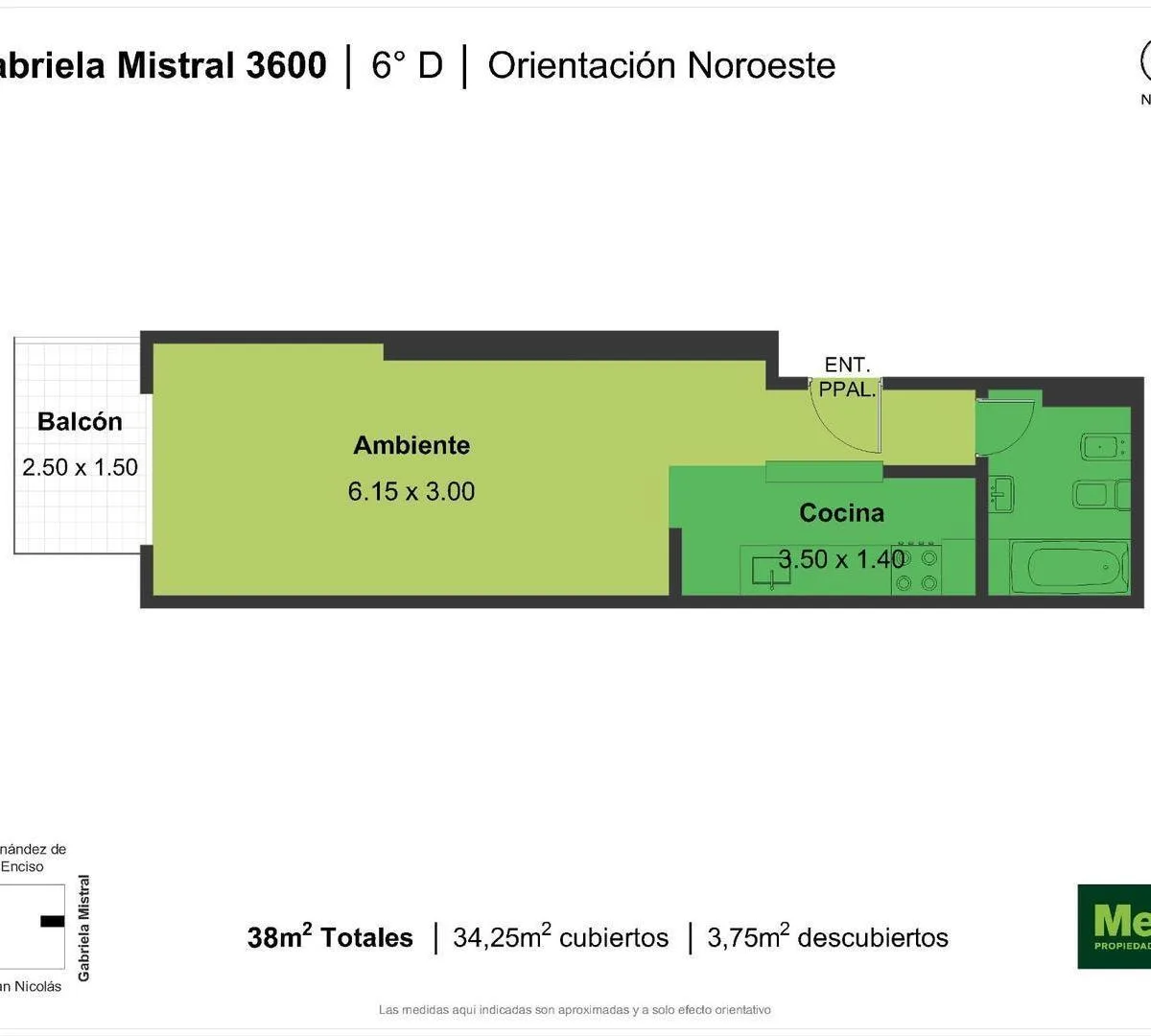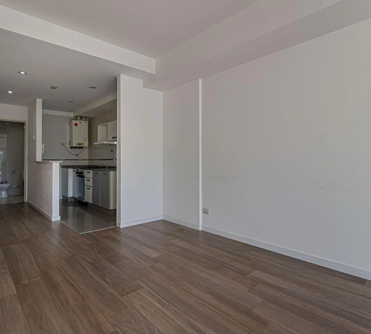 Квартира-студия площадью не указана в здании небольшой этажности от Desarrolladora Porchetto, 6-й этаж. Окна на северо-восток, дневное солнце большую часть дня. Пространство «гостиная-студия-спальня» с выходом на балкон с открытым видом, напольное покрытие под дерево (керамогранит). Кухня с барной стойкой, предусмотрено подключение для стиральной машины, есть газовая плита (anafe), духовка и двухконтурный котёл для горячей воды и индивидуального радиаторного/теплого пола (losa radiante). Установ