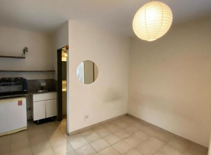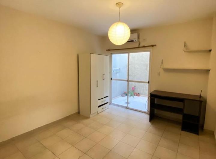 Квартира-студия с кухонным блоком: мойка и нижние шкафы, установлен кондиционер (холод/тепло). Площадь и размеры не указаны, все значения даны как приблизительные. Есть дворик, квартира без мебели. Здание с входом через общий коридор; рядом с остановкой MetroBus у Facultad de Agronomía. Срок аренды 2 года, пересмотр каждые 4 месяца по индексу IPCBA. В стоимость включены коммунальные платежи здания и налоги. Требуются залог-страховка аренды или гарантия собственностью, подтверждение доходов, аван