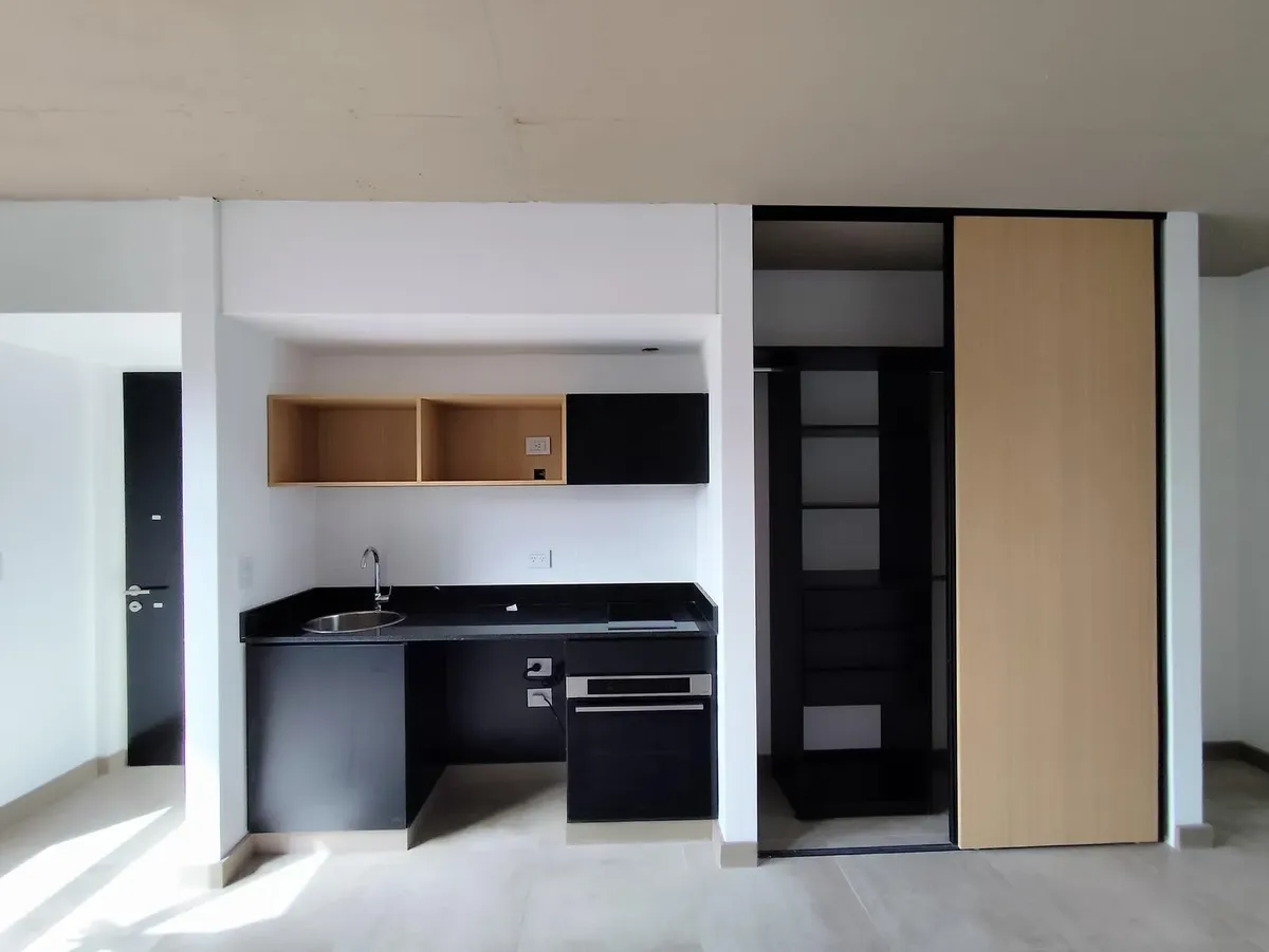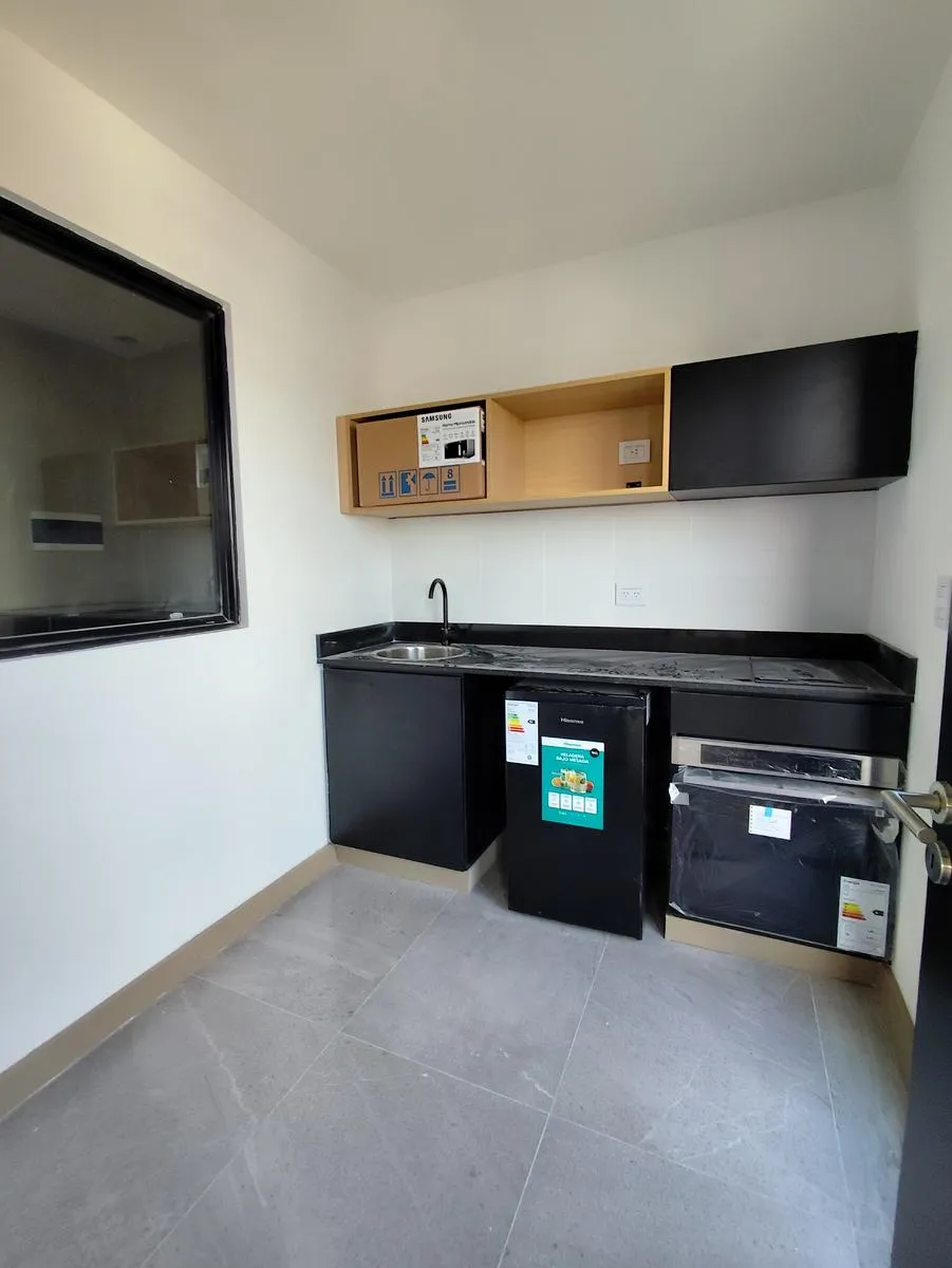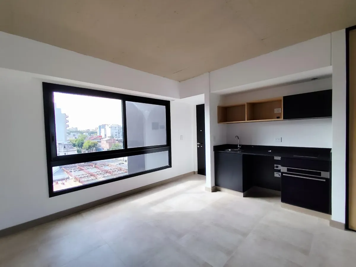 Новая квартира-студия в Villa Ortuzar, площадь не указана. Окна на улицу, установлен инверторный кондиционер Samsung; напольное покрытие — керамогранит, встроенный шкаф. Кухня с варочной поверхностью из 2 конфорок и электрической духовкой Samsung, предусмотрено место для холодильника с морозильной камерой и/или под тумбу; балкон с открытым видом. Ванная комната с душем, предусмотрена установка стеклянной перегородки, есть естественная вентиляция и центральное горячее водоснабжение. Дом с лифтами